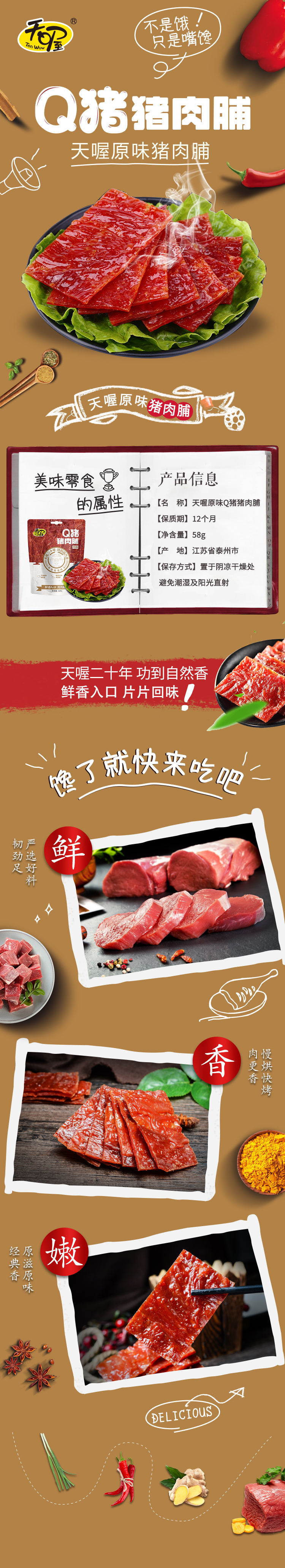 天喔Q猪原味猪肉脯58g【by仅工作日安排发货】