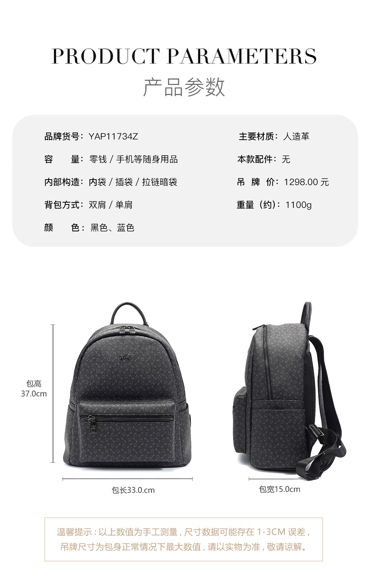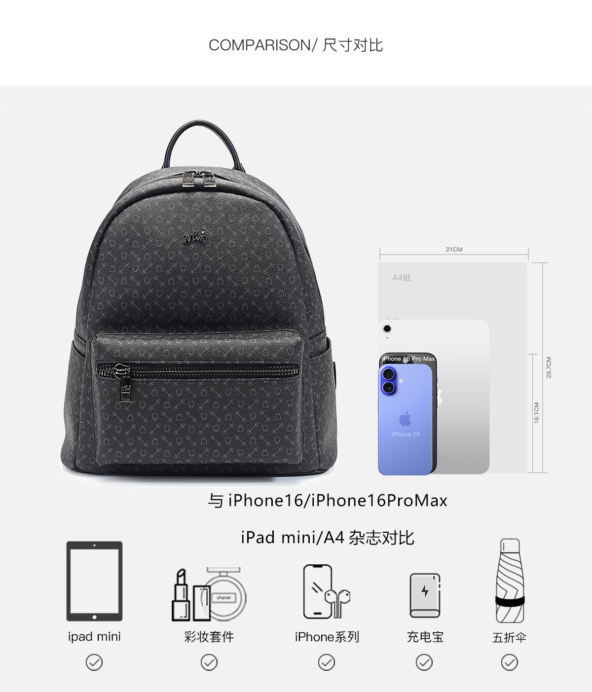 《WHY》简约双肩包布包布背包女士背包舒适背包尼龙布包YAB9031Z