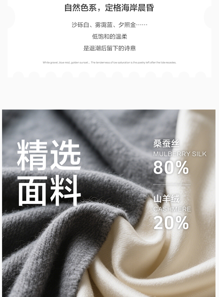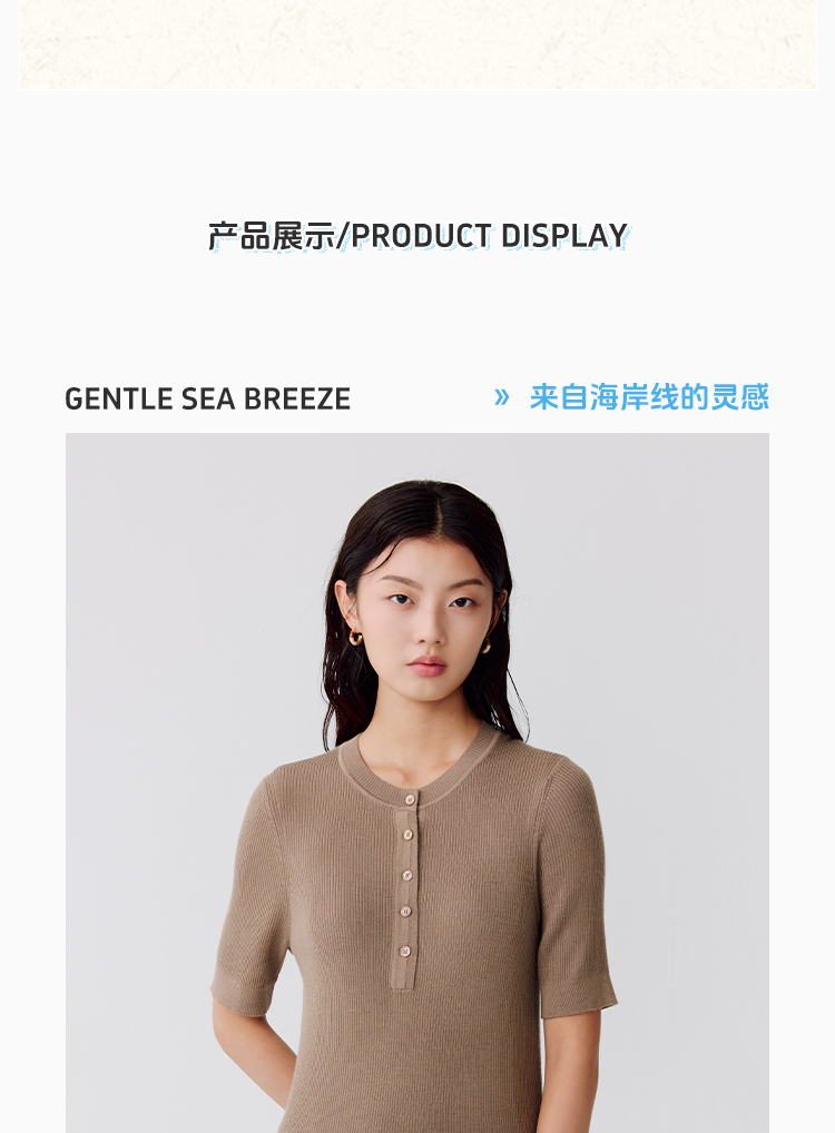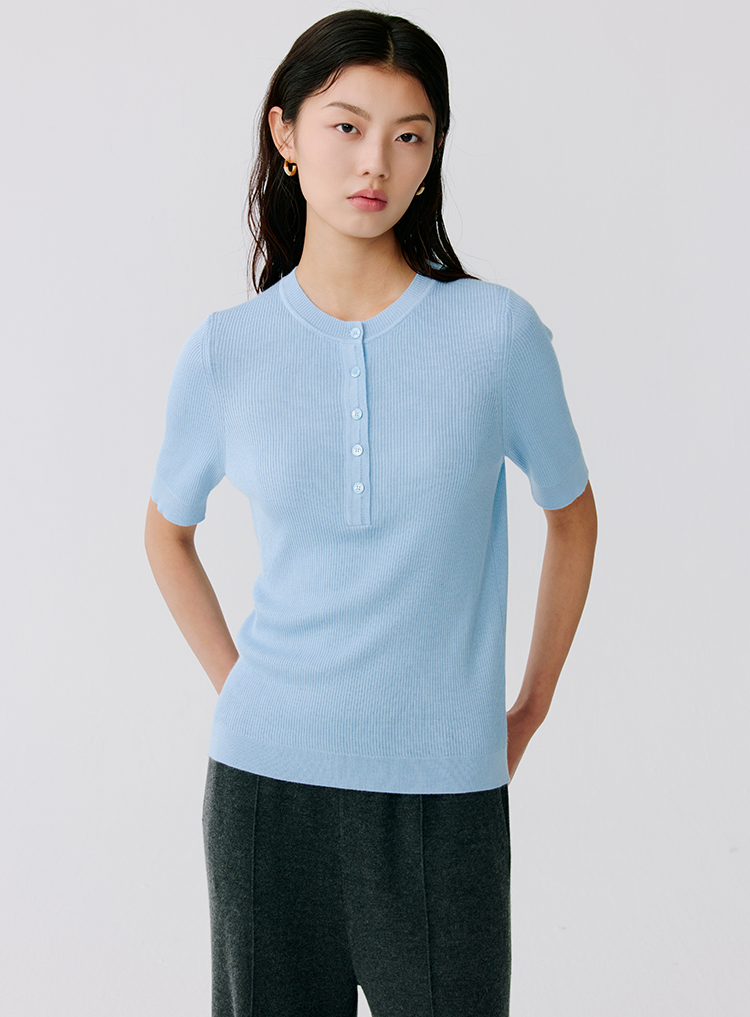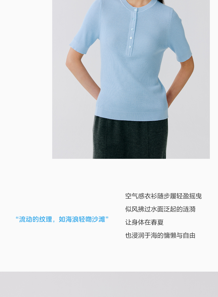 东黎 • 温柔的海风 精英亨利衫 桑蚕丝山羊绒女士圆领短袖 5209
