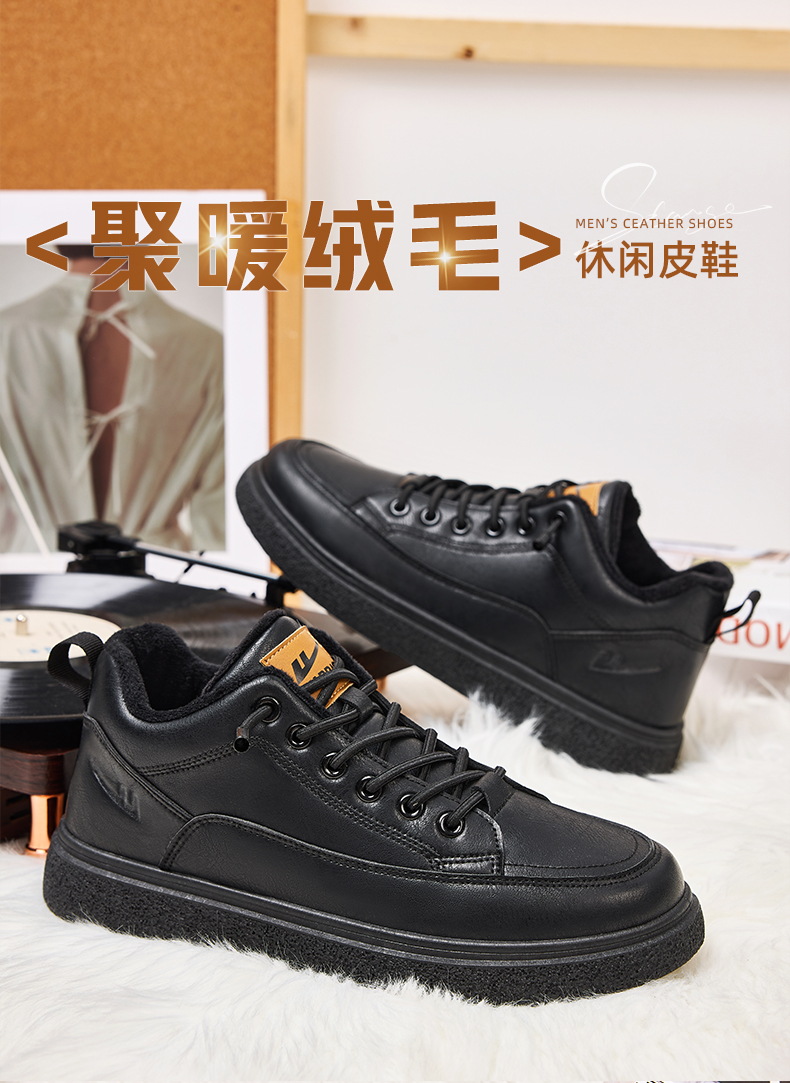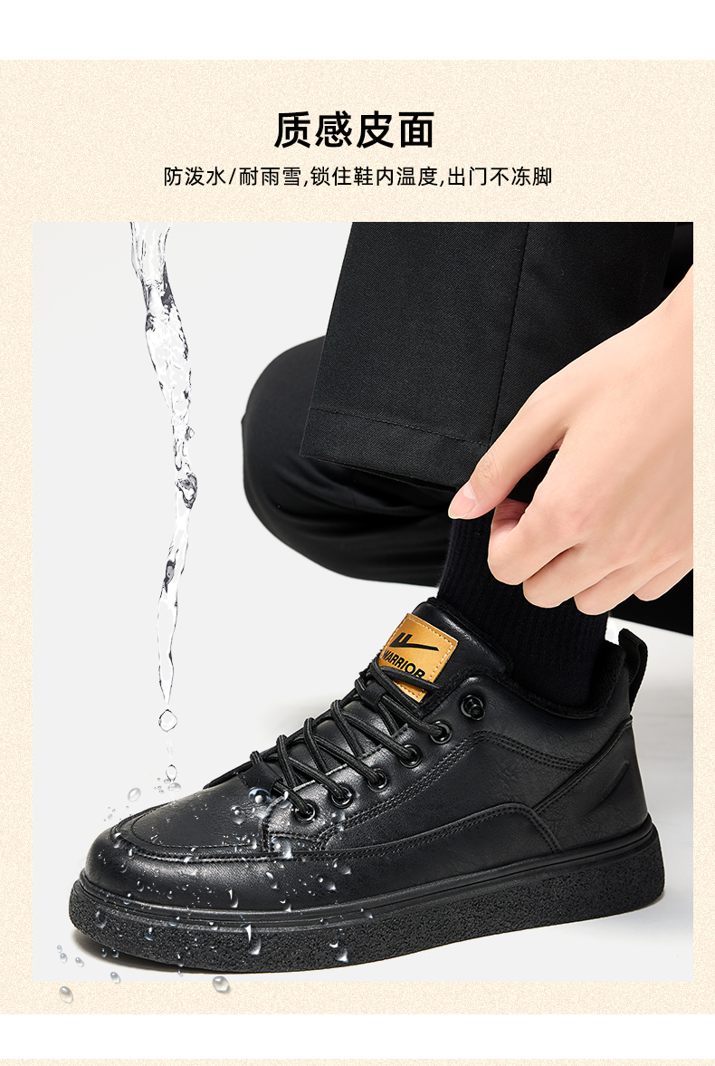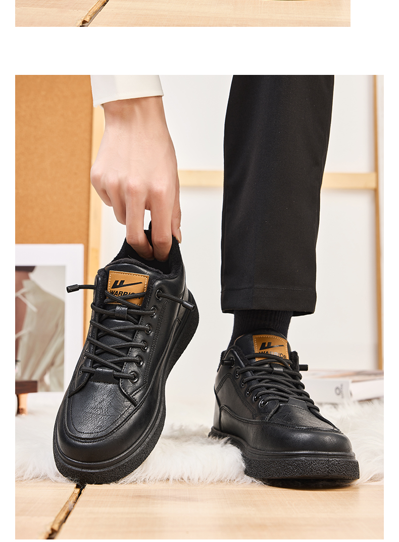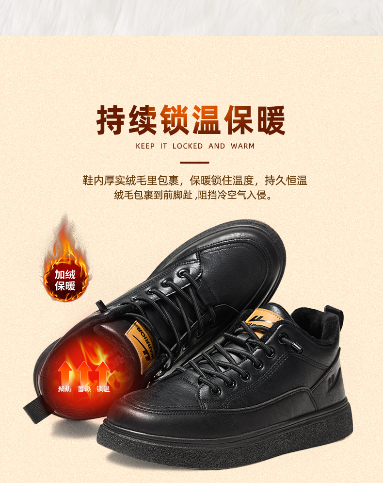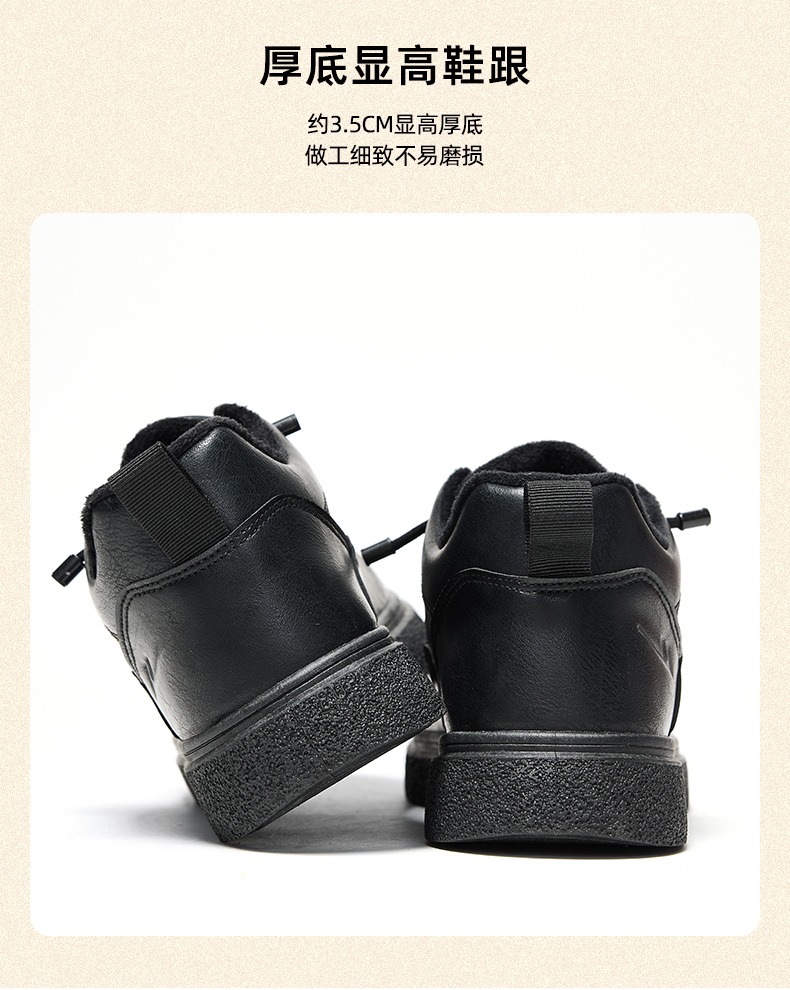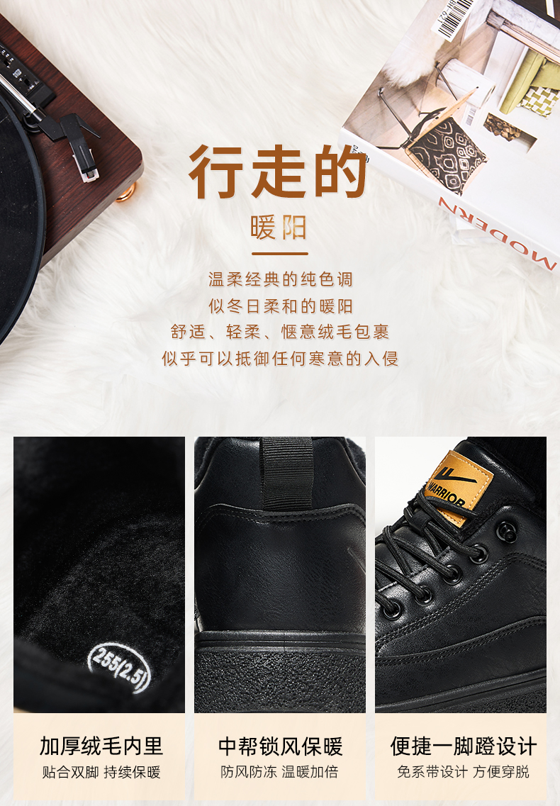 回力男鞋皮鞋冬季新款保暖加厚中帮黑色商务休闲鞋子男士雪地棉鞋