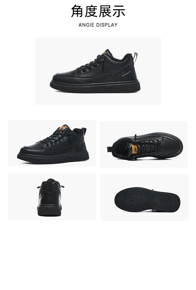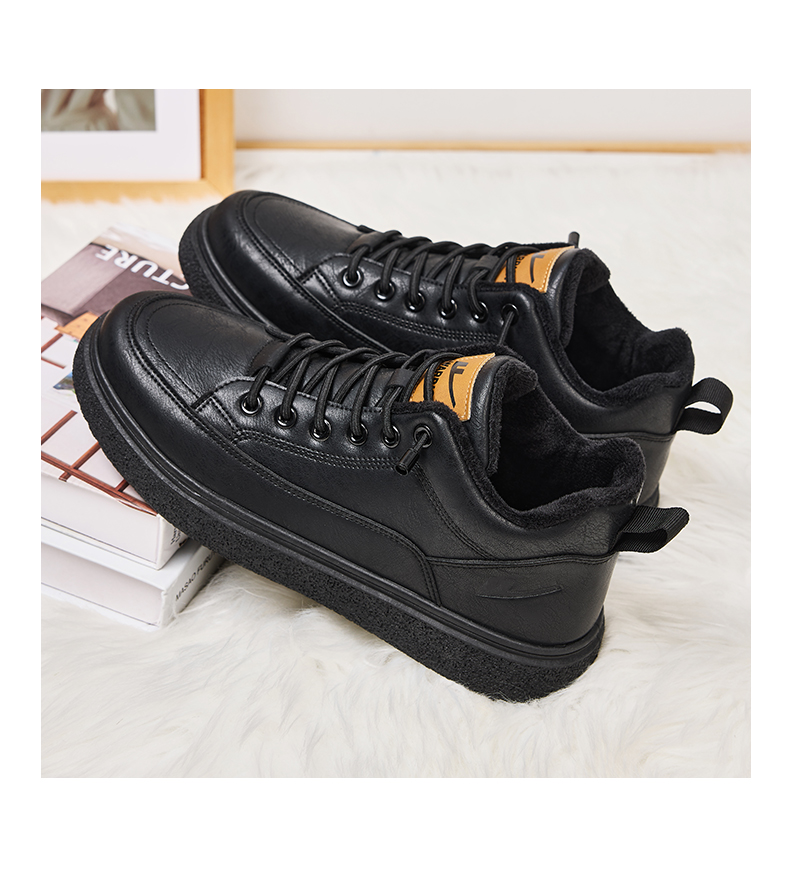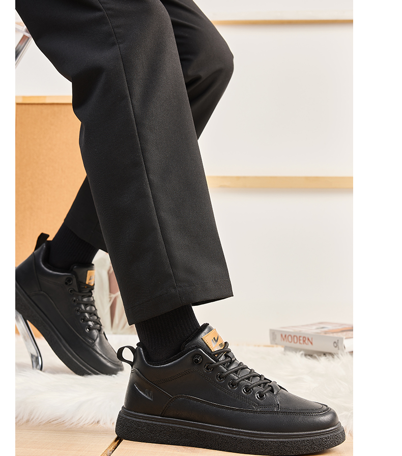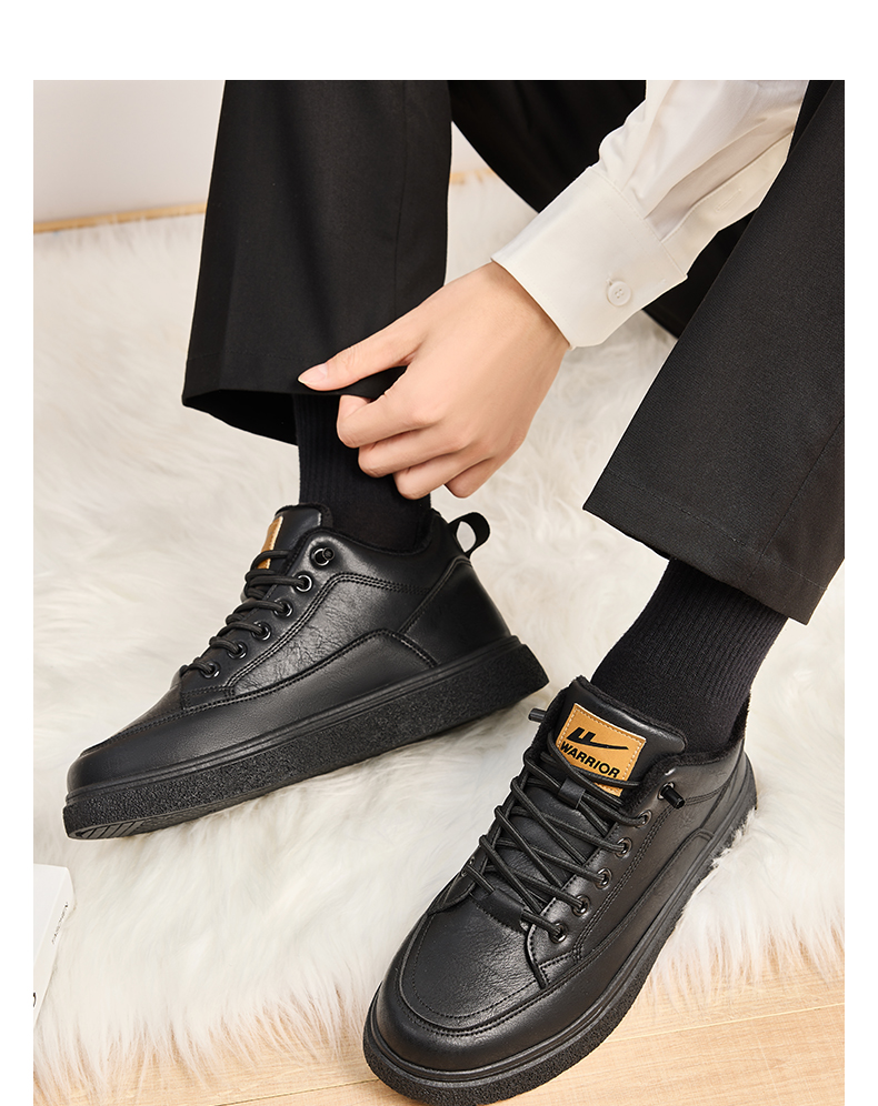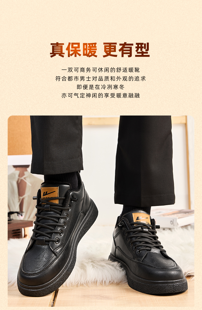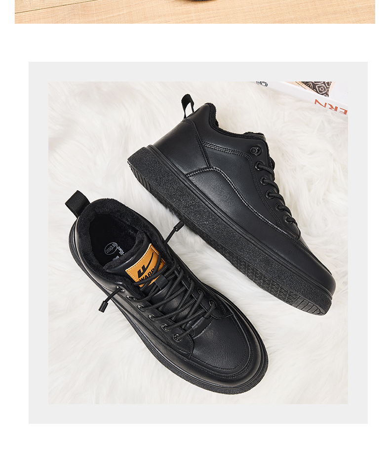 回力男鞋皮鞋冬季新款保暖加厚中帮黑色商务休闲鞋子男士雪地棉鞋