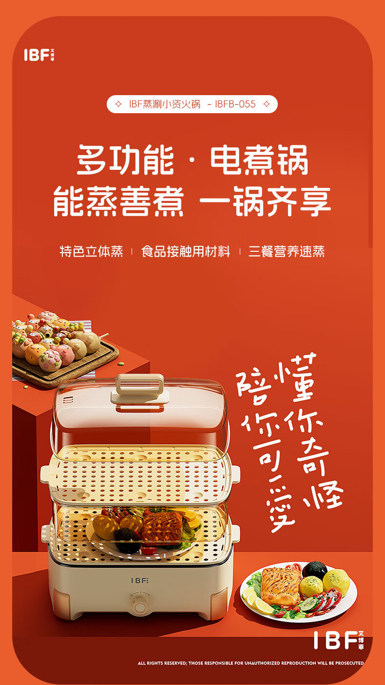 IBF艾博菲艾博菲艾博菲蒸涮小资蒸煮两用锅_乳白色_15L【K】