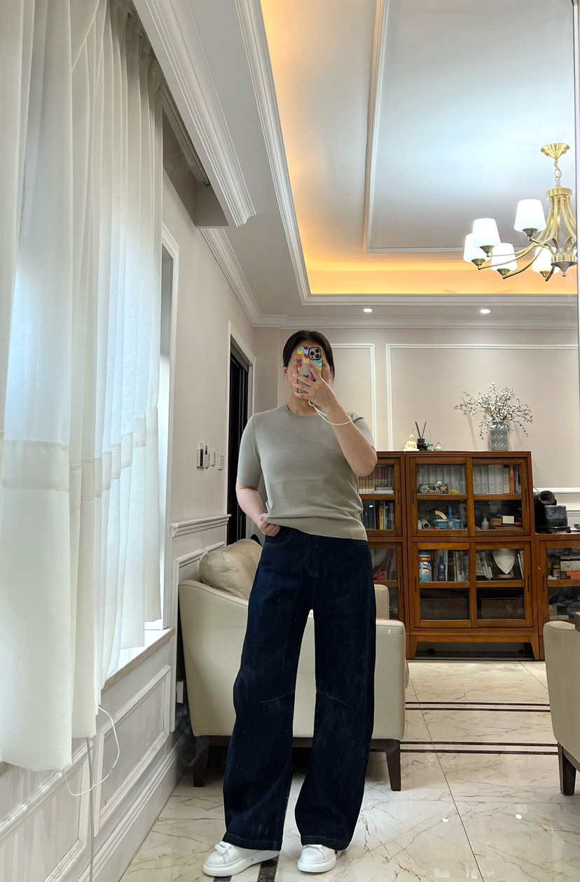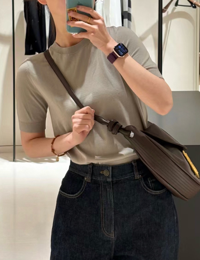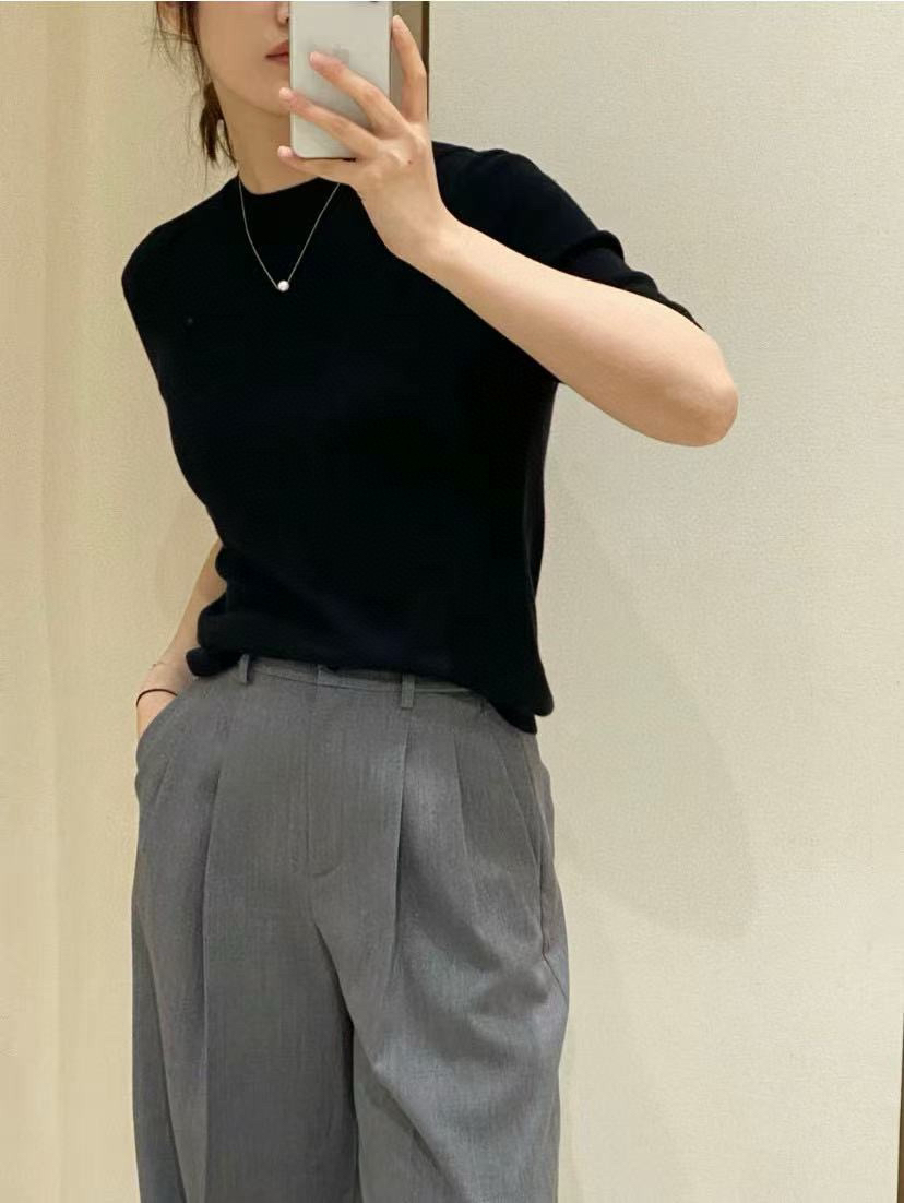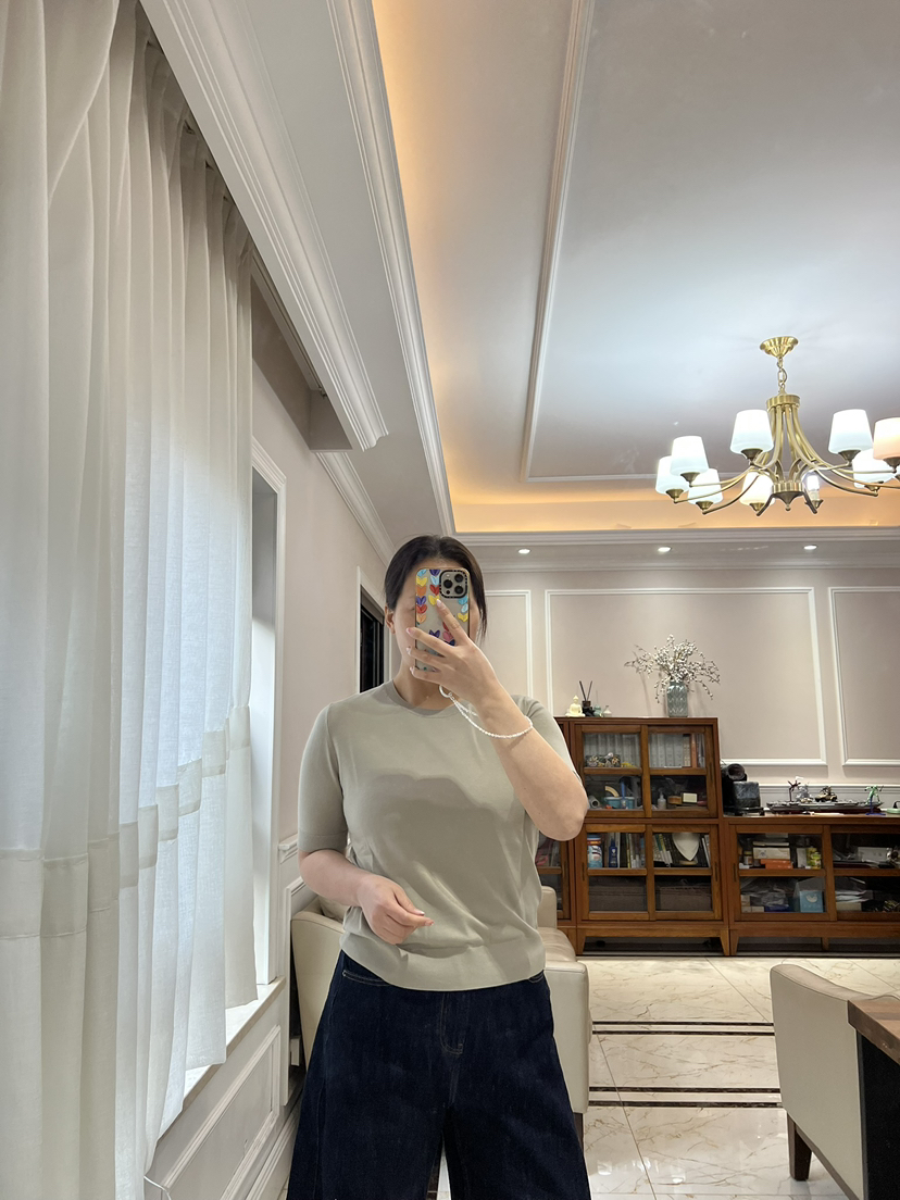 小禾这款基础圆领中袖,用的就是进口超细羊毛原纱,可以说是最正宗的小禾圆领针织短袖,从纱线到机器都是原厂,一公斤900多块的钻石羊毛说的就是这件‼️