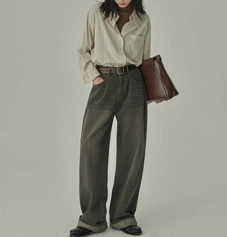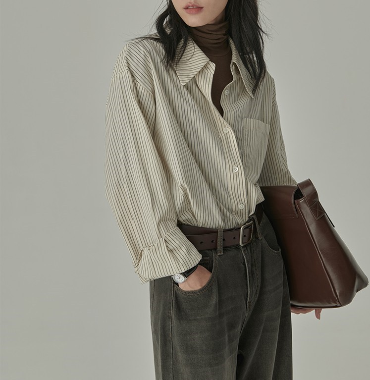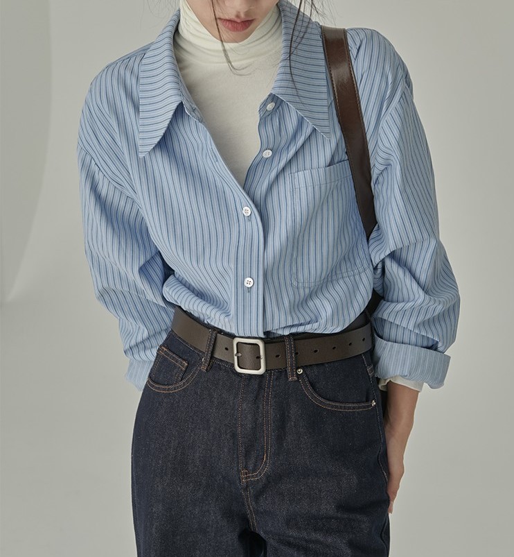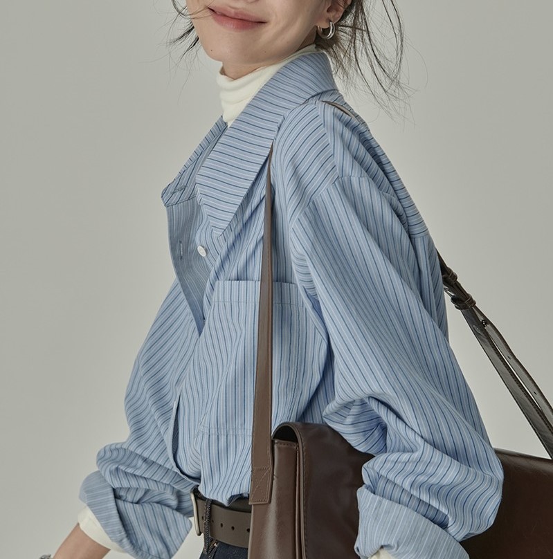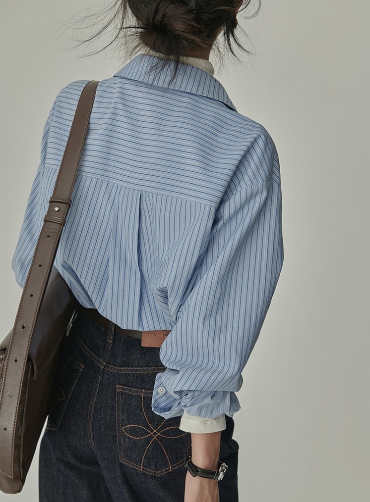 HVAERICE本期B入颜值衬衫 秋季新款蓝色条纹宽松垂感衬衣上衣