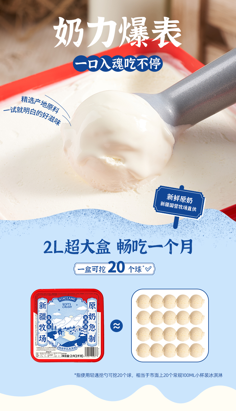 【代发】【单拍蛋筒不发货】轻遇2000ml牛乳冰淇淋新疆特浓牛乳/挖勺/港式华夫香酥原味蛋筒