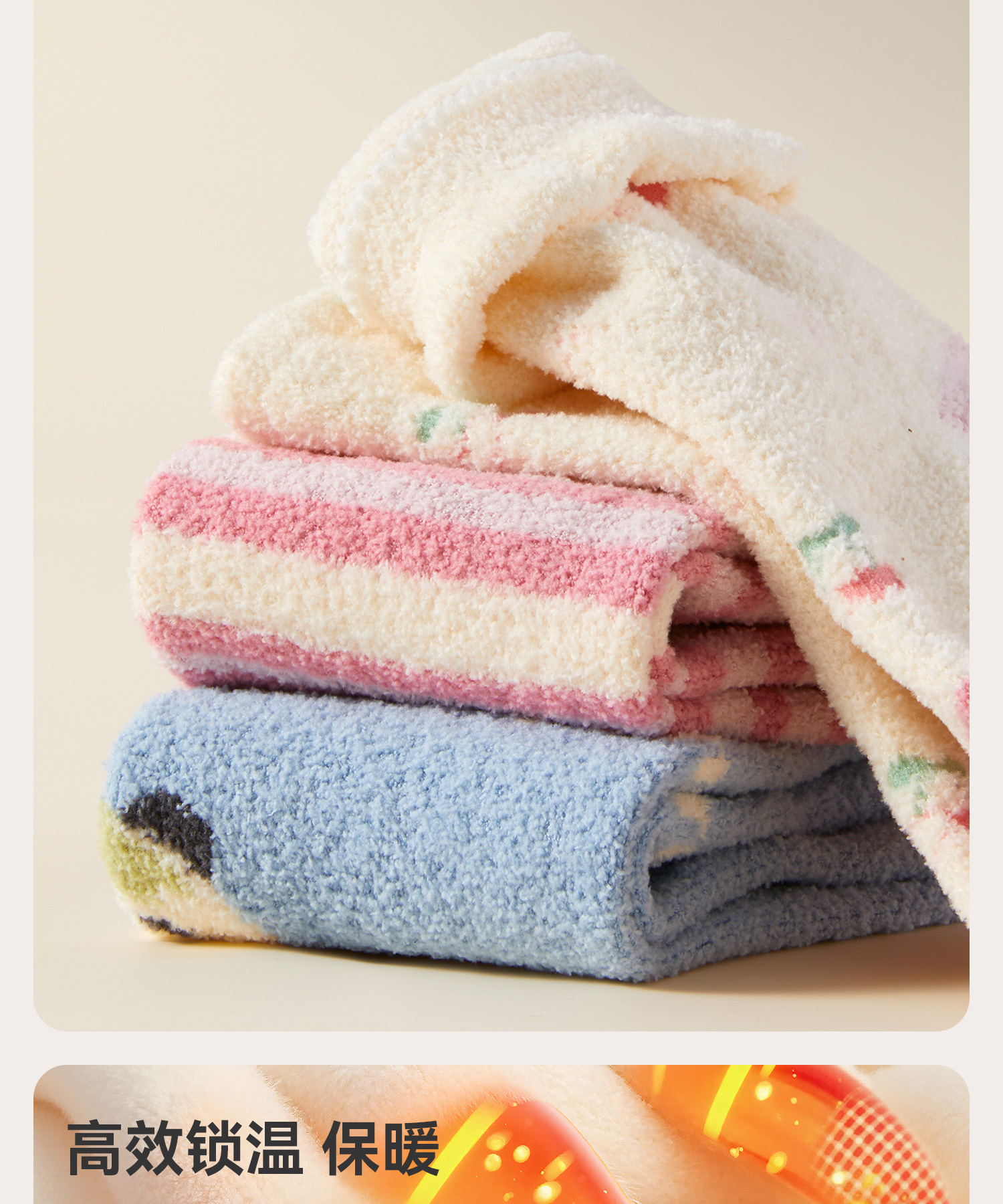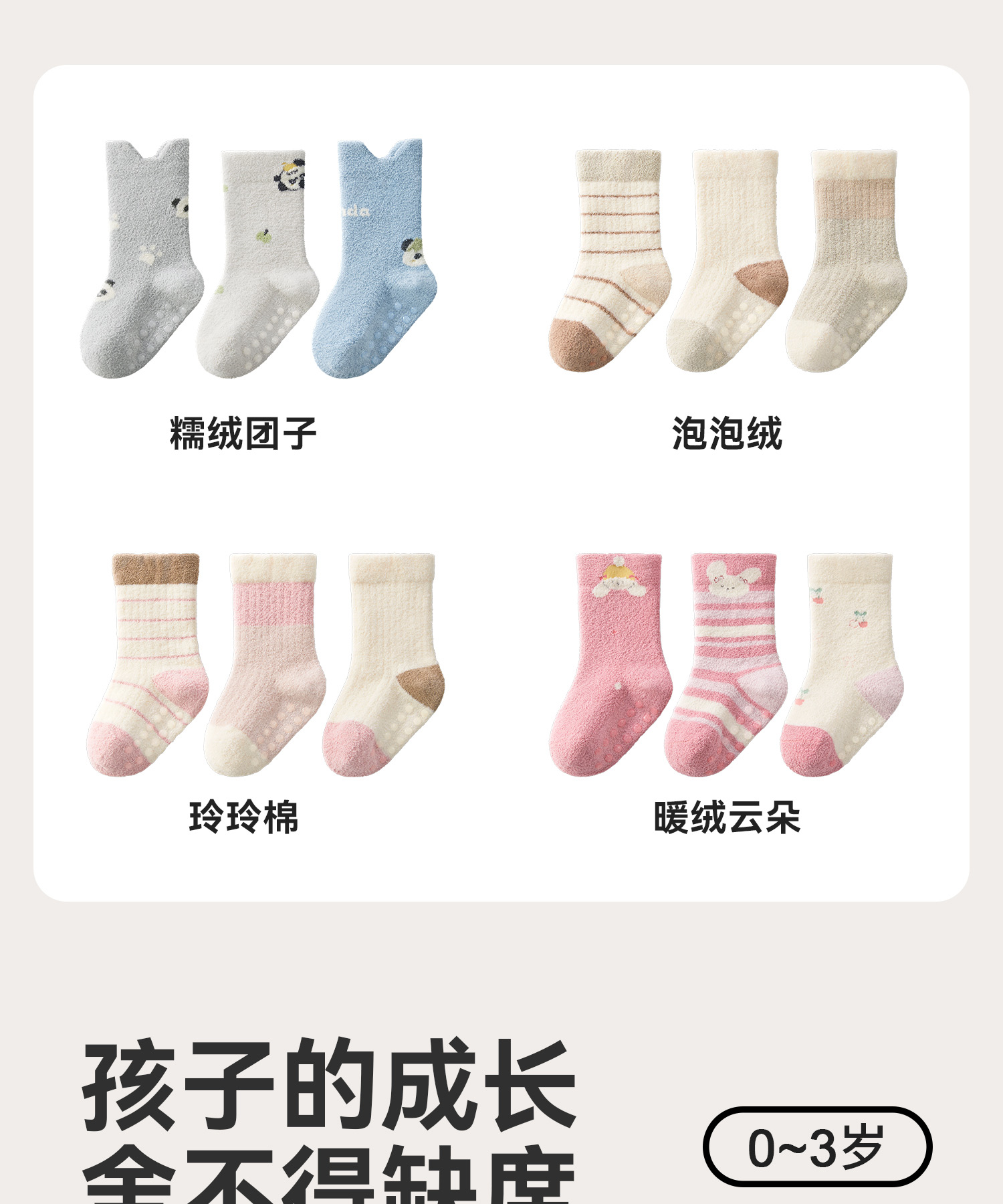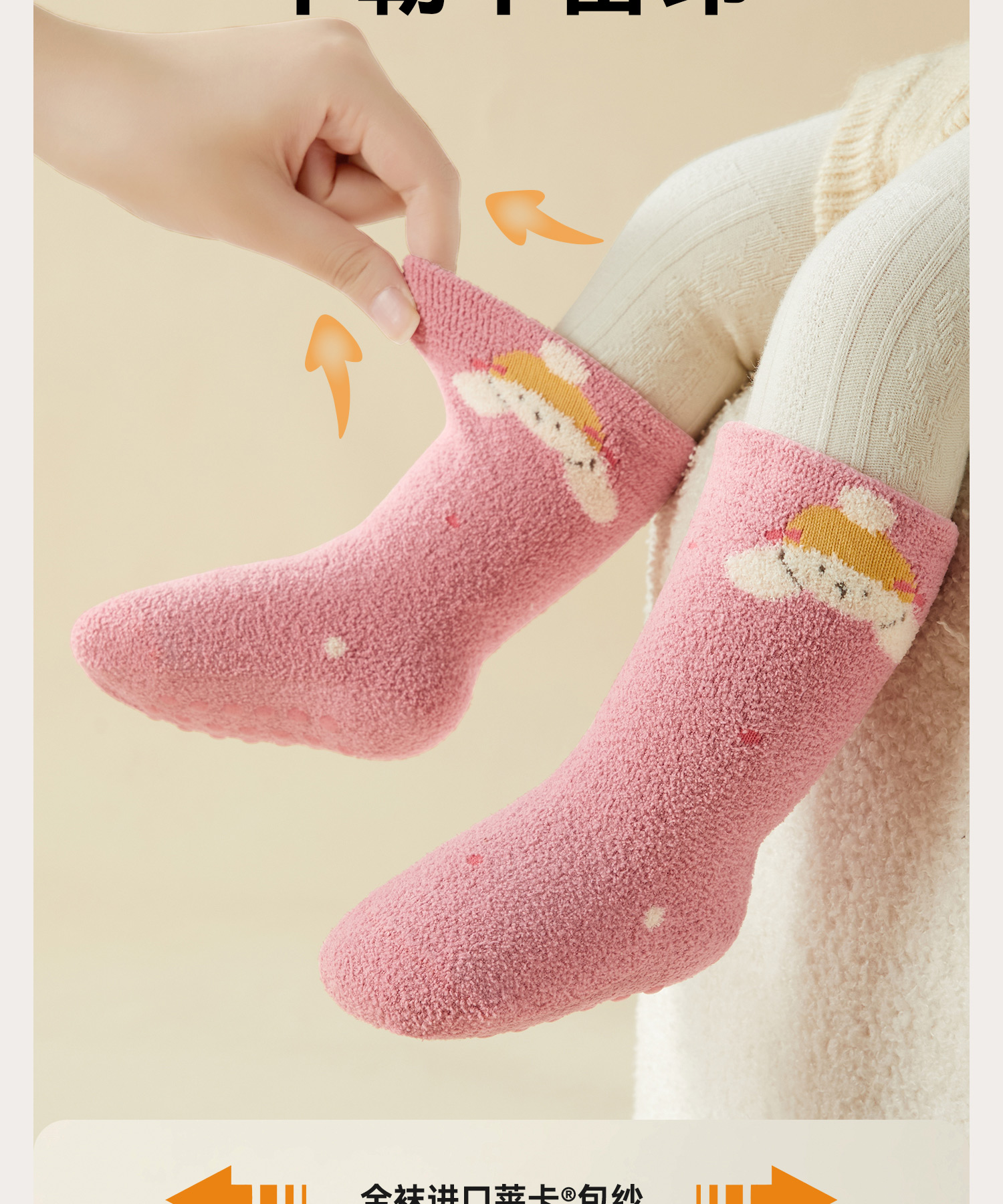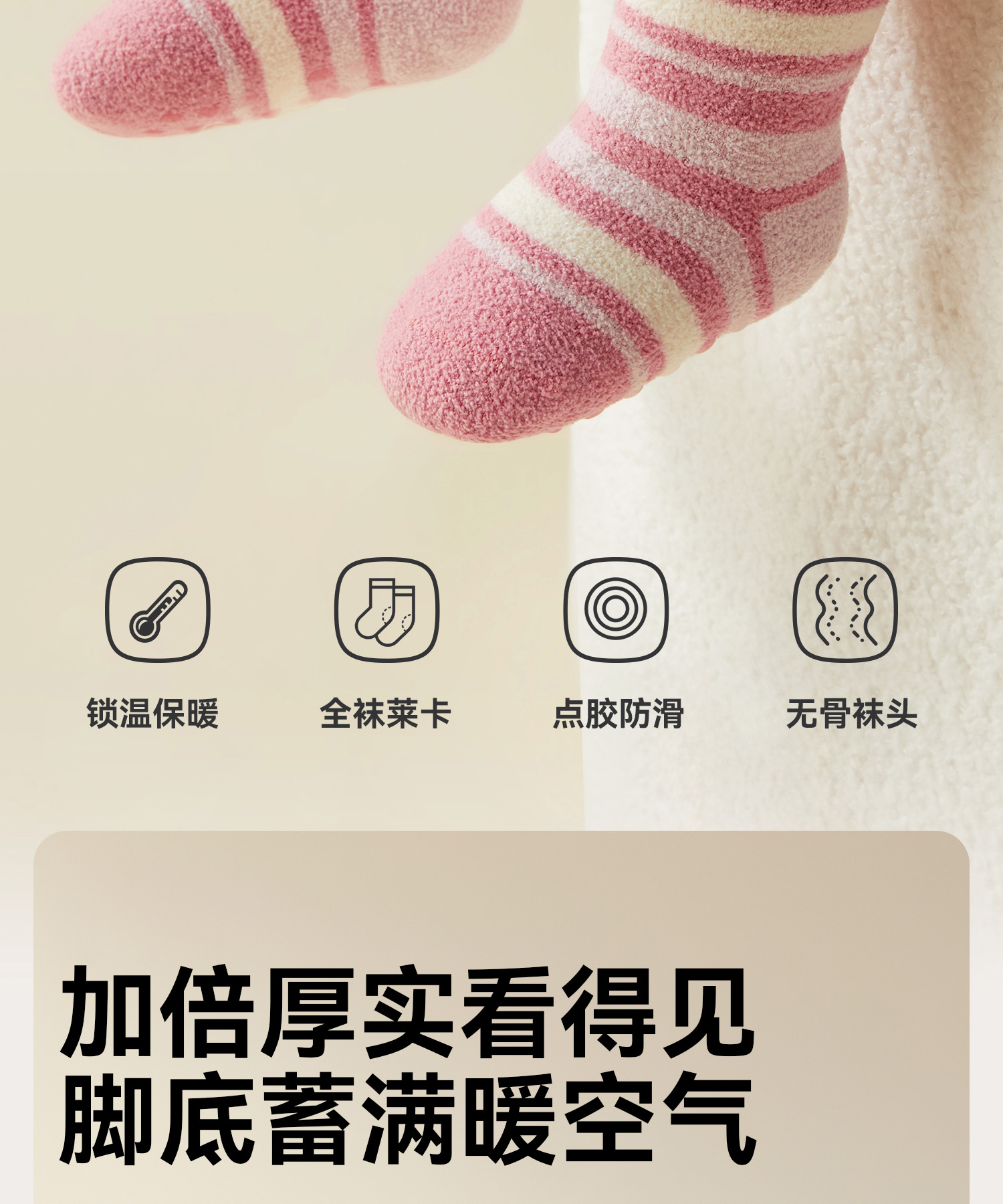 婴儿袜子秋冬款加绒加厚新生幼儿宝宝冬季a类无骨中筒防滑地板袜