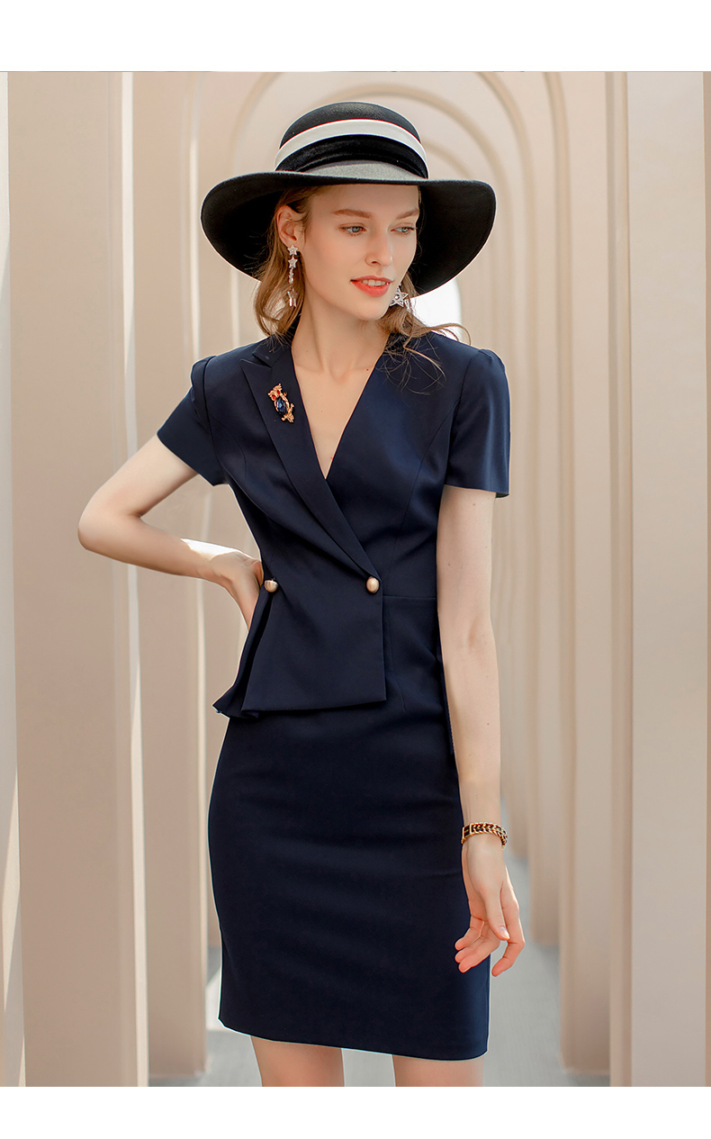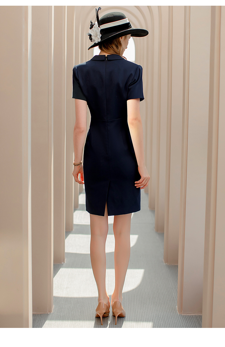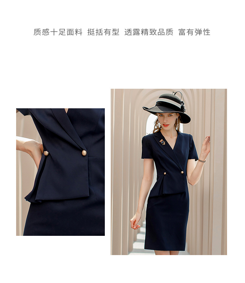 IWY/藏青色工作服高端短袖夏季职业装连衣裙女假两件售楼部工作服 Q731