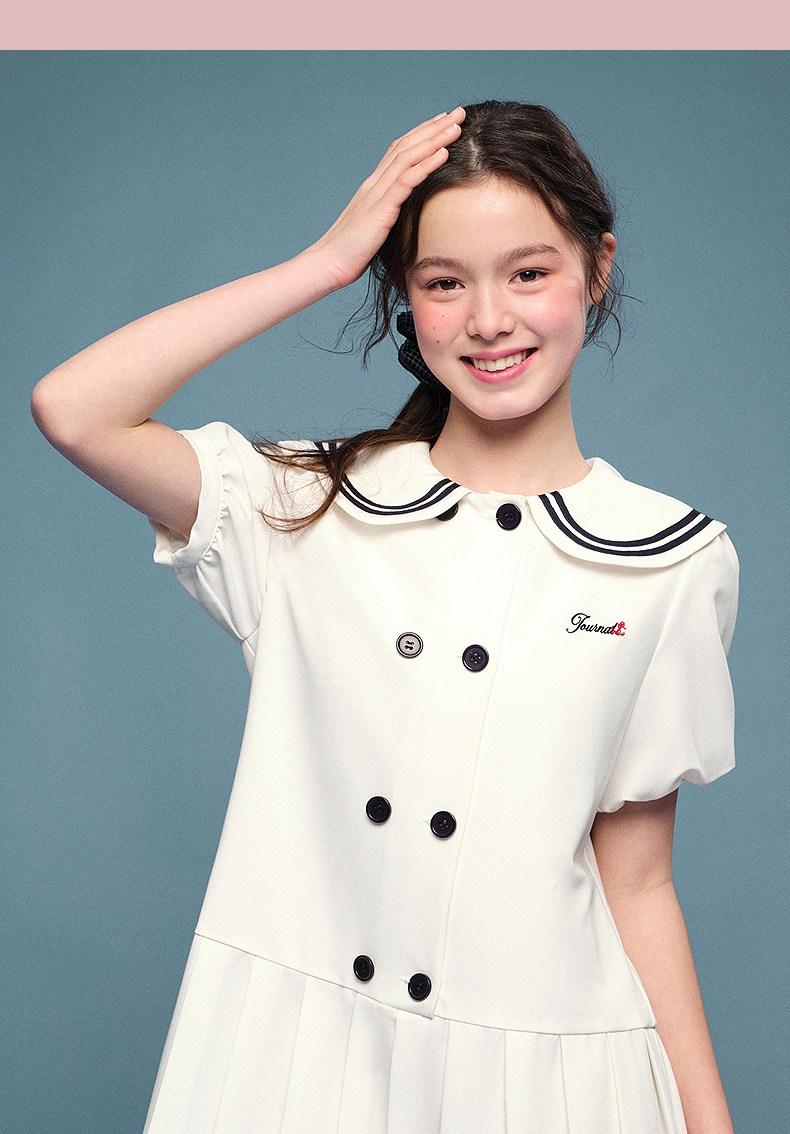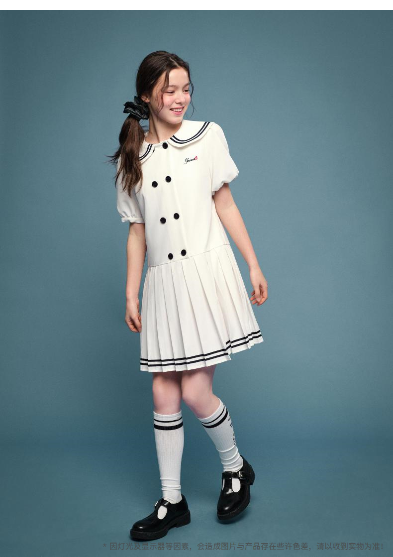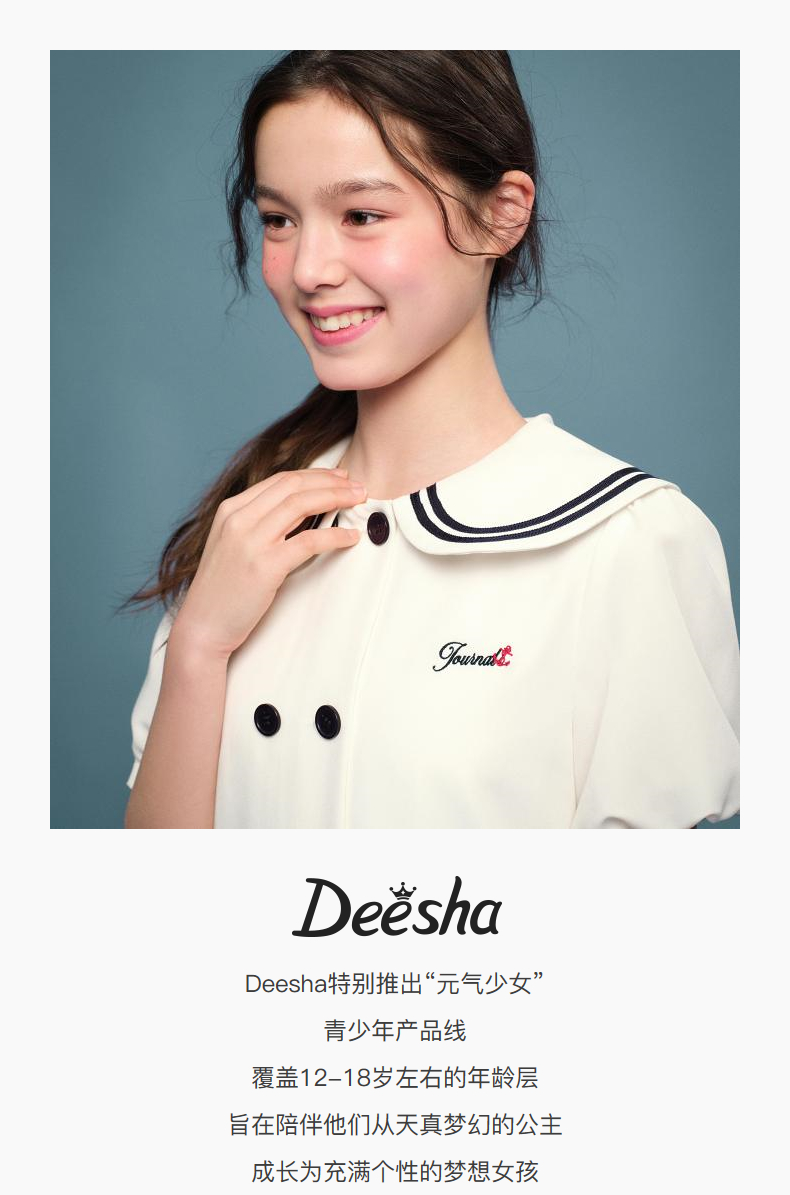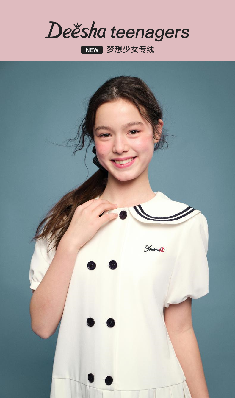 笛莎Deesha 2026年夏季新款青少年学院风刺绣标连衣裙裙子