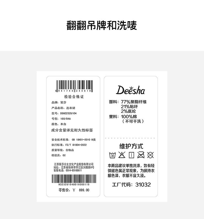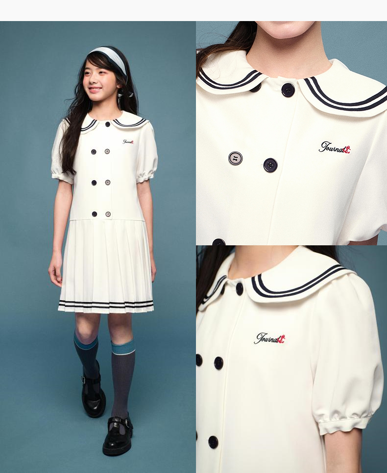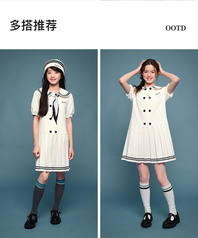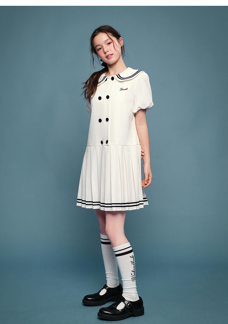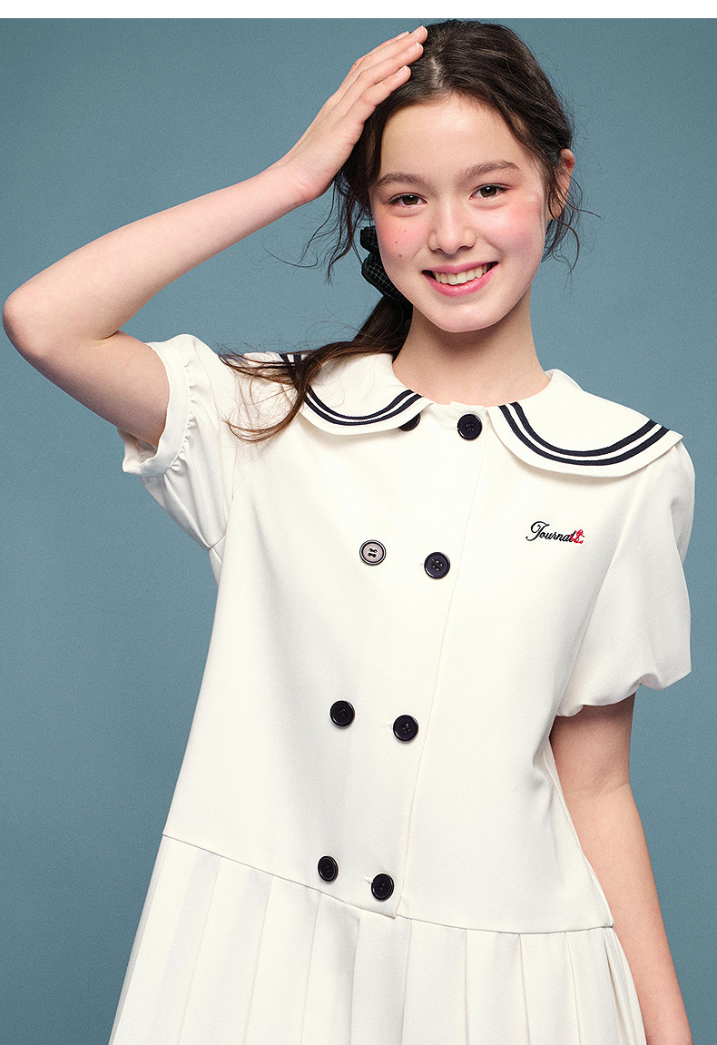笛莎Deesha 2026年夏季新款青少年学院风刺绣标连衣裙裙子