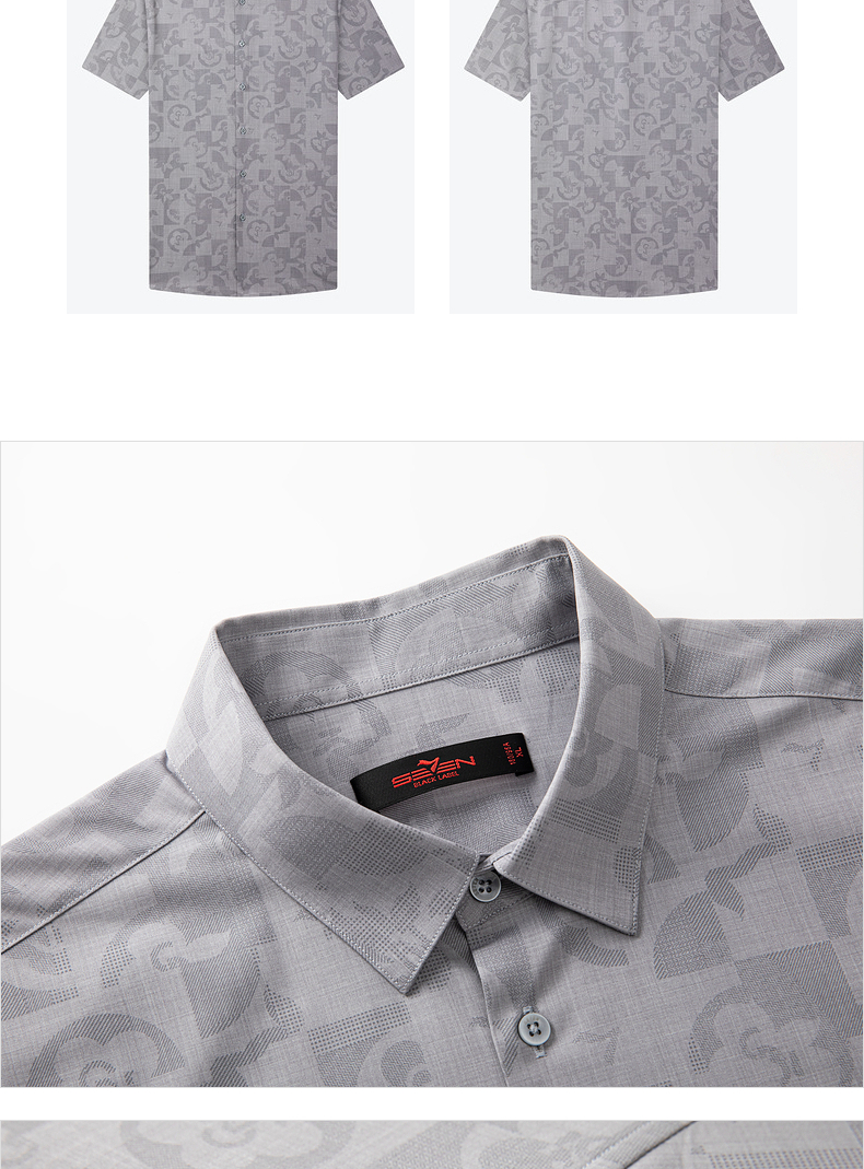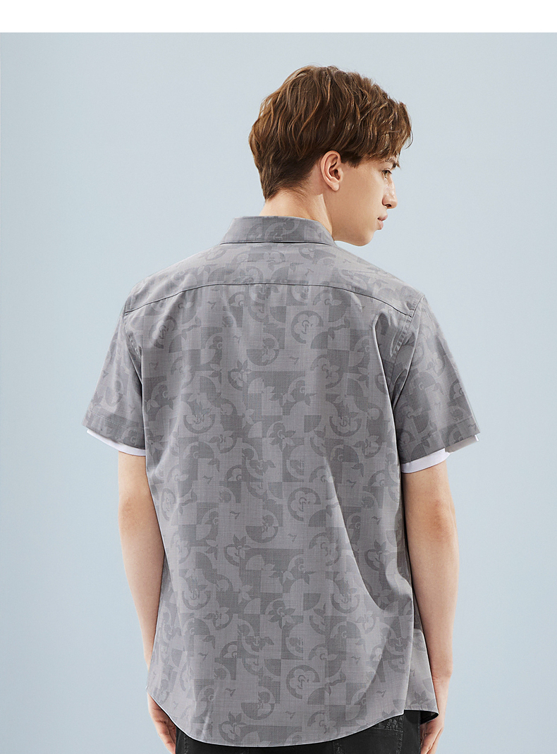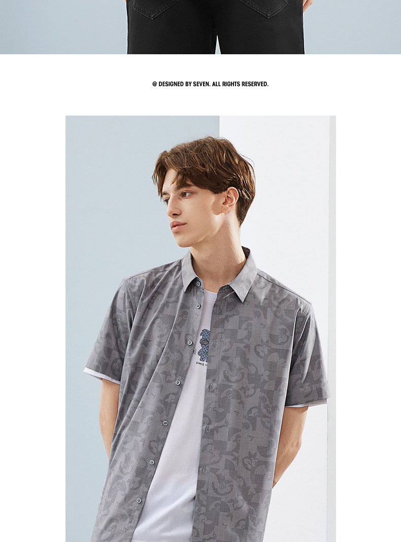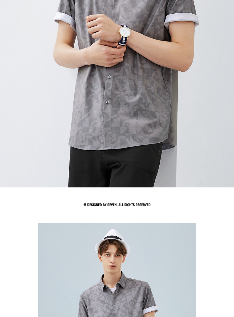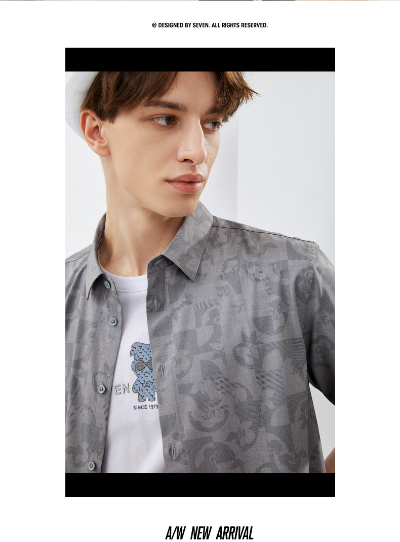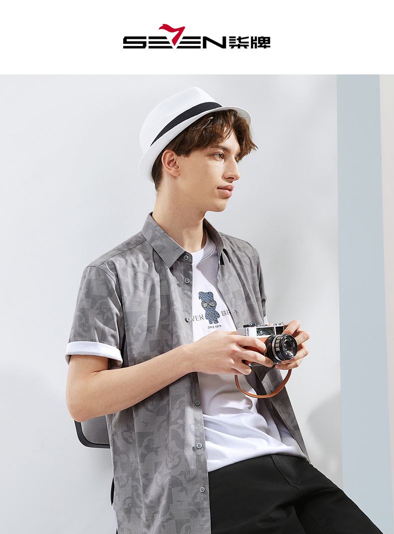 【含莫代尔】柒牌男士短袖衬衫夏季新款时尚潮流满身印花翻领衬衣 124A70030