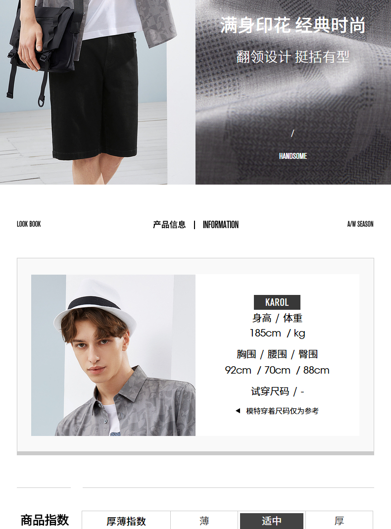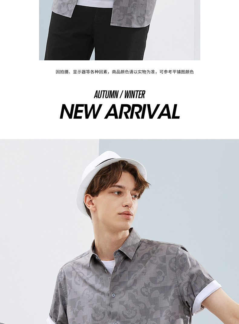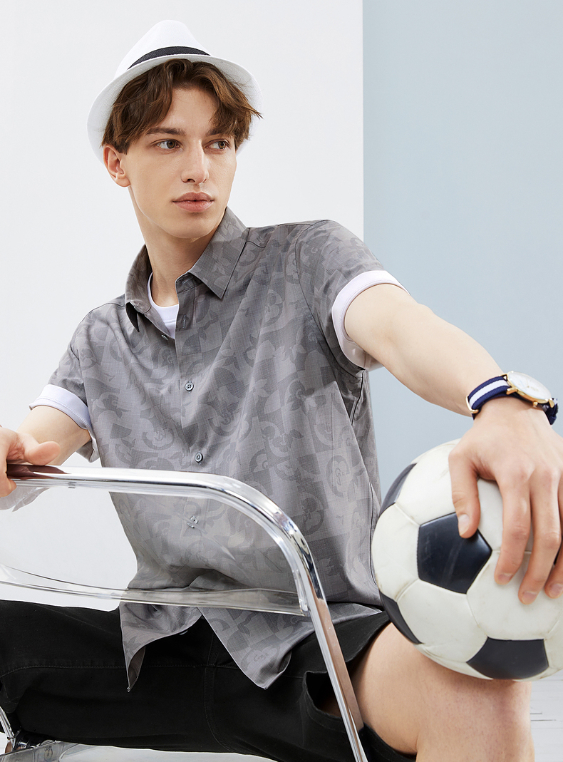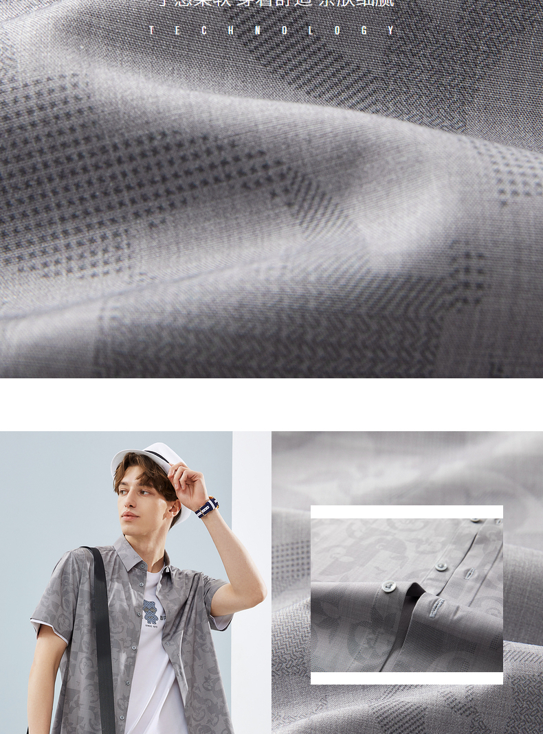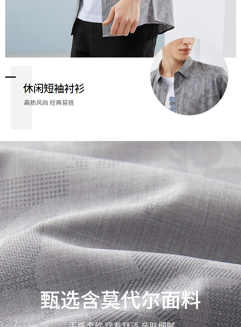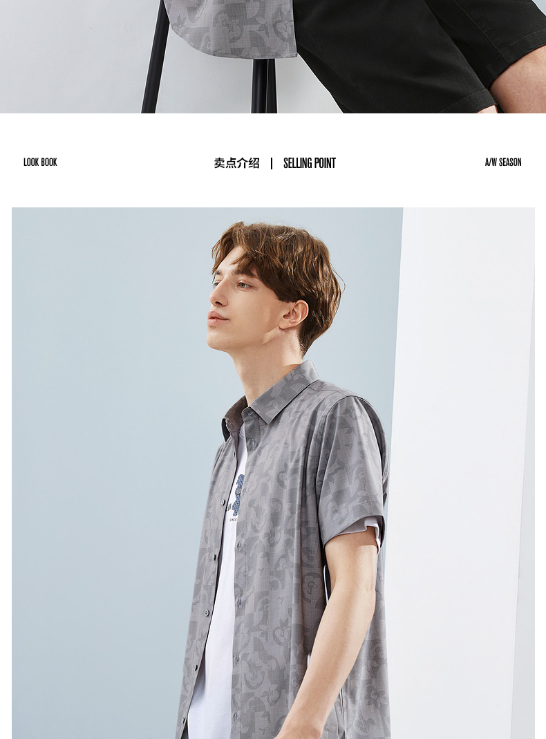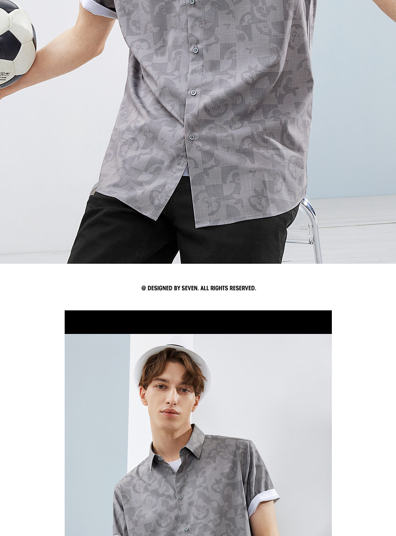 【含莫代尔】柒牌男士短袖衬衫夏季新款时尚潮流满身印花翻领衬衣 124A70030