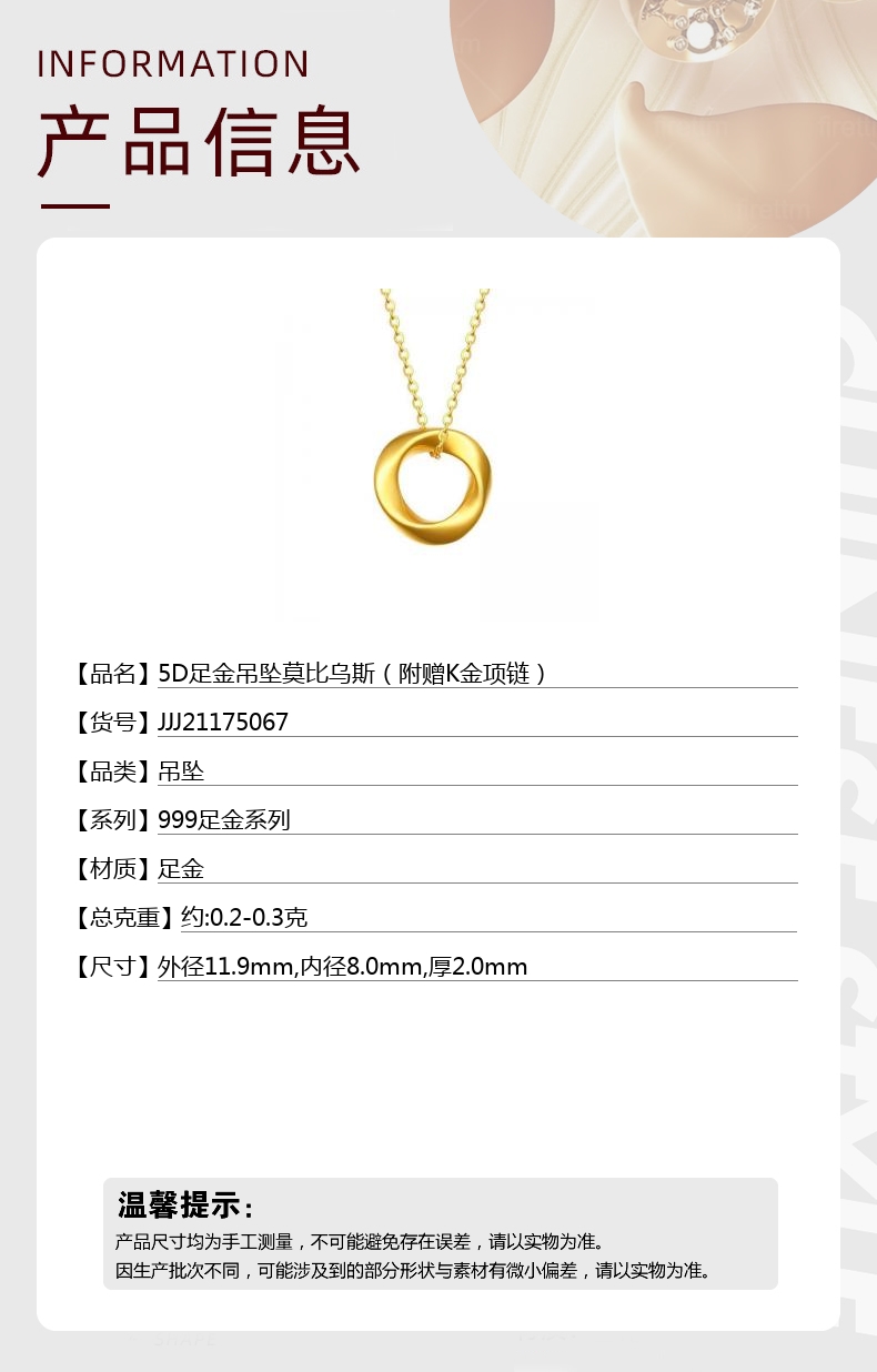 【品名】5D足金吊坠莫比乌斯(附赠K金项链)