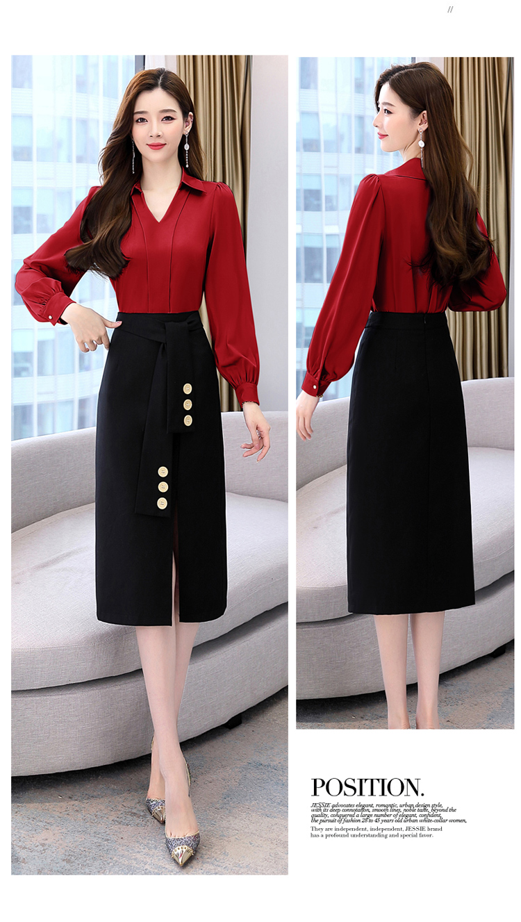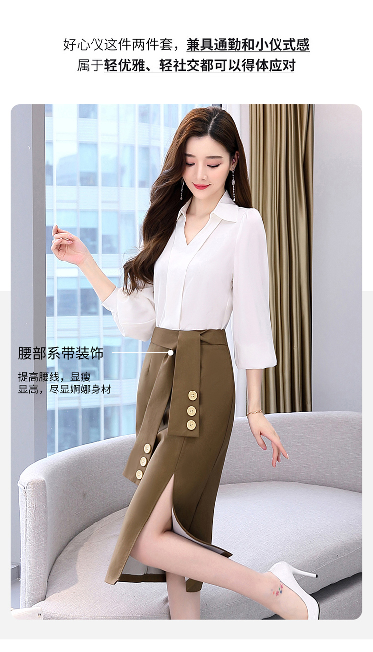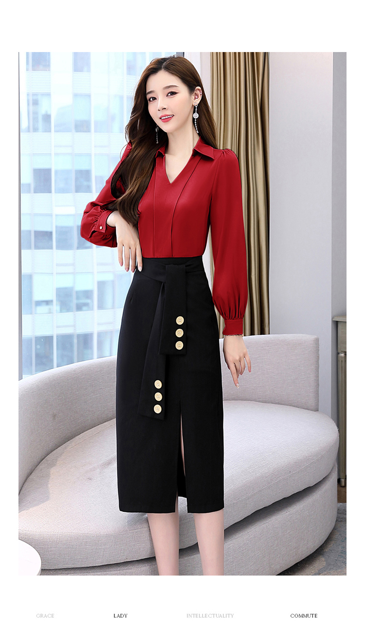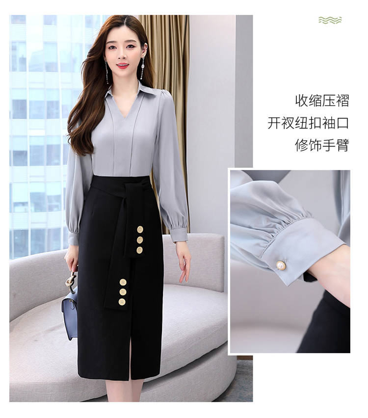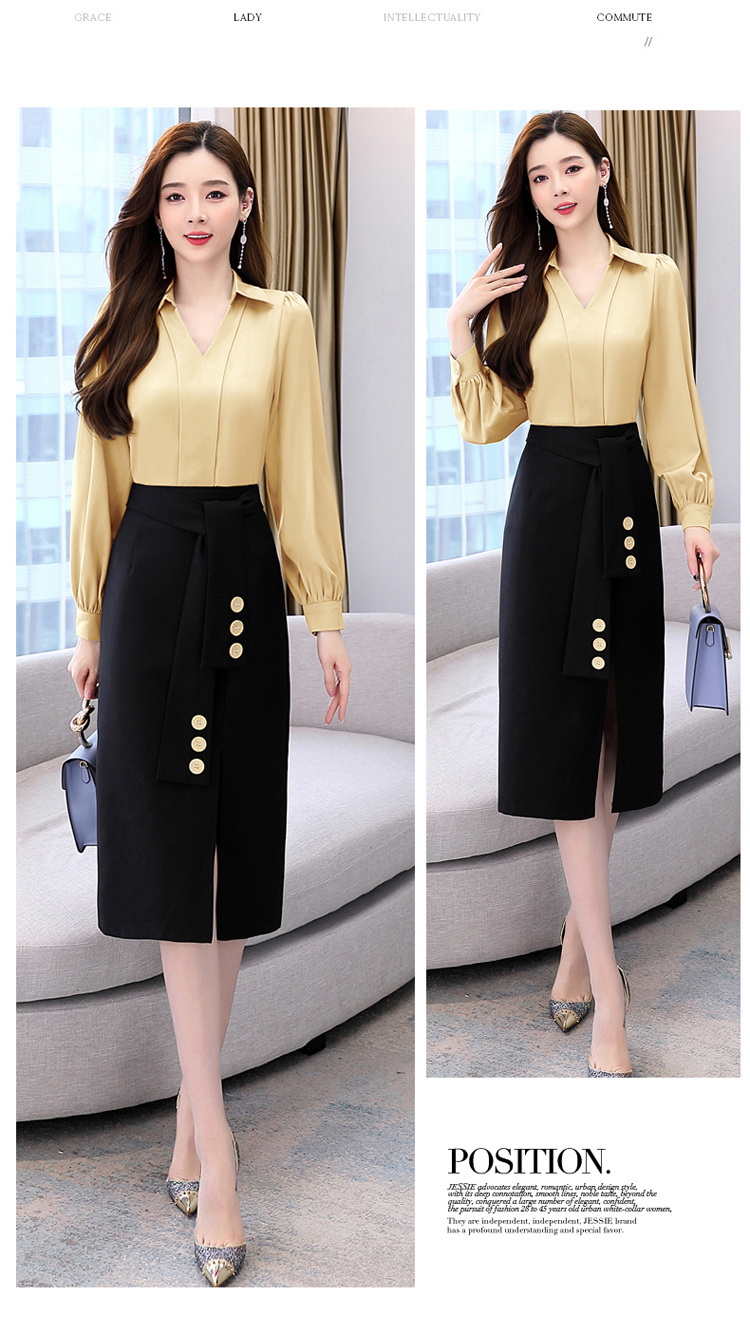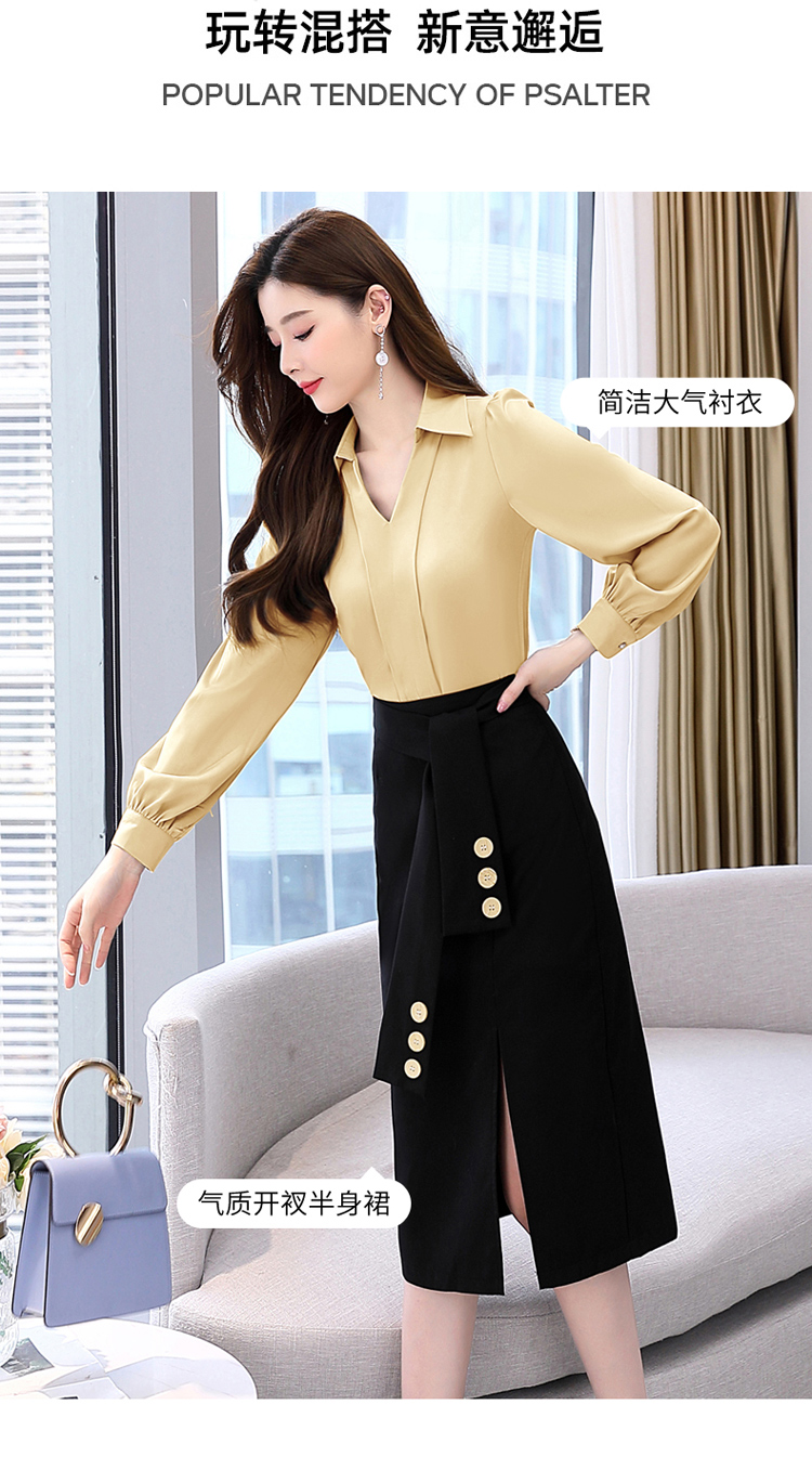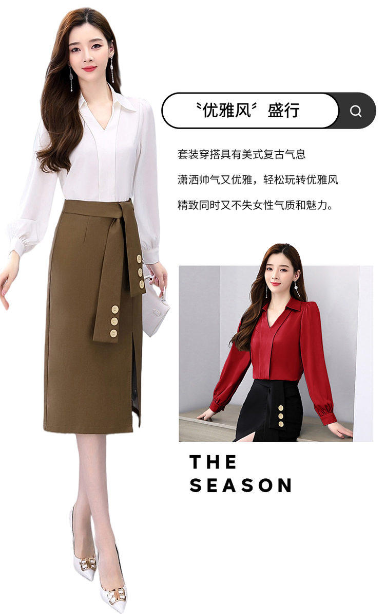韩版修身,翻领衬衫+半裙两件套时尚套装HR-HBLJRA032
