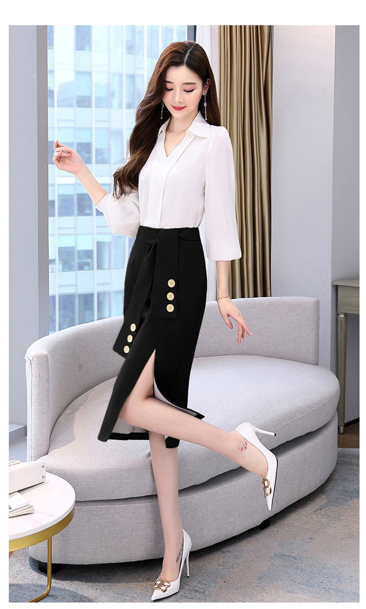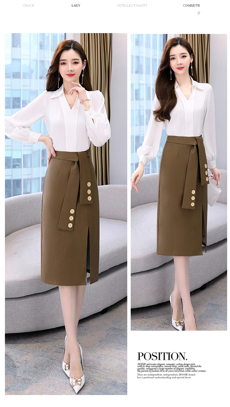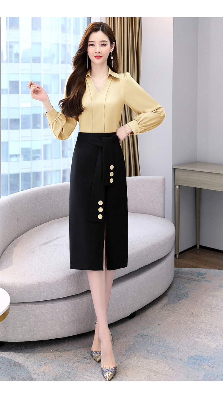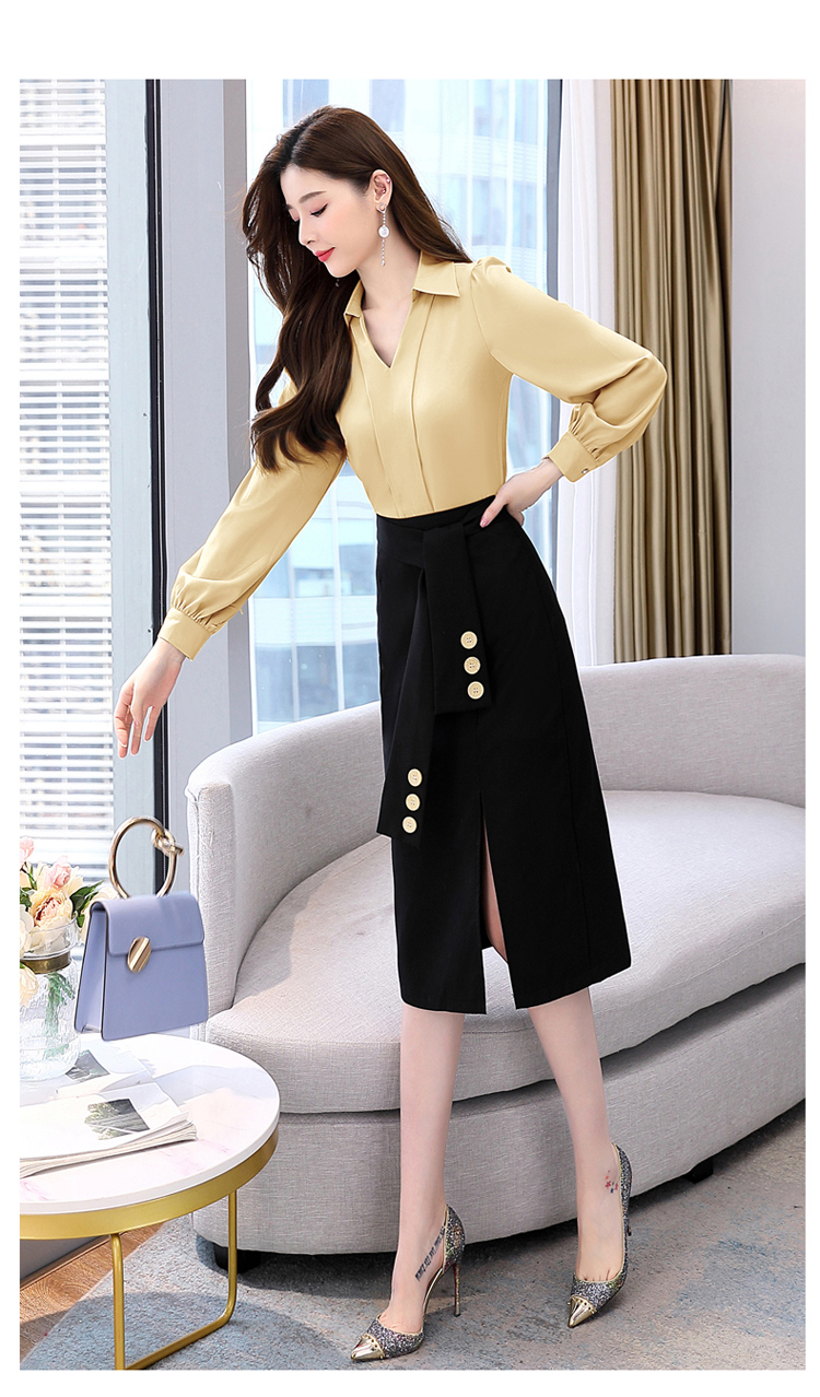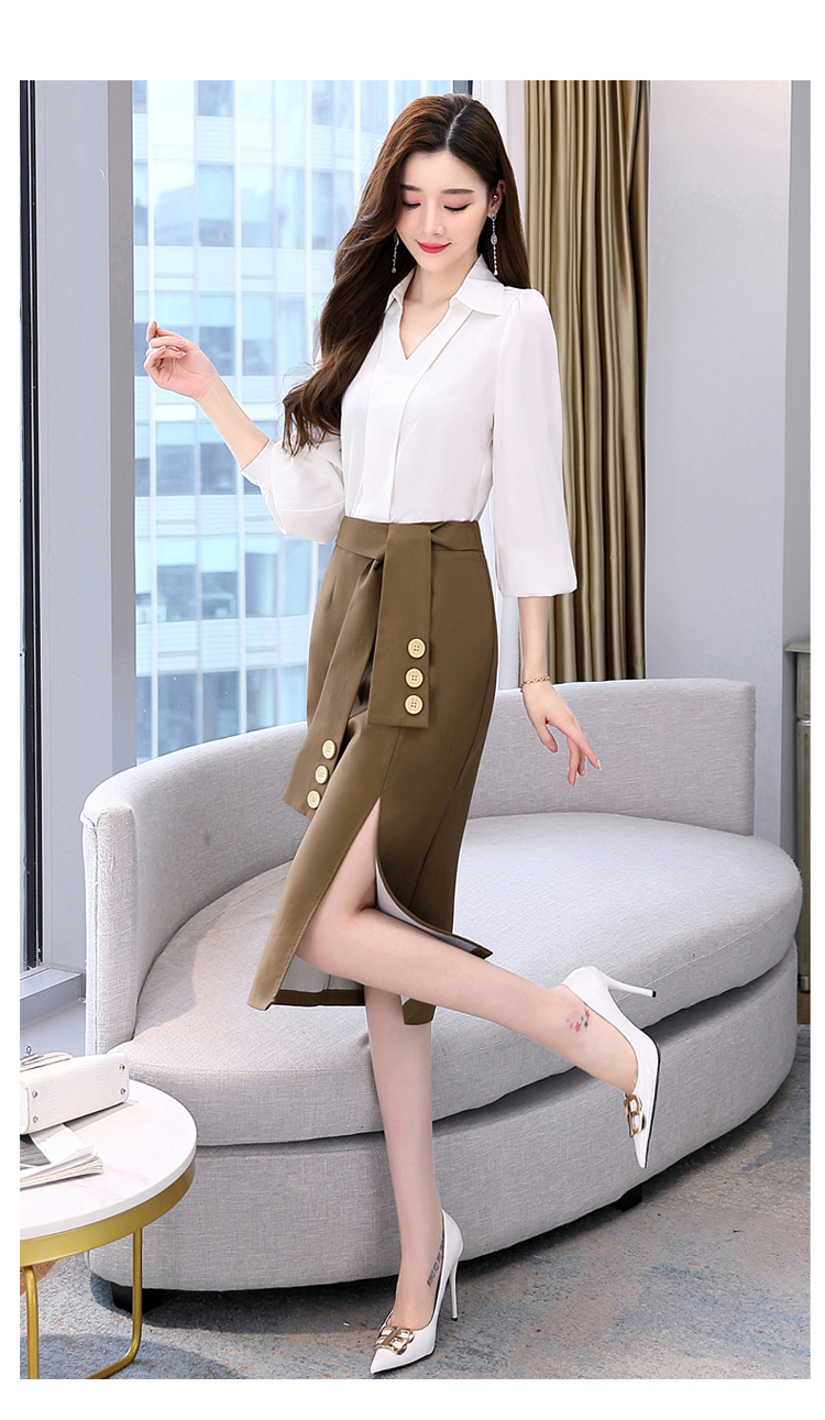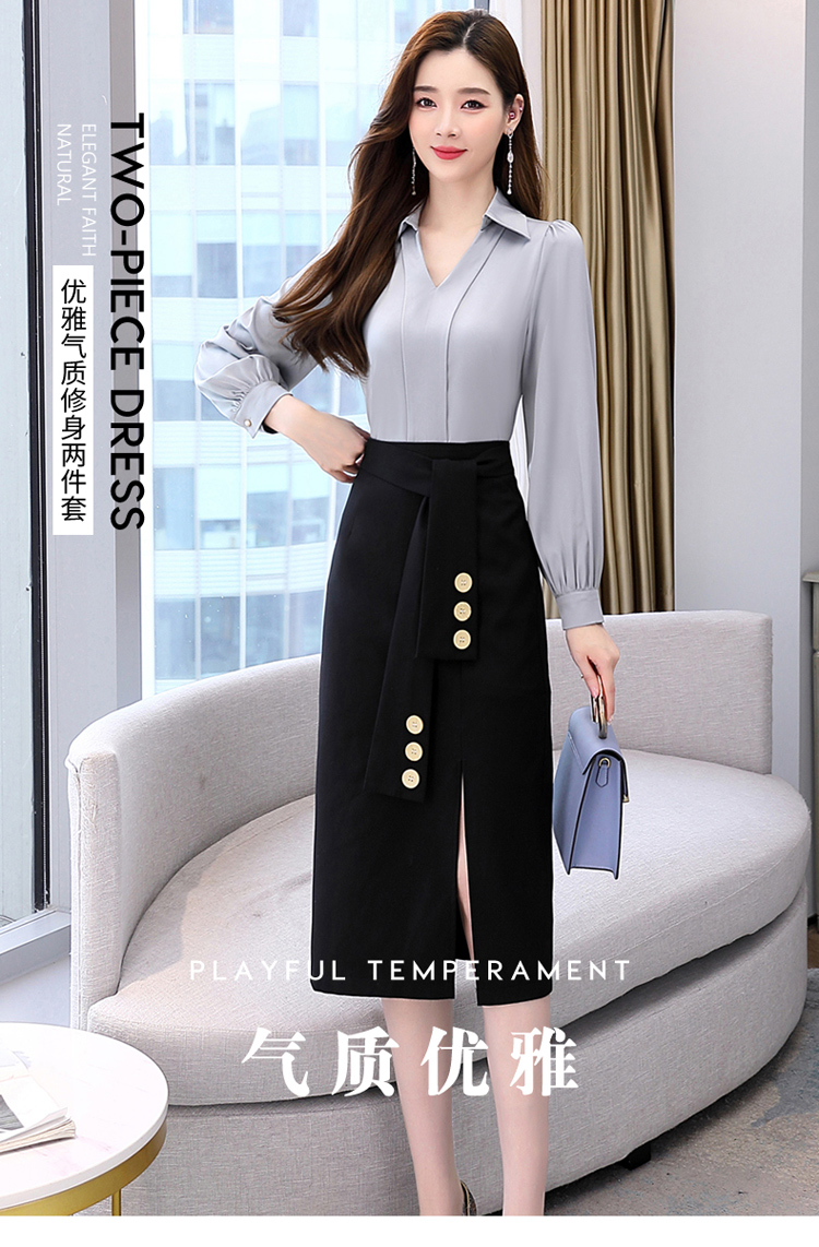 韩版修身,翻领衬衫+半裙两件套时尚套装HR-HBLJRA032