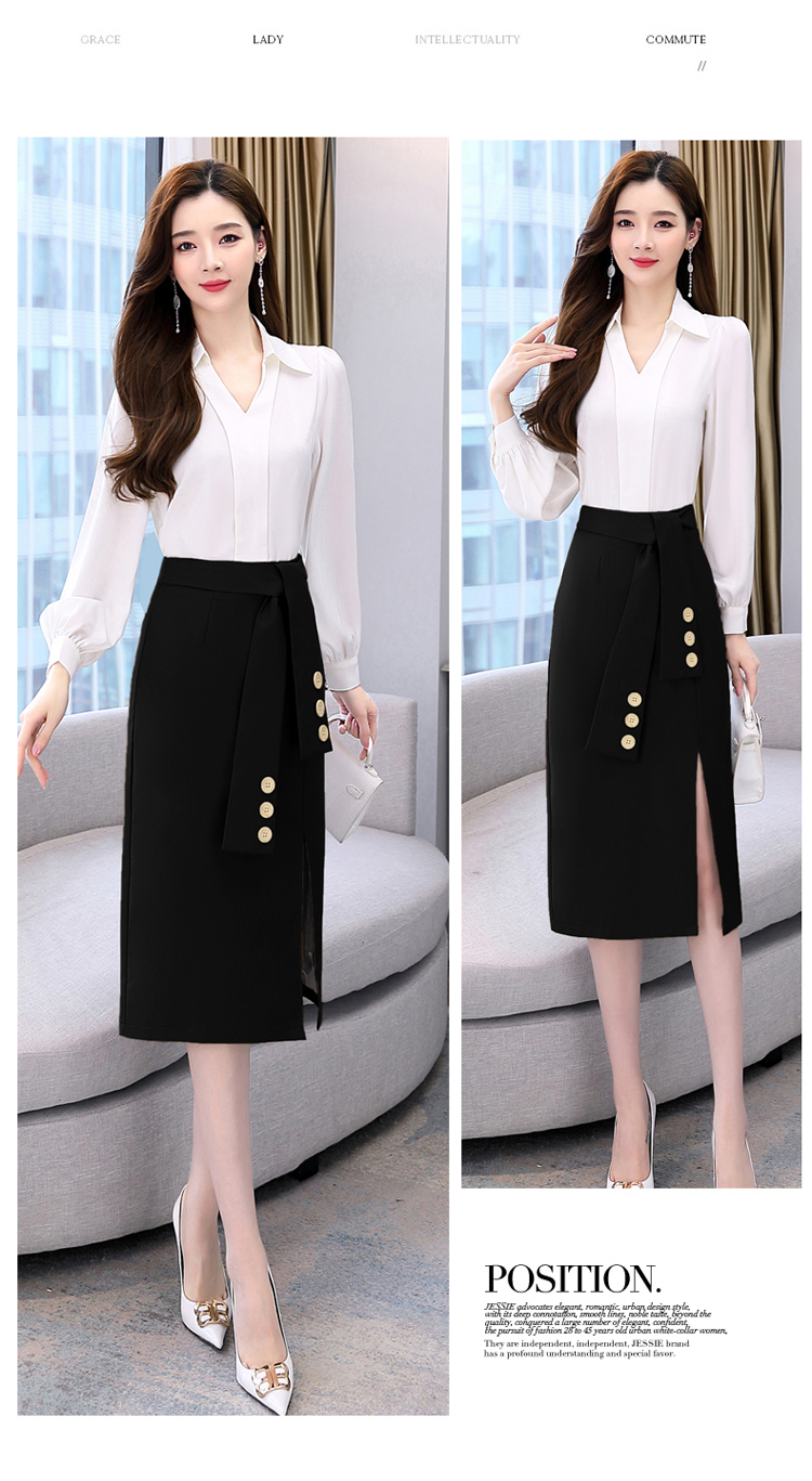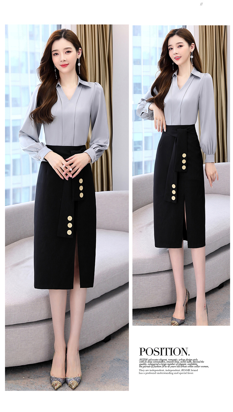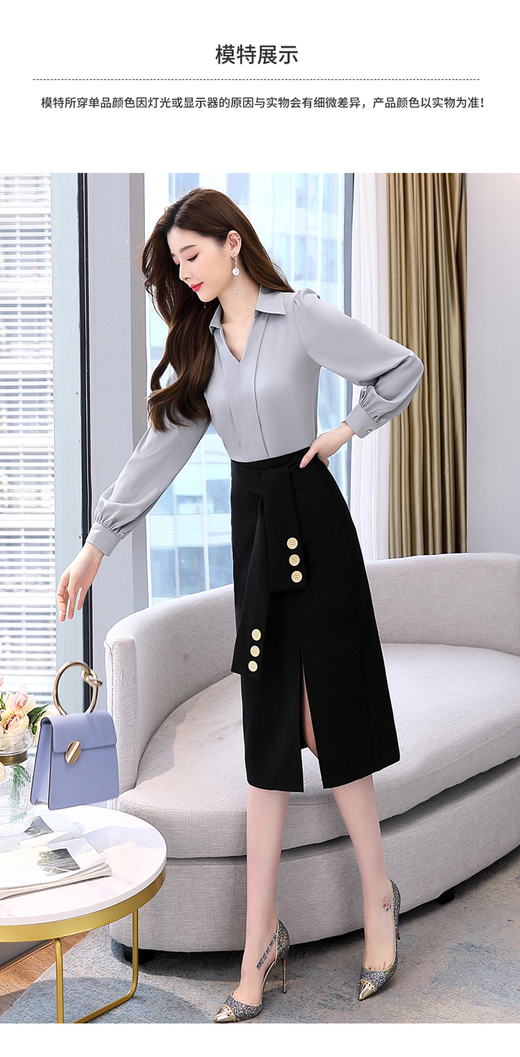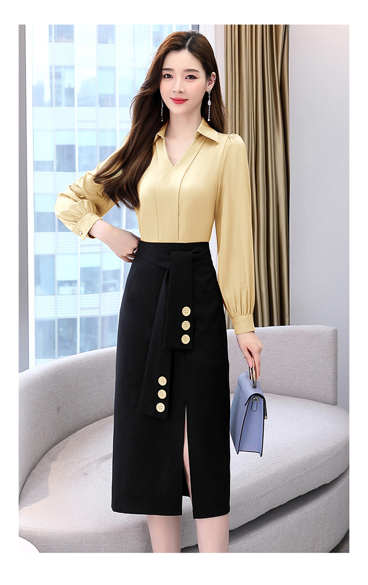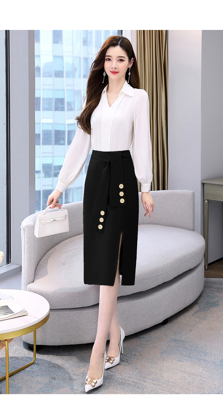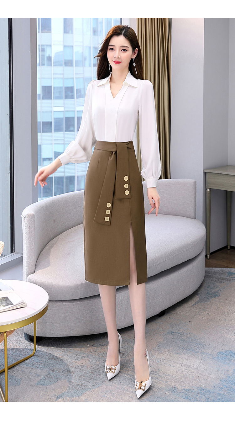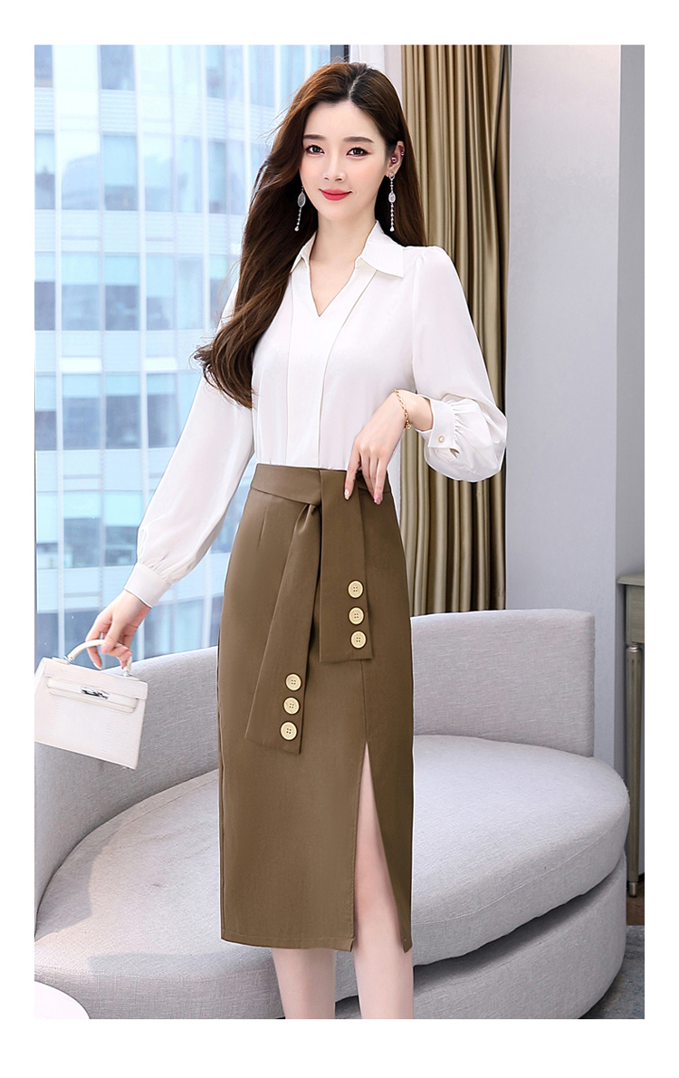 韩版修身,翻领衬衫+半裙两件套时尚套装HR-HBLJRA032