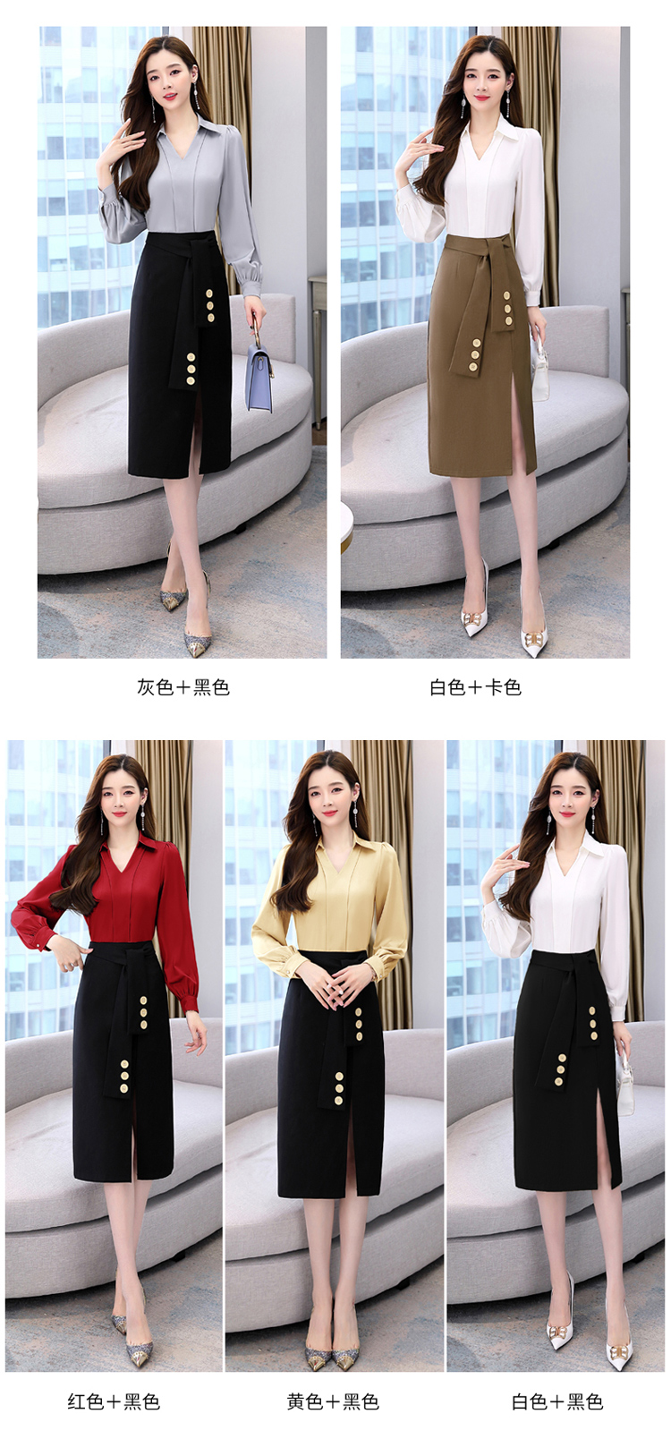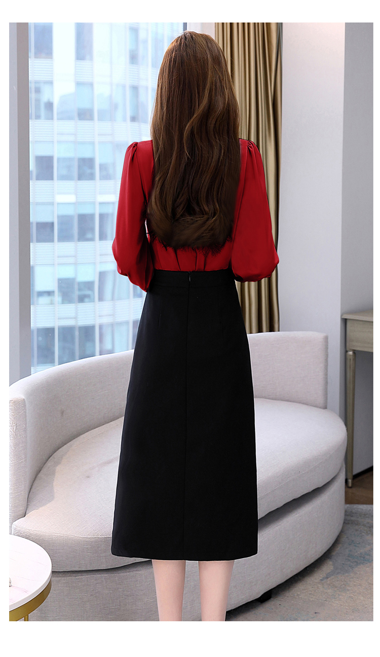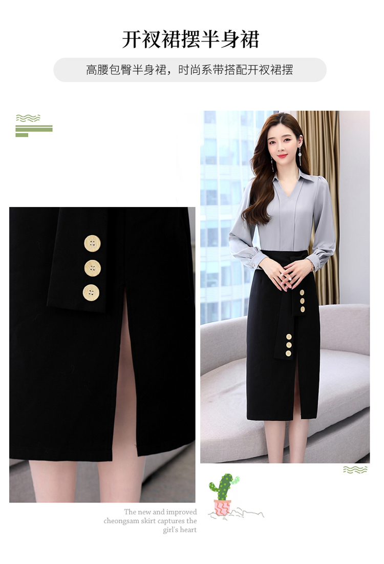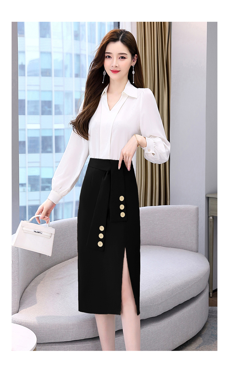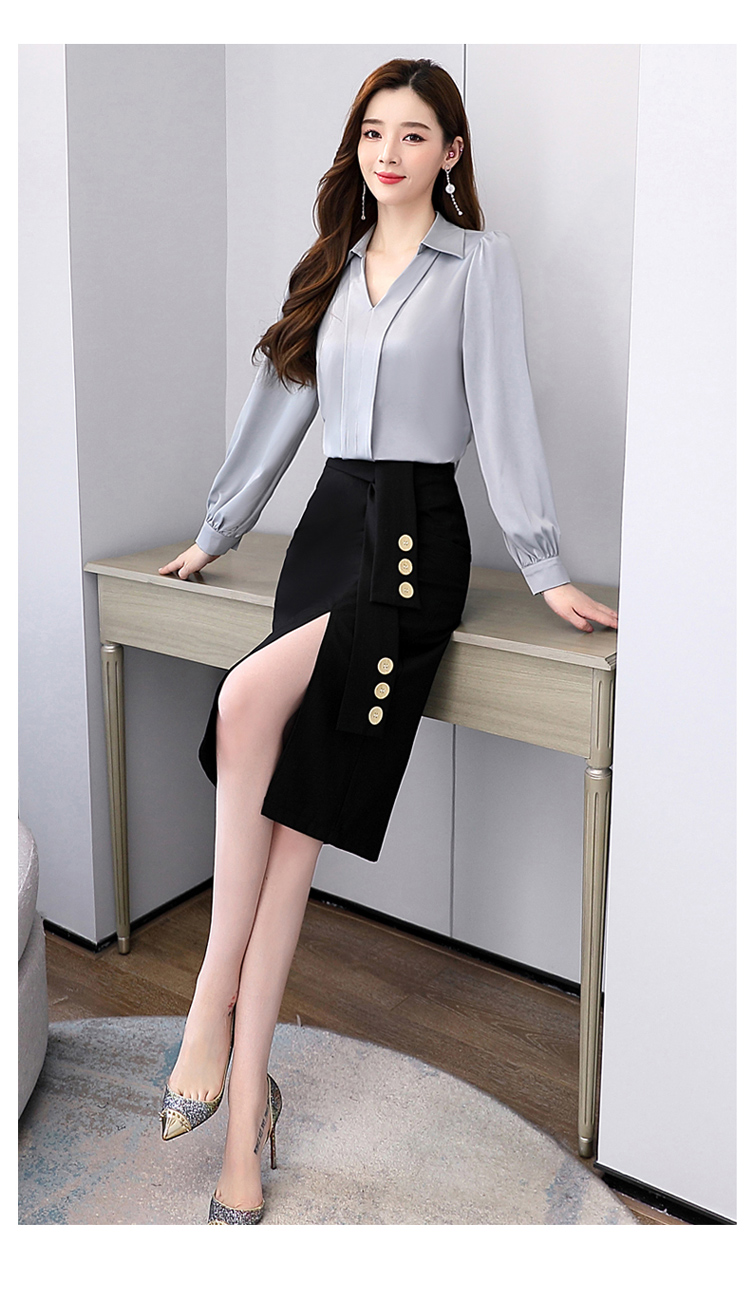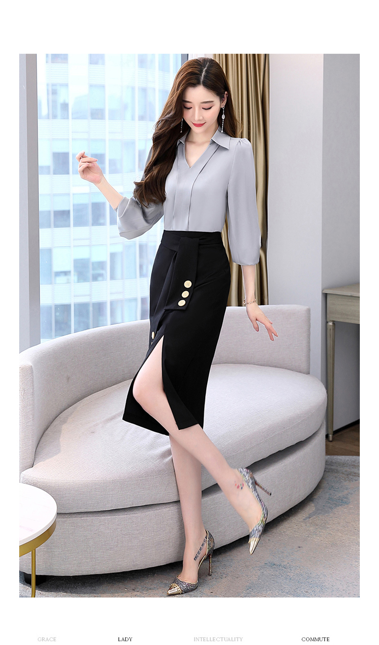 韩版修身,翻领衬衫+半裙两件套时尚套装HR-HBLJRA032
