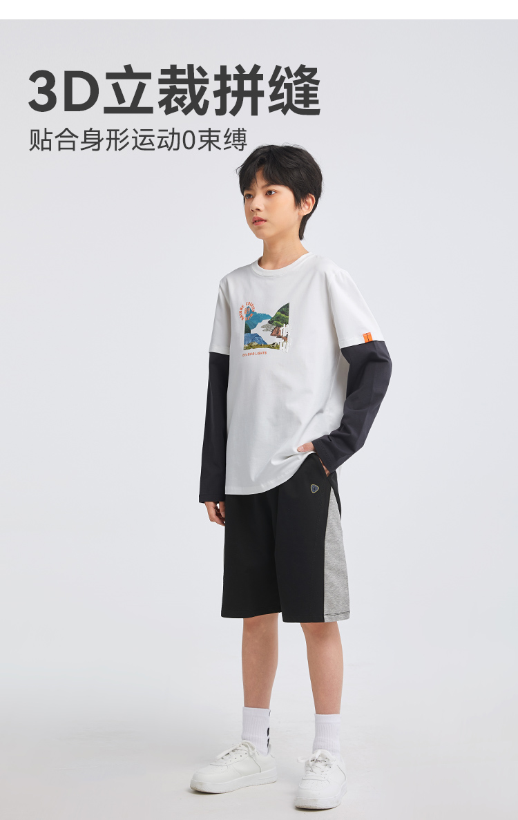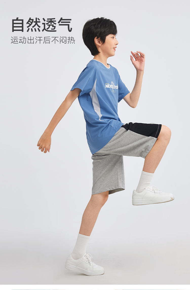 水孩儿童装夏季新款男童五分裤针织中大童短裤拼色舒适百搭裤子
