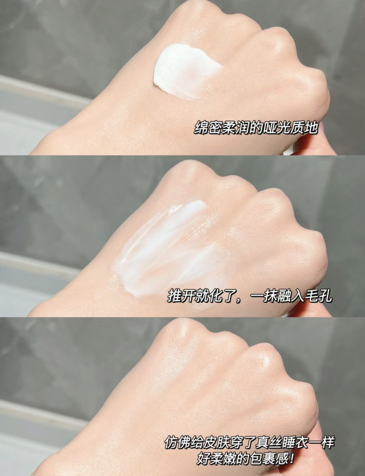 丝滑奶油质地,很好推开,迅速成膜,