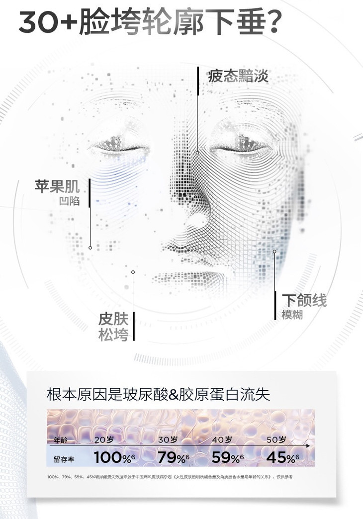 皮肤内源性胶原和玻尿酸流失,垮态渐显