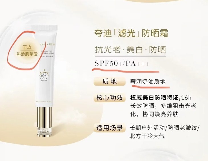 5重化学防晒,过滤多余UV,减少光老化进一步深入