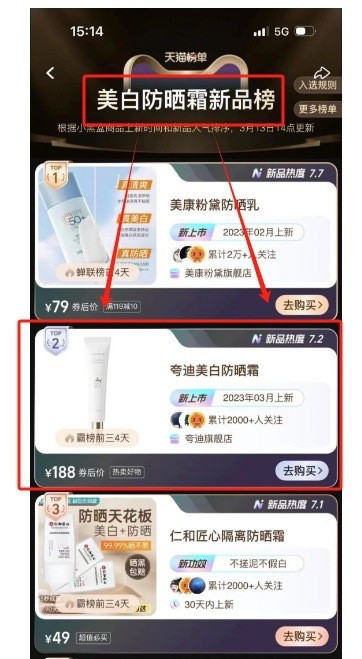 冲上天猫美白防晒霜新品榜前三,并连续霸榜多天!