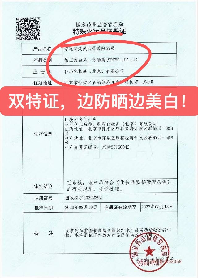 【美白➕防晒双特证】安心用,持证上岗!