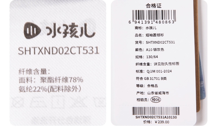 水孩儿童装夏季女童短袖男童圆领衫防晒凉感舒适时尚休闲透气