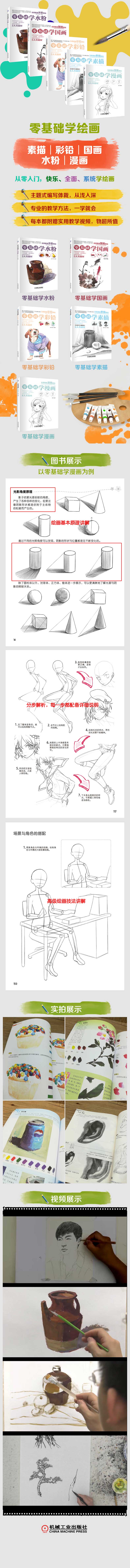 | 本书按照不同绘画类型设定不同的主题,分为4章,分别是绘画基础、美味食物、清新植物、可爱萌宠,并搭配数十幅范例画,以供读者练习临摹。 本书作画步骤详尽、细致,使学习者容易上手。与同类书相比,本书的特色在于绘画教学与视频教学相结合,所有案例均配有详细的作画视频,读者可通过手机扫描二维码获得视频教学内容。 参与本书编写工作的人员包括袁媛、李晋远、孟玲丽、张蜜蜜、刘丽、闫昕彤、徐亚男、魏立莹、邰树文、任琪、徐亚双、黎贯宇、杨金磊。 本书适合参加美术联考的考生和艺术类院校学生使用。 |
