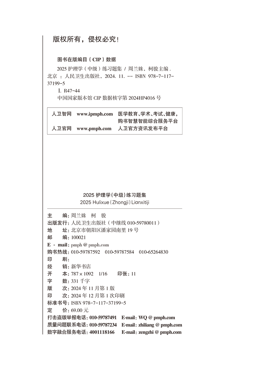 2025护理学(中级)练习题集 周兰姝 柯骏 全国卫生专业技术资格考试习题集丛书 适用专业护理学妇产科内科儿科外科社区护理(中级)