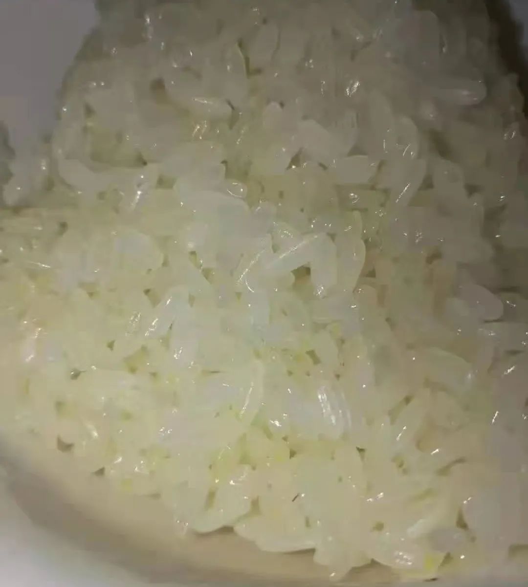 如此通透的米饭,一束光照耀它,竟然就像,万年琥珀般的颜色。