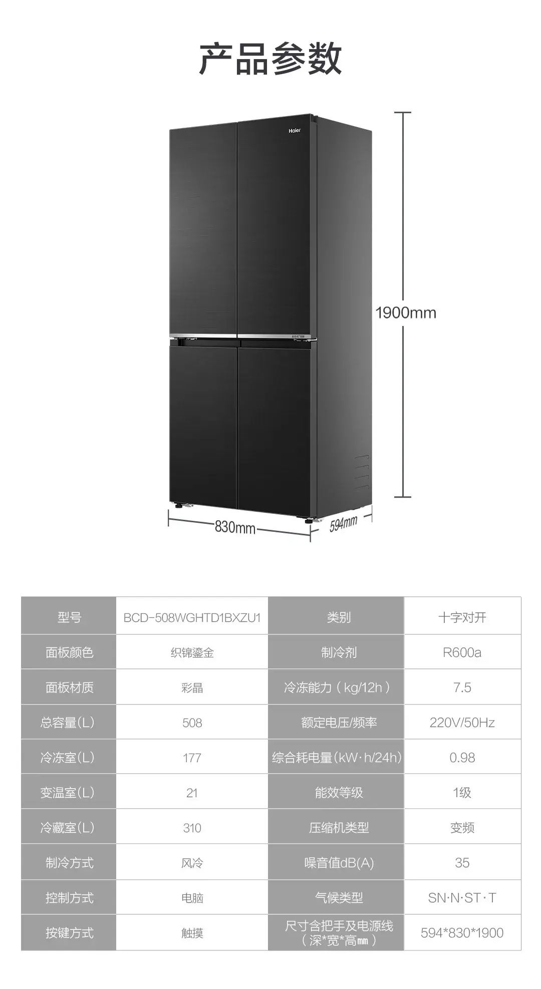 海尔(Haier)冰箱 BCD-508WGHTD1BXZU1