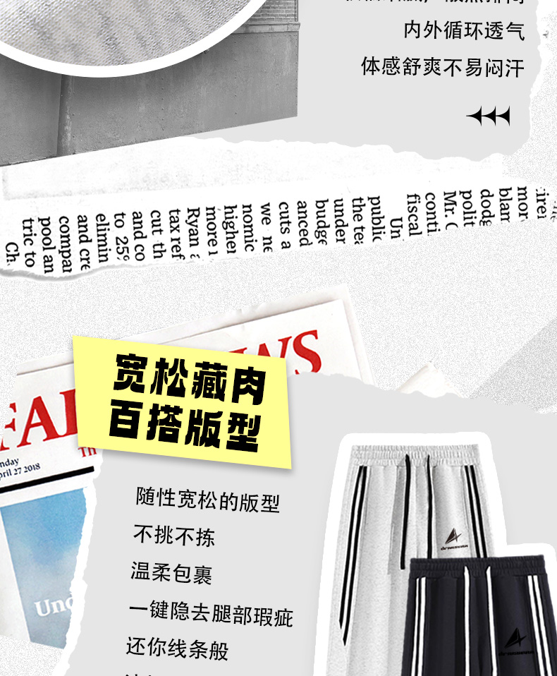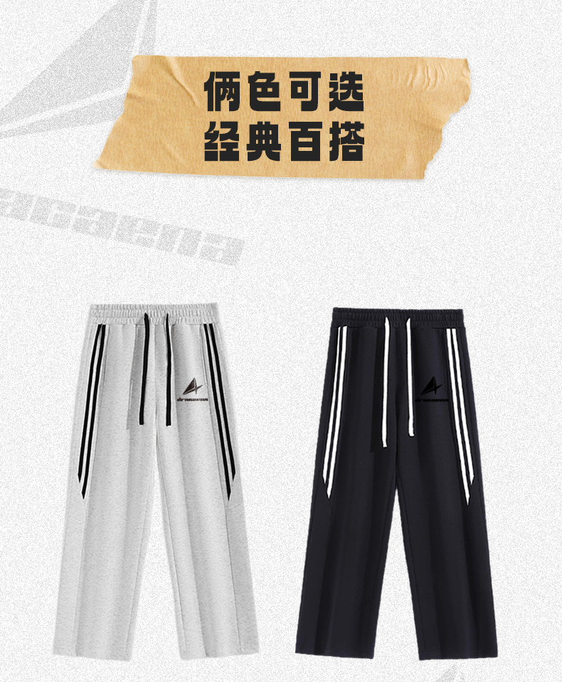 的幸美式运动阔腿裤春夏高街直筒宽松潮牌男生阔腿长裤运动裤