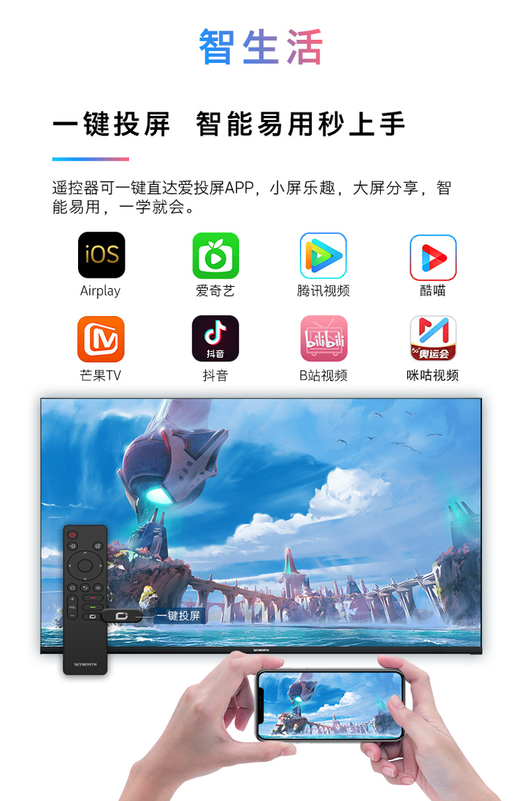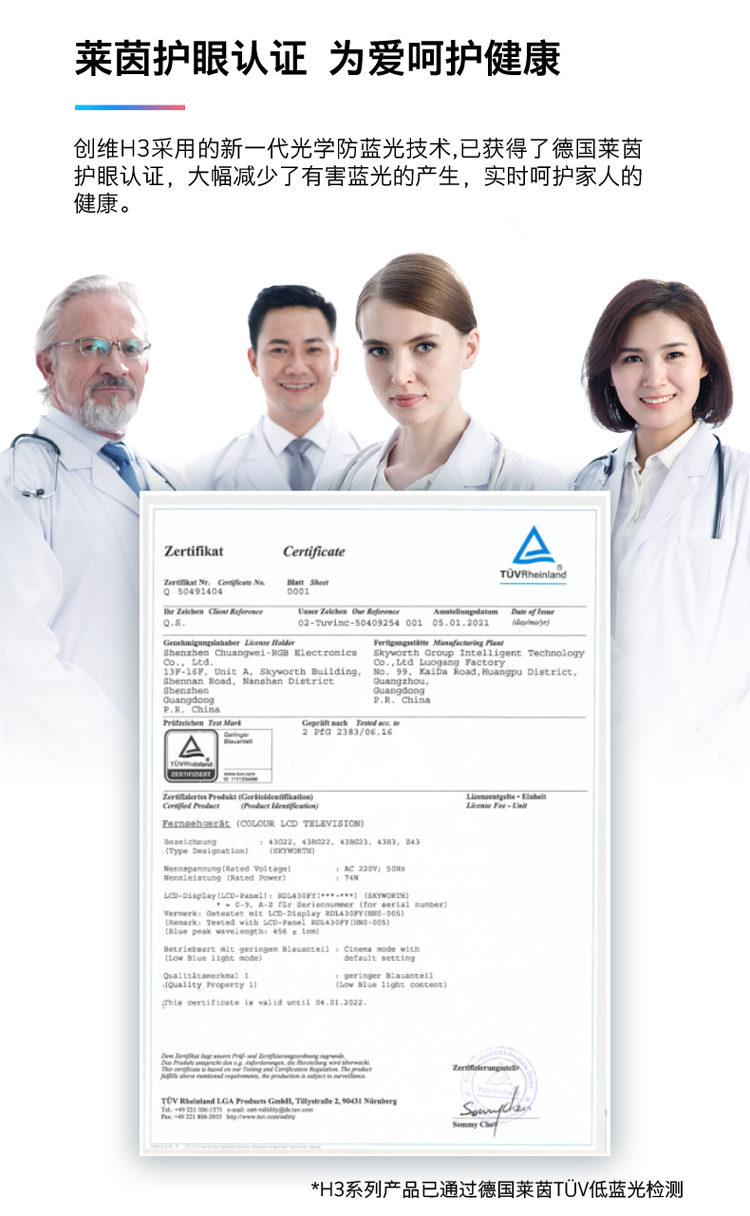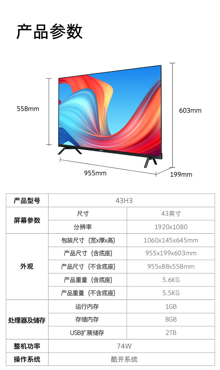 创维(SKYWORTH) 43英寸 2K全高清 防蓝光护眼教育电视 1+8G内存 超薄全面屏平板电视 43H3