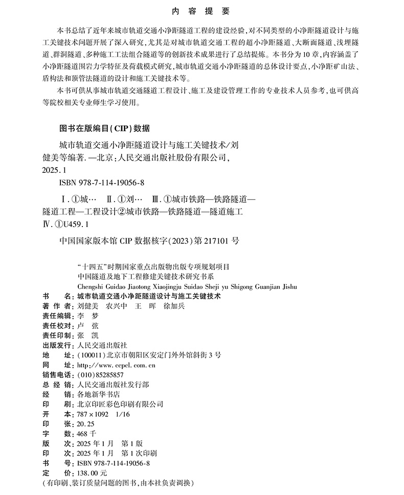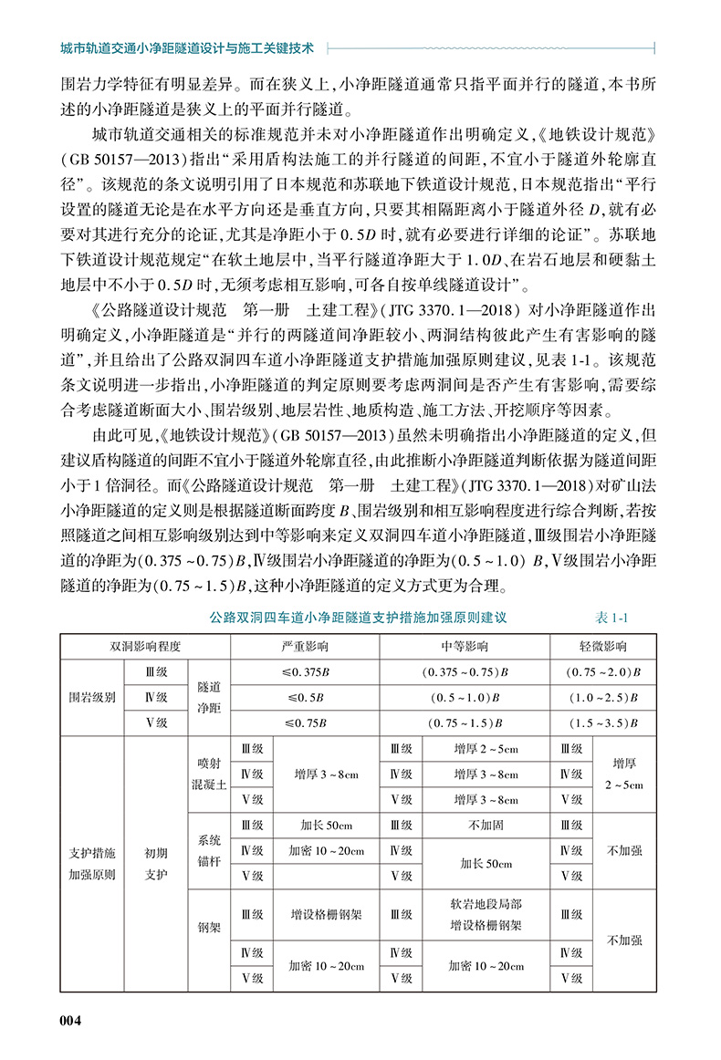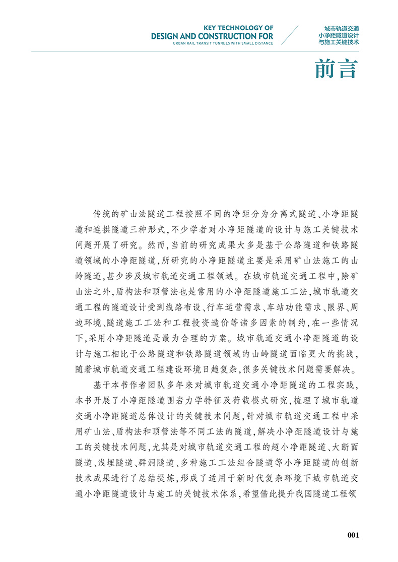 书名:城市轨道交通小净距隧道设计与施工关键技术