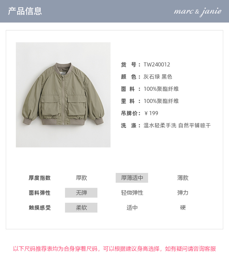 【三防】马克珍妮男童外套儿童城市户外棒球领工装夹克春装240012