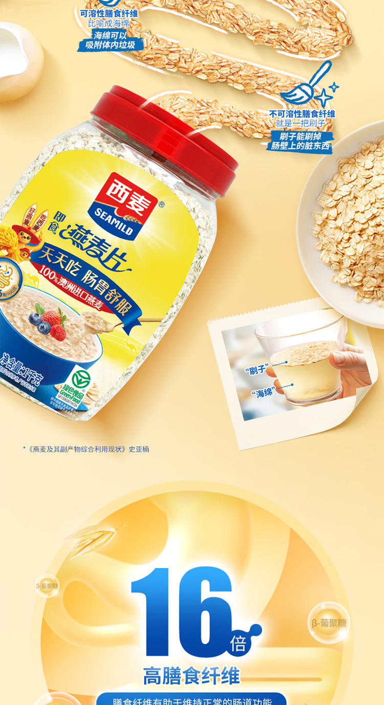 燕麦片即食1kg桶装绿色食品高膳食纤维0蔗糖免煮早餐冲饮健康代餐