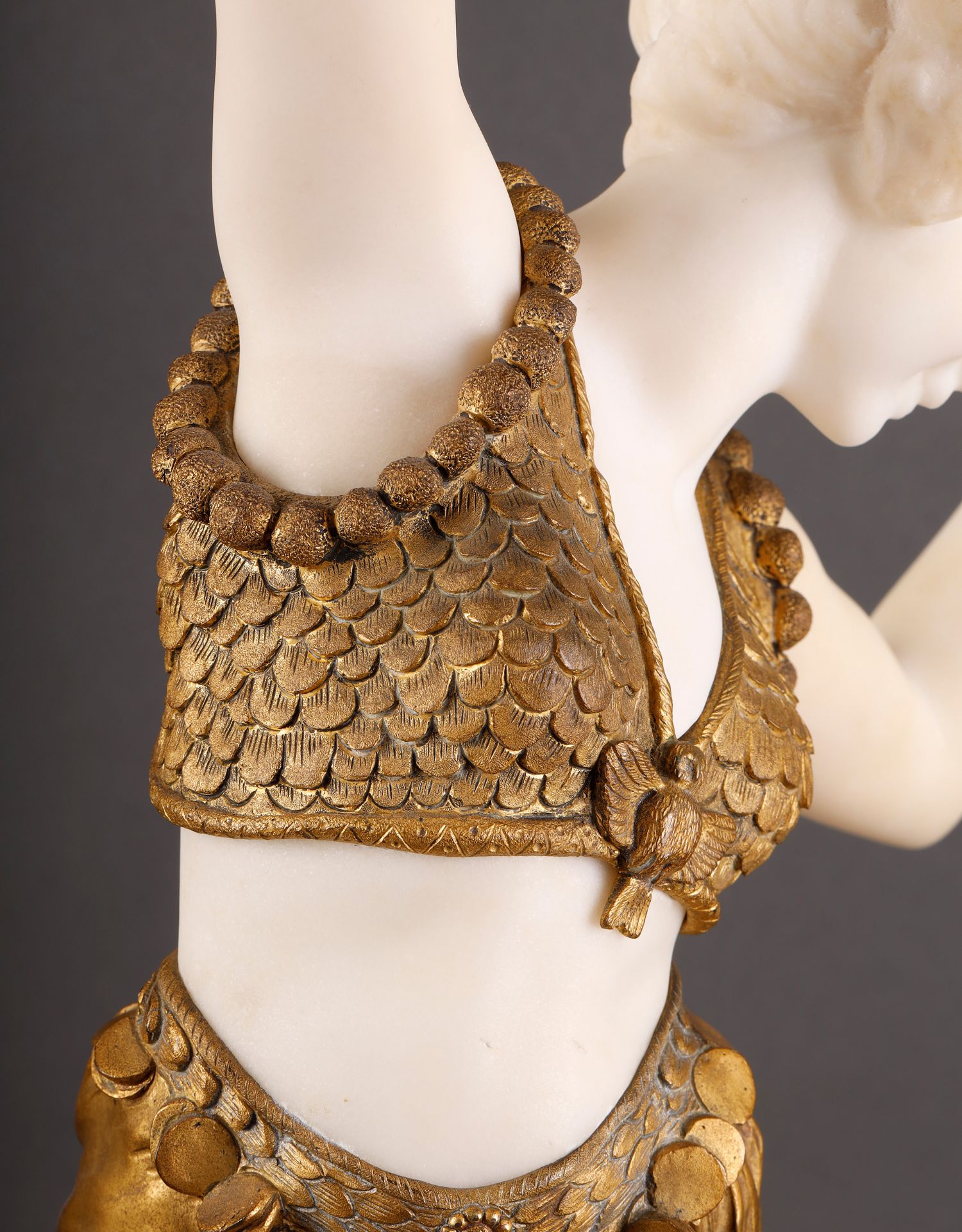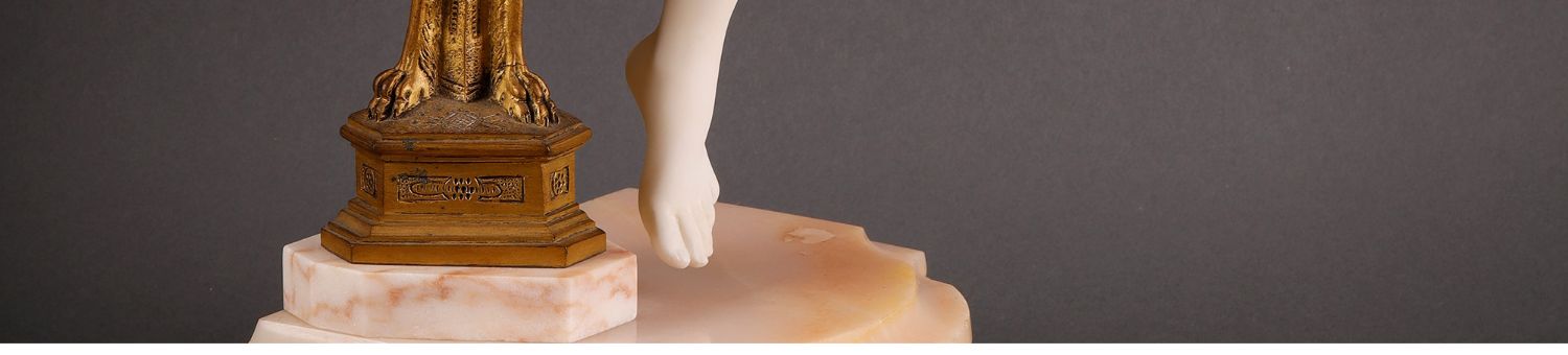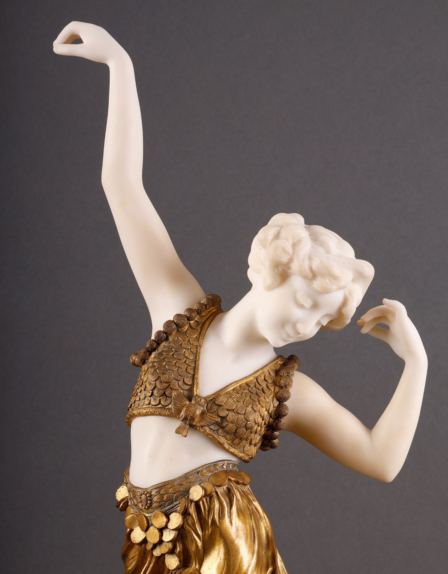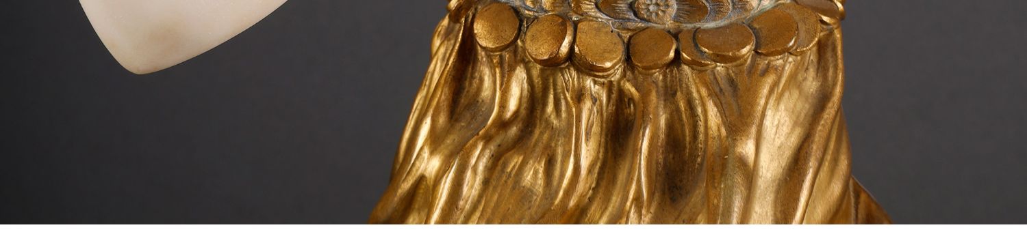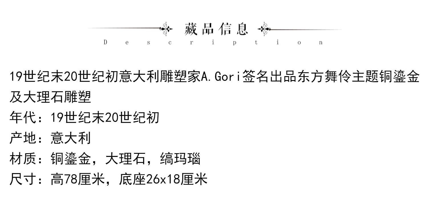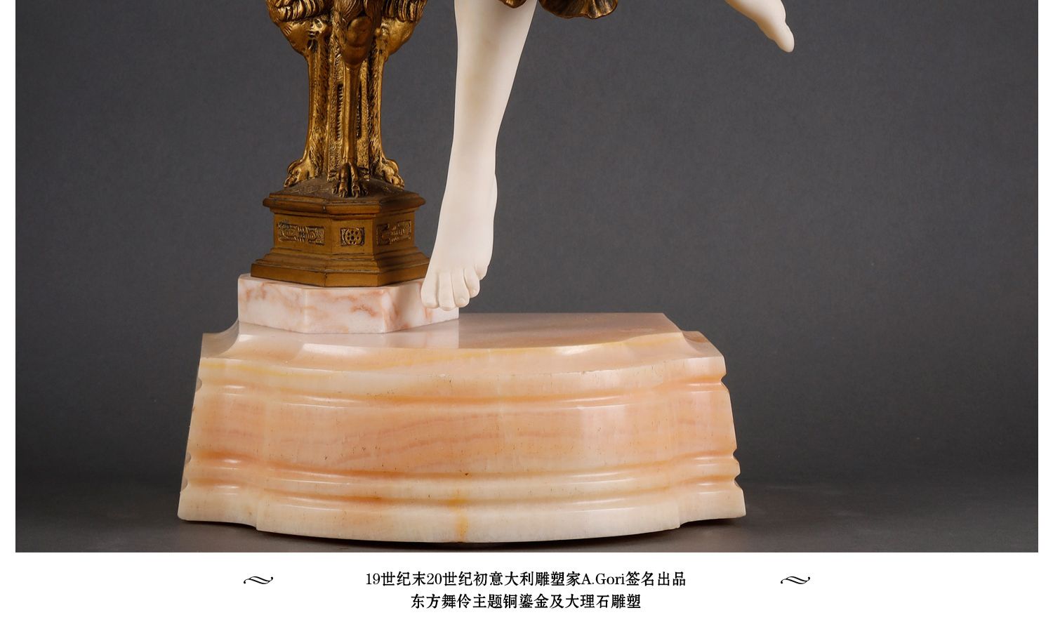 独角鹿西洋古董A.Gori签名出品东方舞伶主题铜鎏金及大理石雕塑