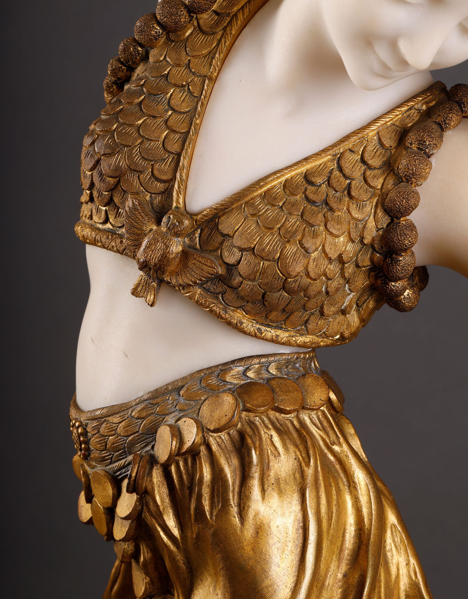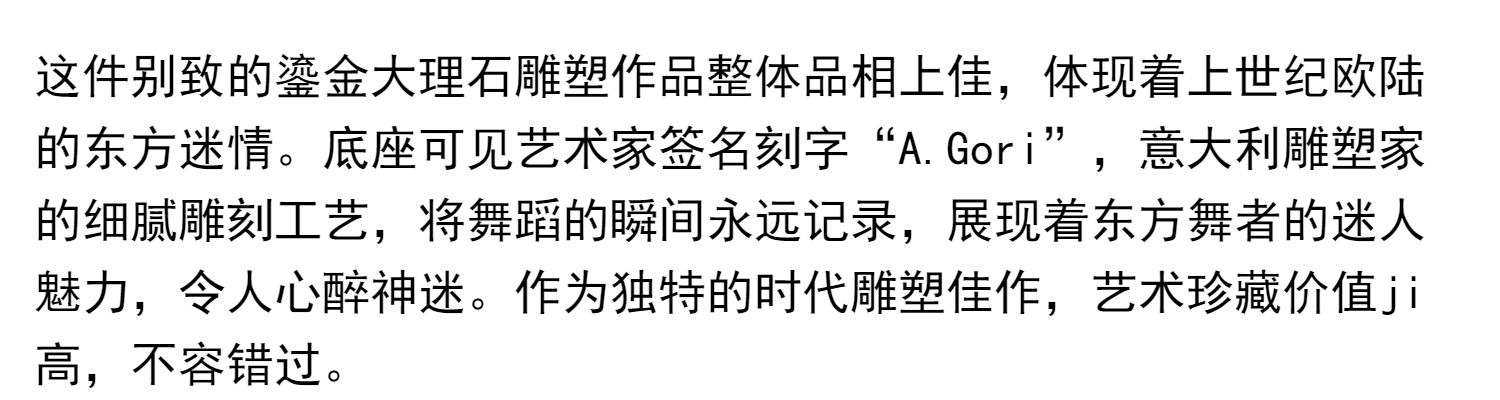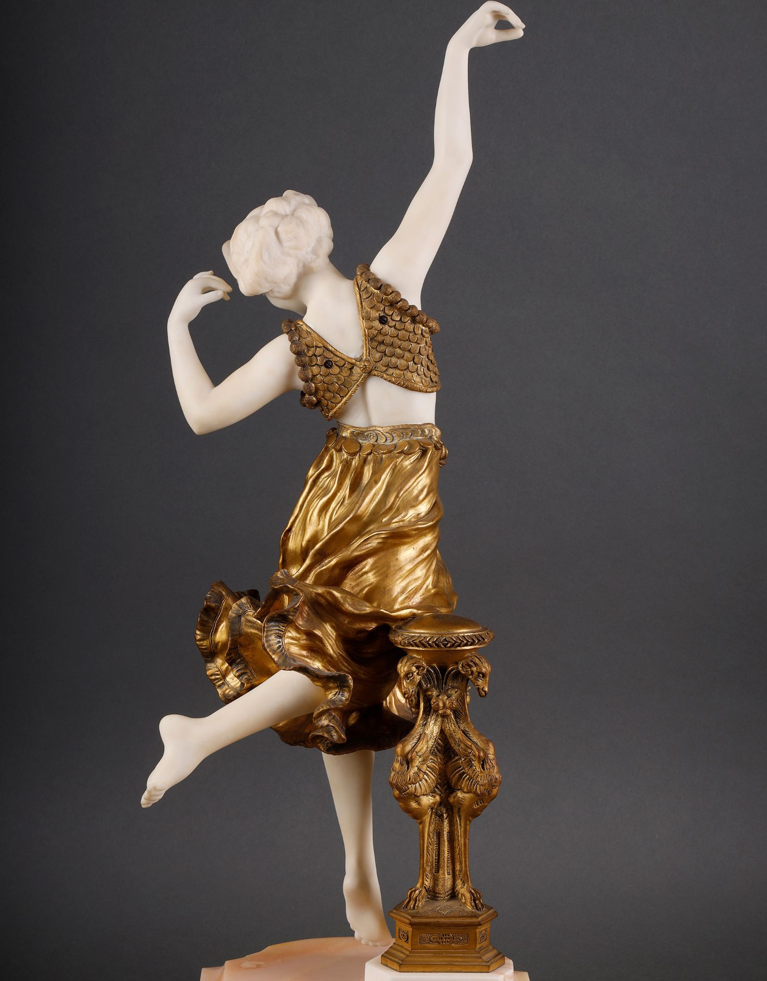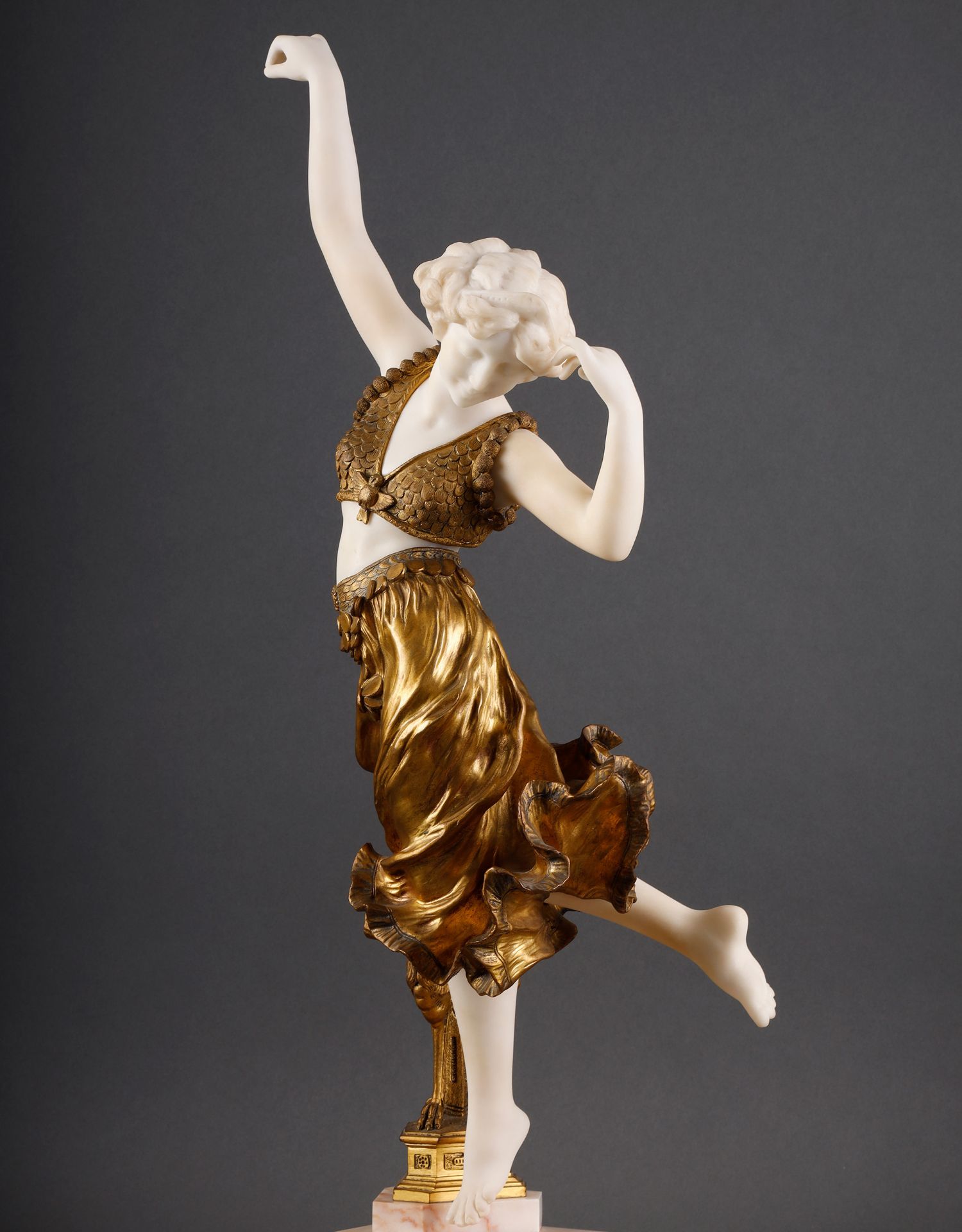 独角鹿西洋古董A.Gori签名出品东方舞伶主题铜鎏金及大理石雕塑