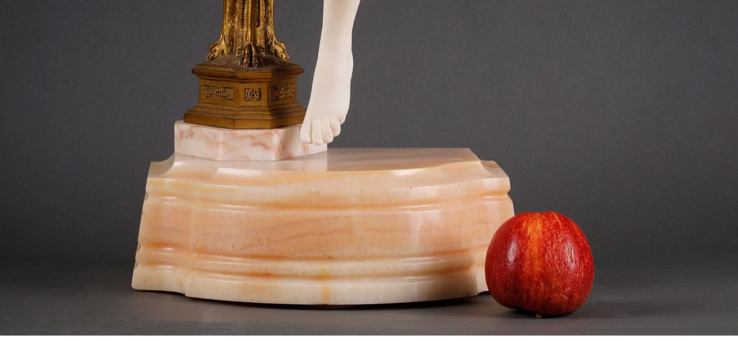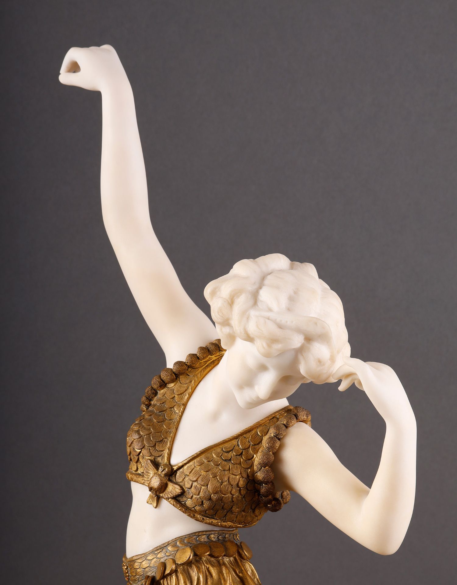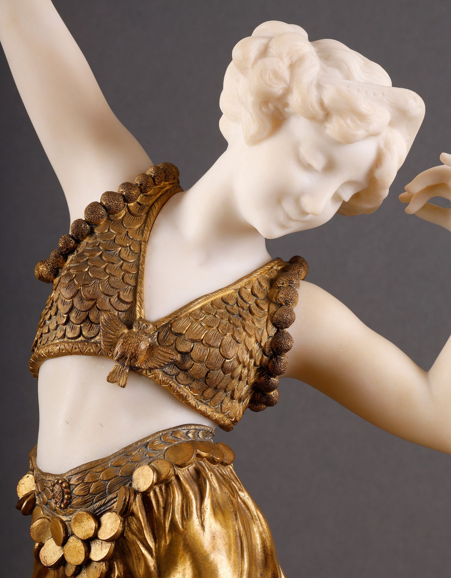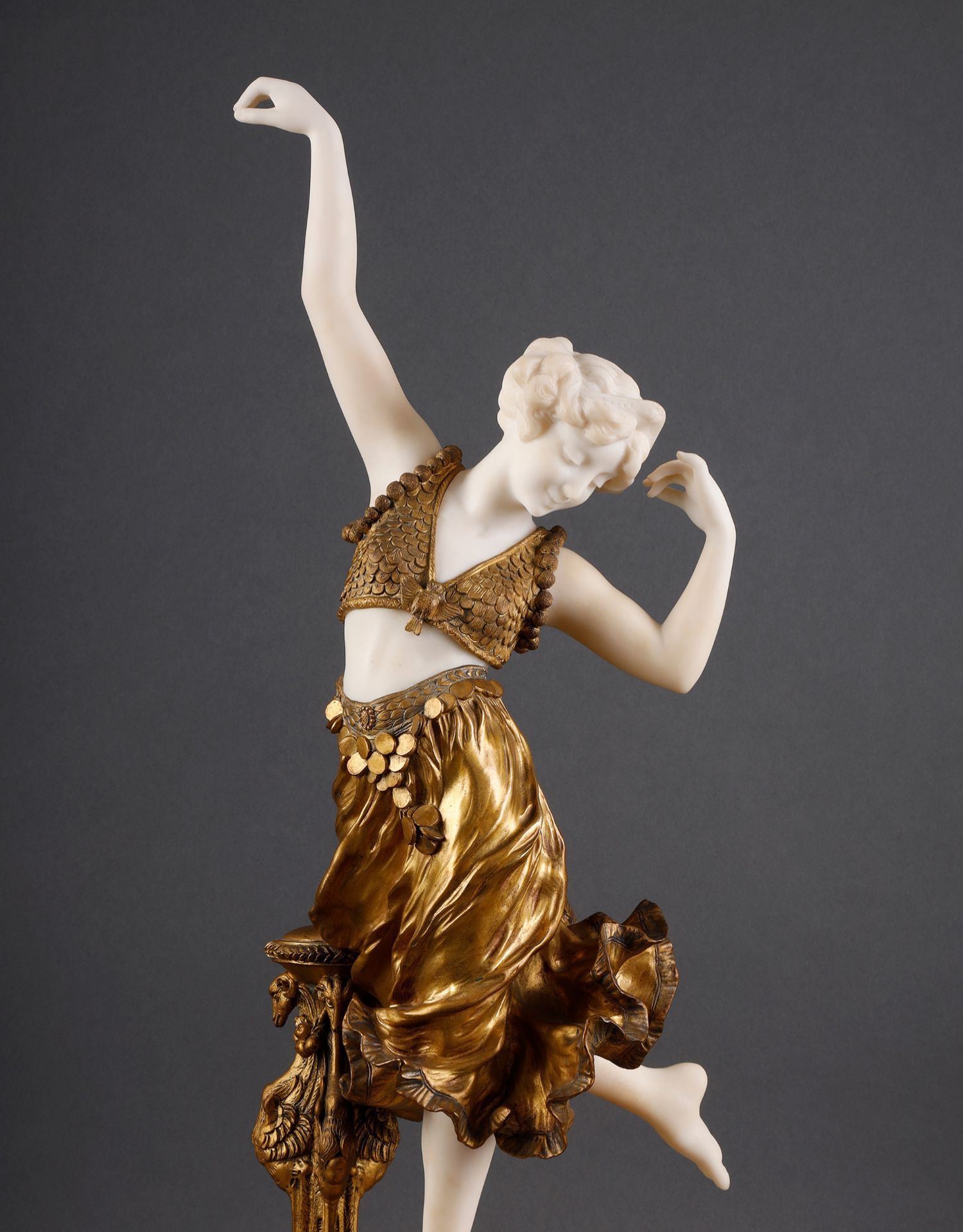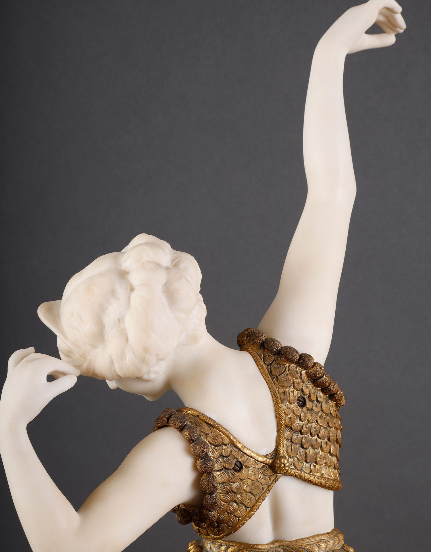 独角鹿西洋古董A.Gori签名出品东方舞伶主题铜鎏金及大理石雕塑