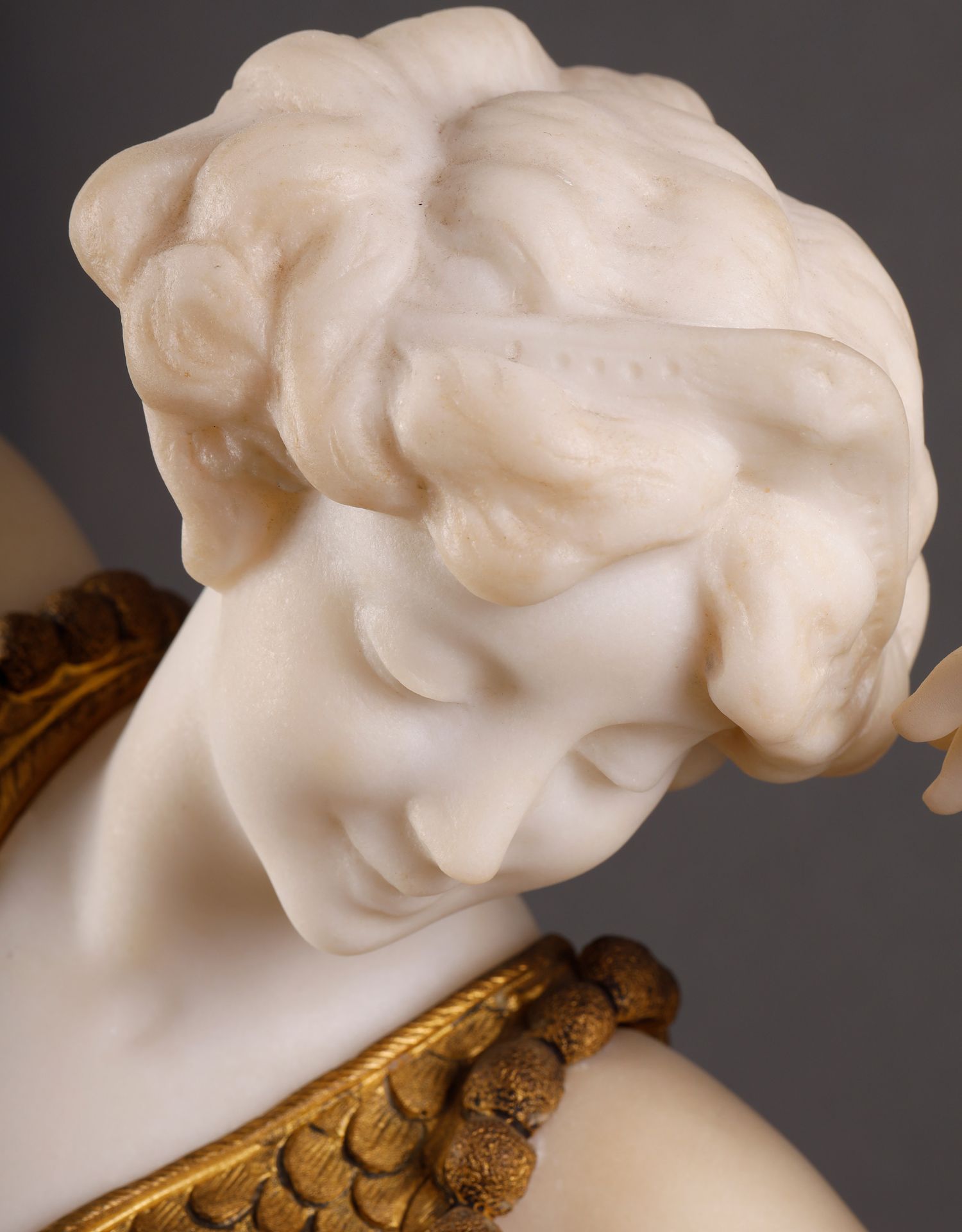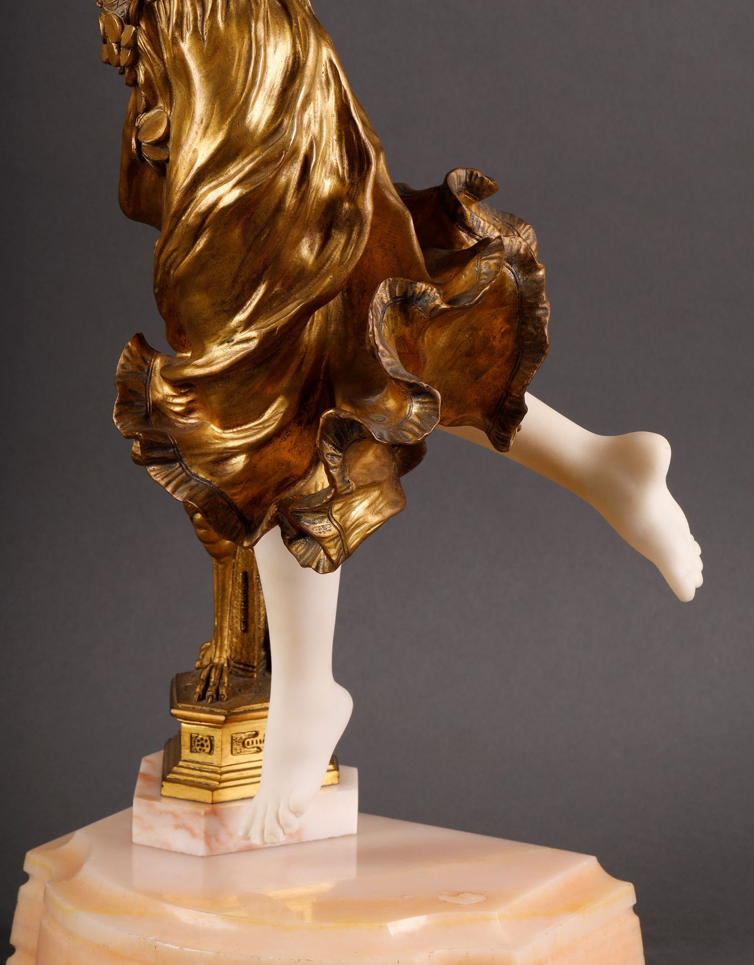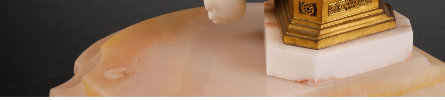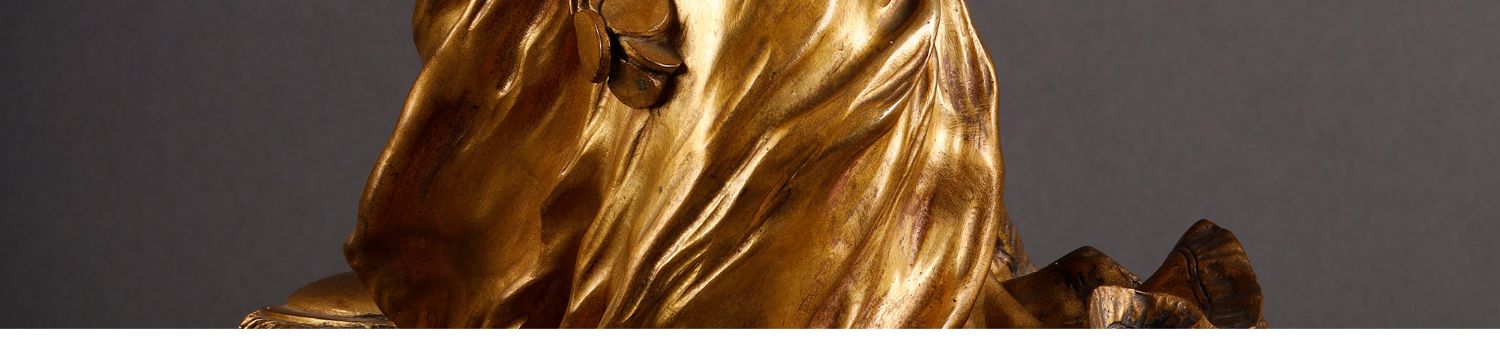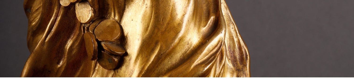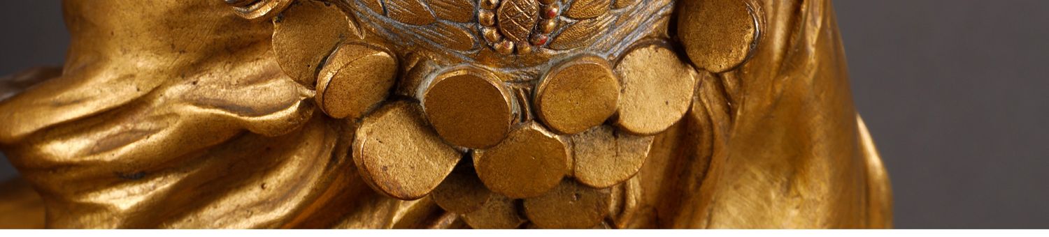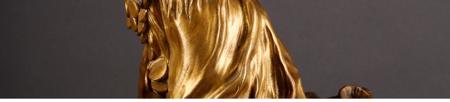 独角鹿西洋古董A.Gori签名出品东方舞伶主题铜鎏金及大理石雕塑