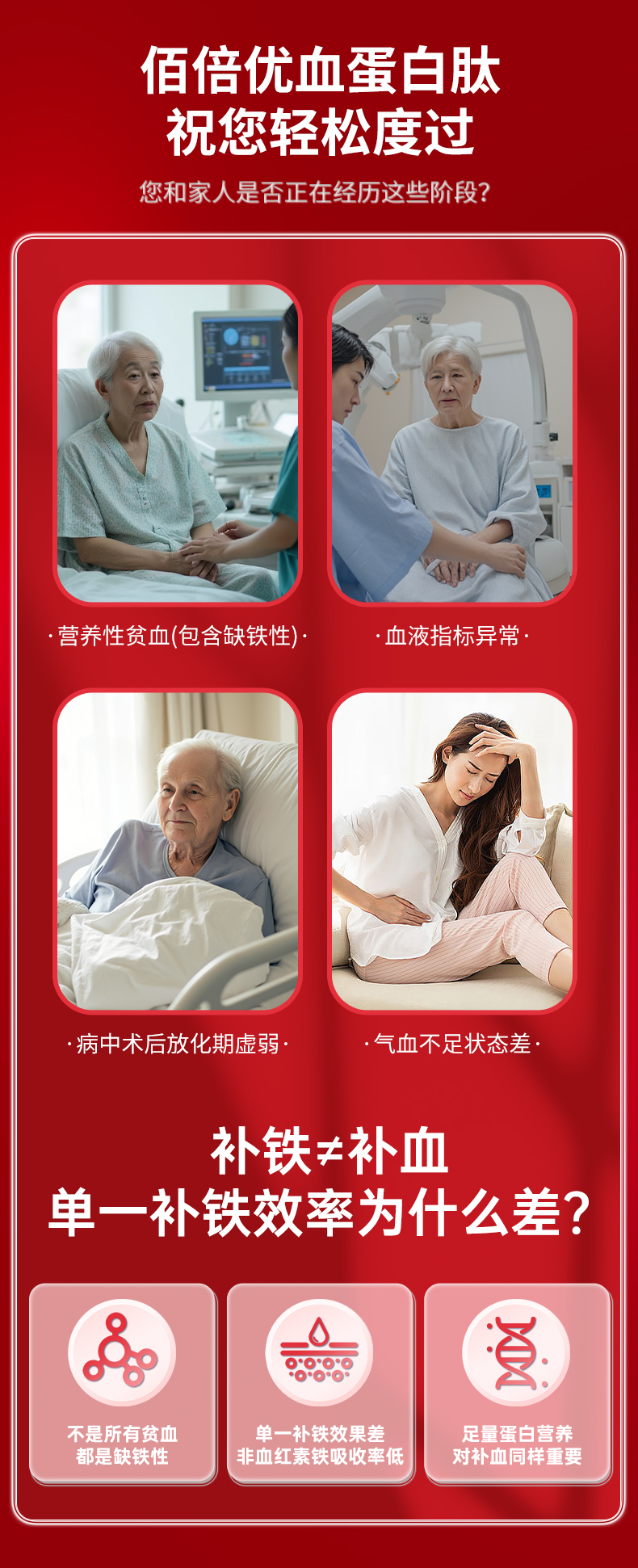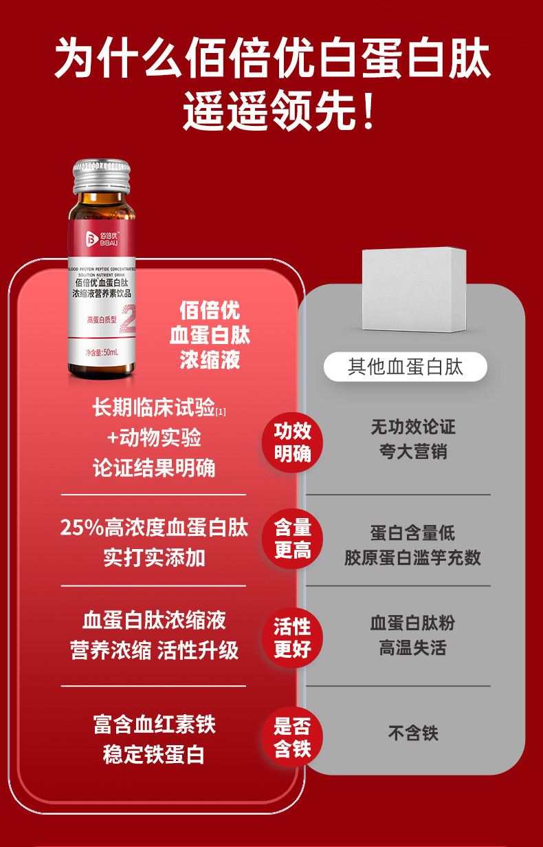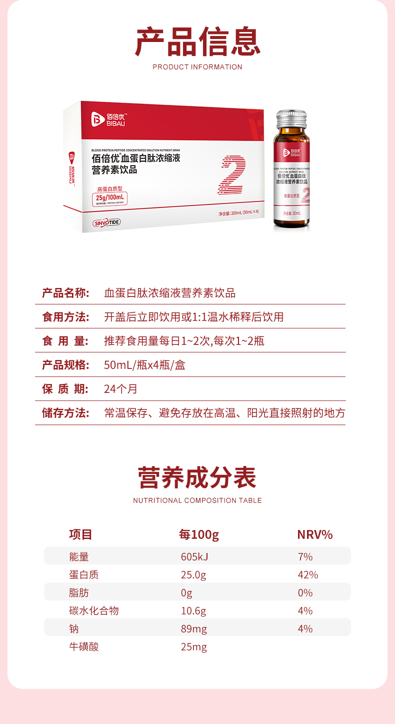 佰倍优血蛋白多肽术后放化恢复营养品口服液小板中老年白蛋白血铁