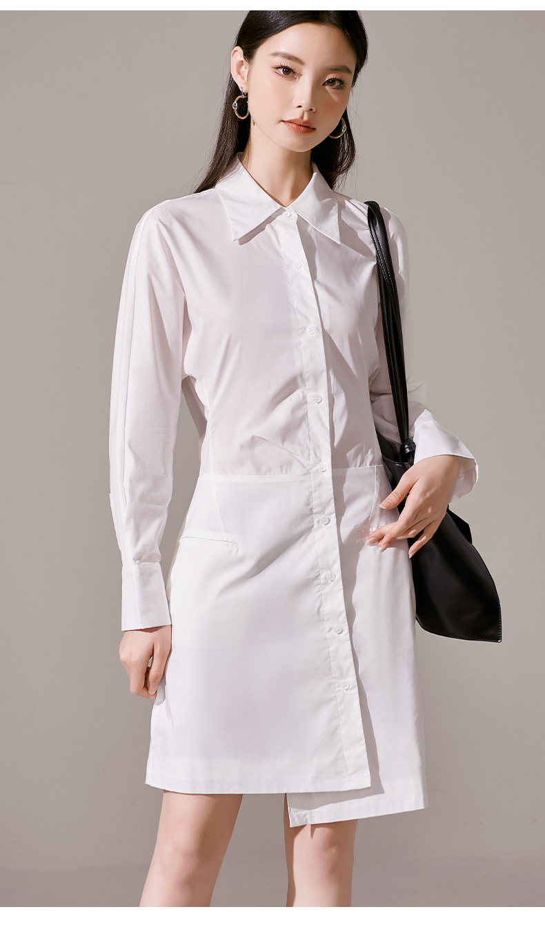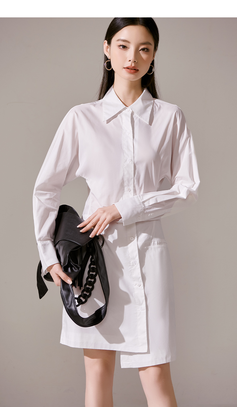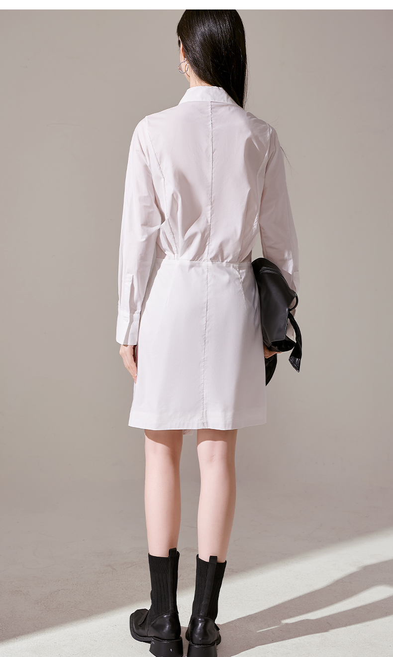 剩M 芳外新款气质休闲不规则连衣裙白色Polo领长袖裙子女8T23AL0067