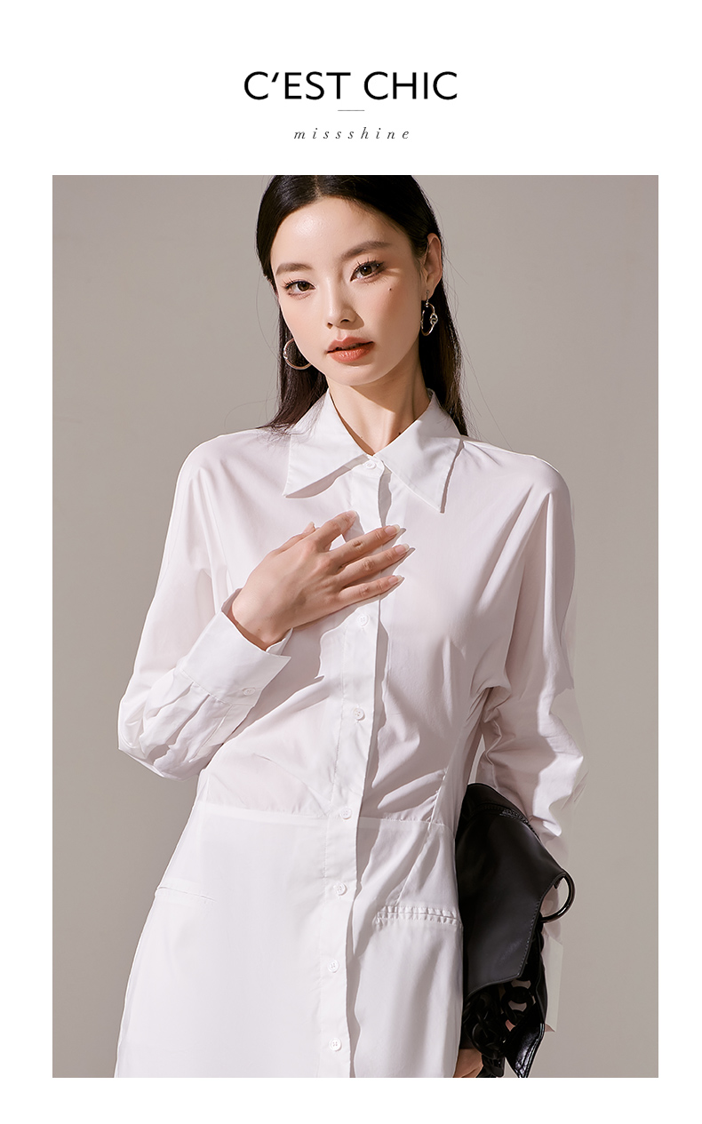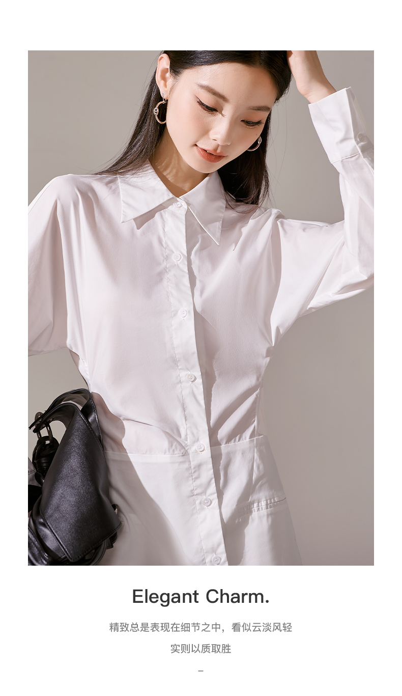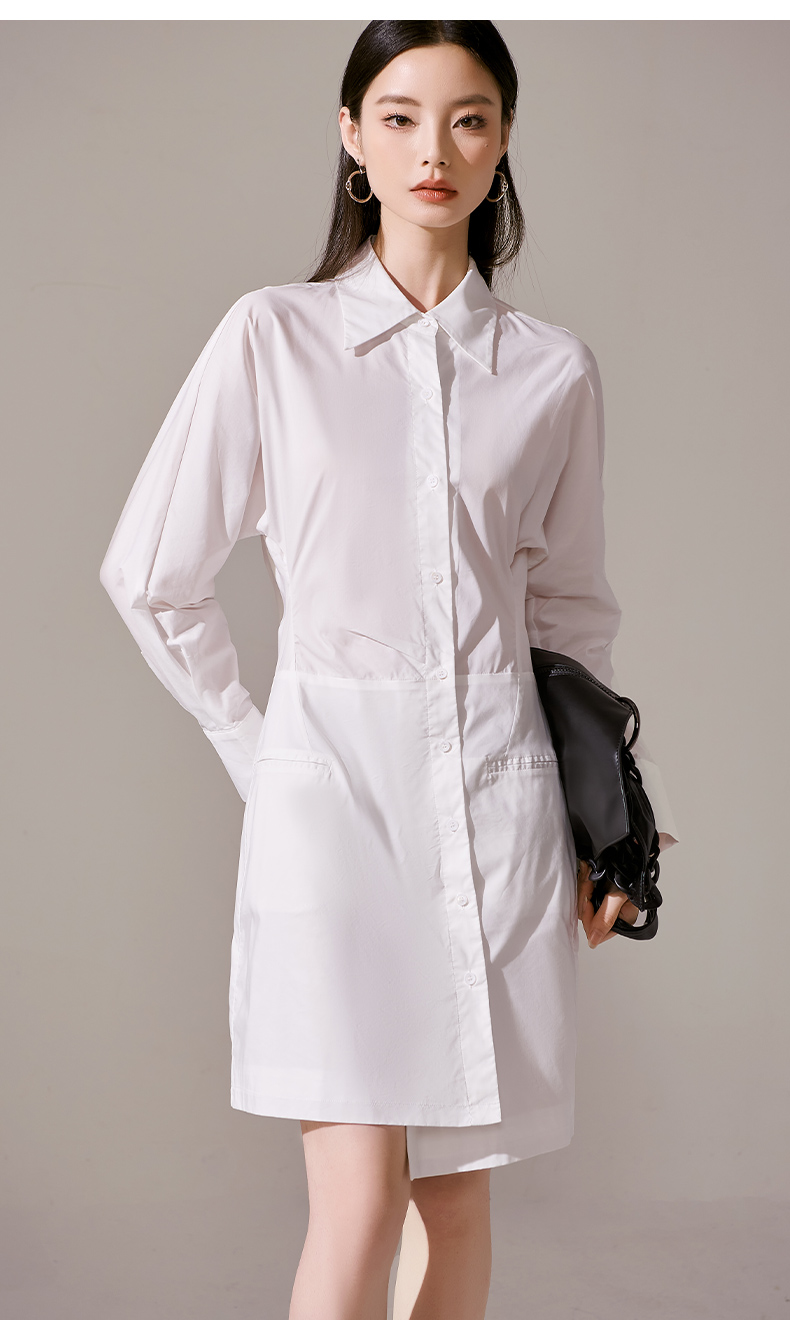 剩M 芳外新款气质休闲不规则连衣裙白色Polo领长袖裙子女8T23AL0067