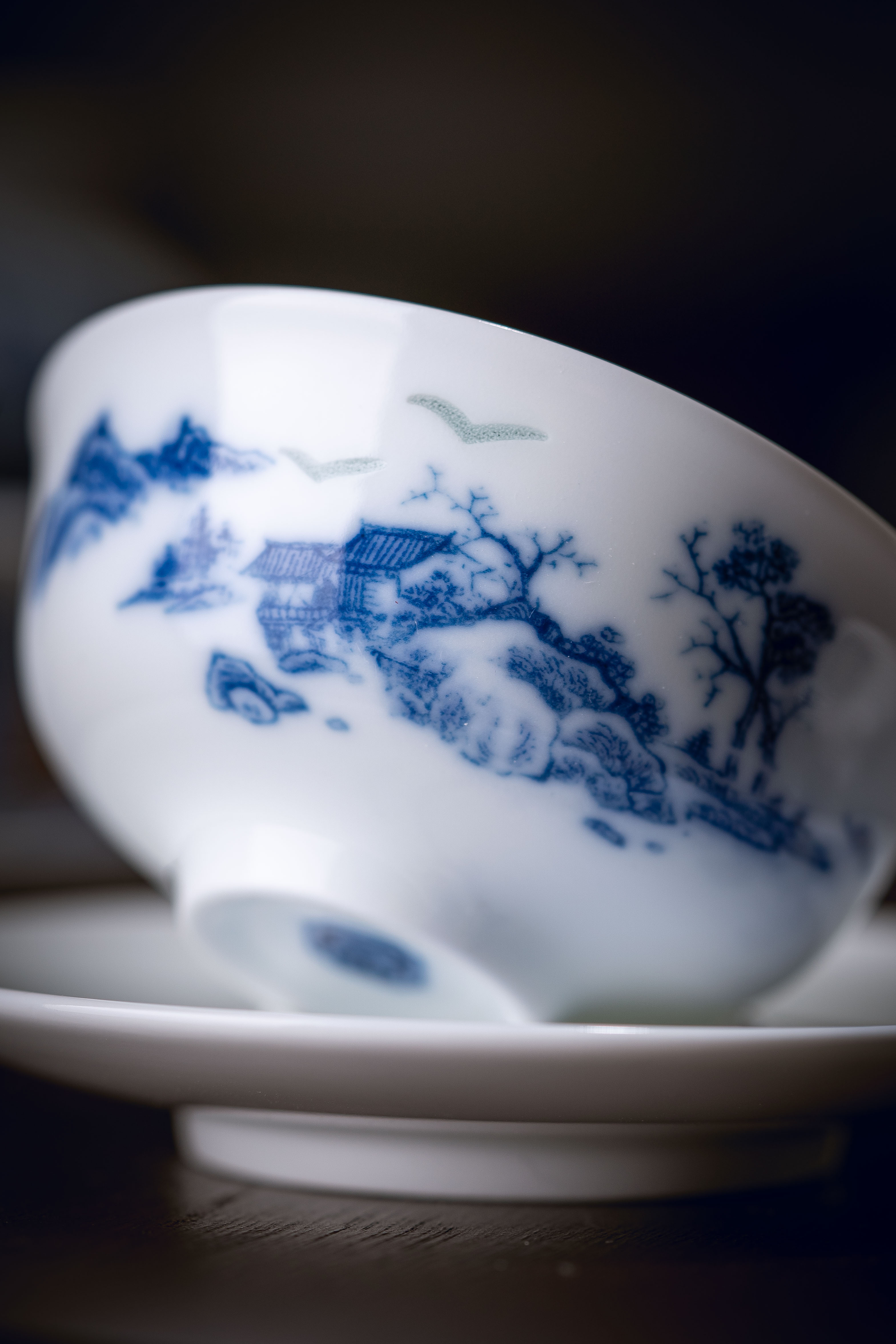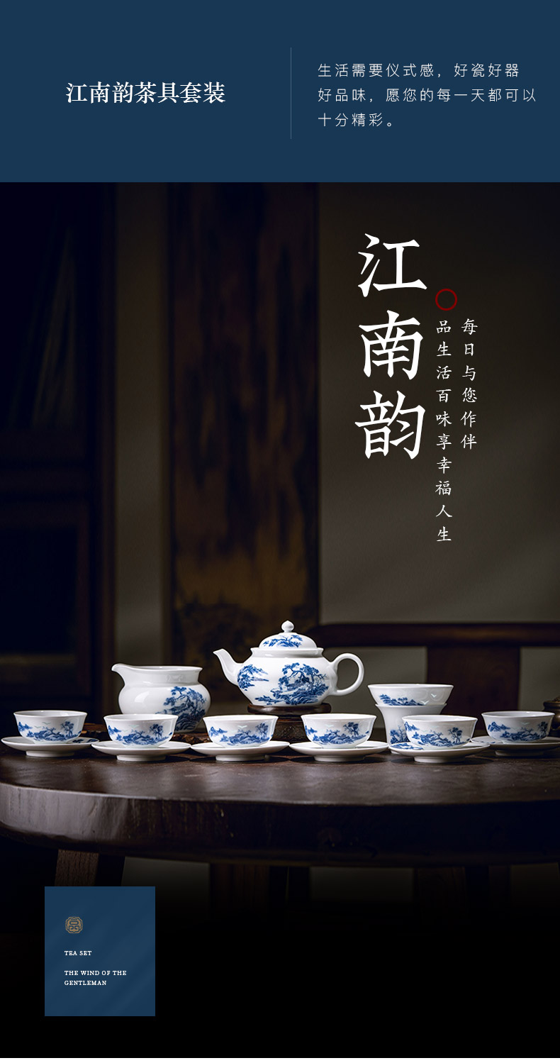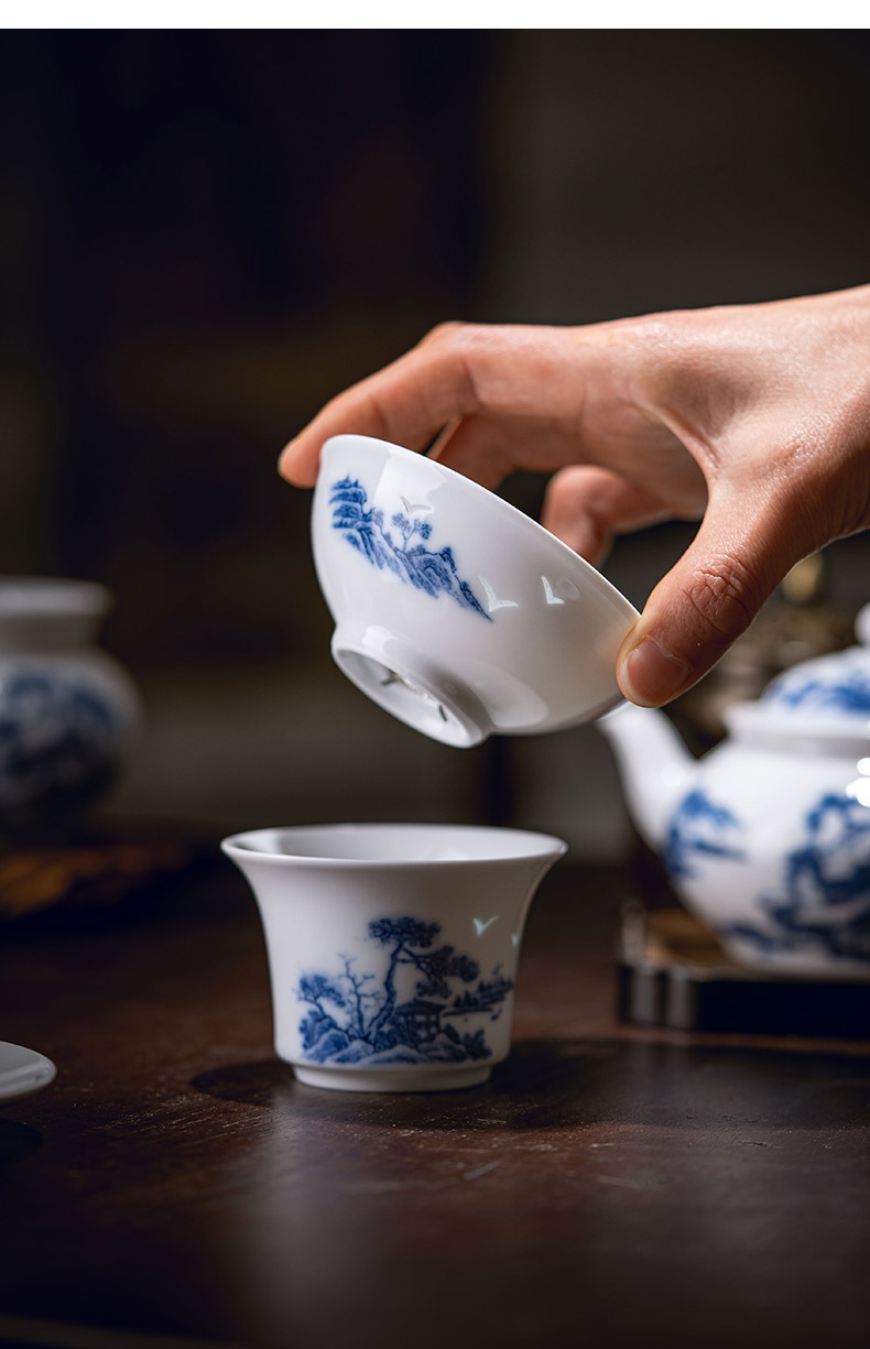 富玉 景德镇玲珑瓷功夫茶具套组釉下彩江南韵茶具