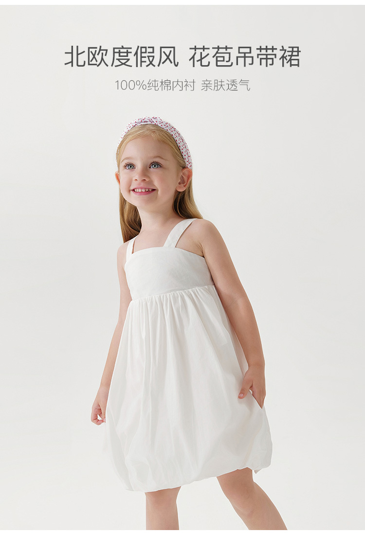 马克珍妮夏装新款宝宝裙子女童纯棉吊带裙花苞连衣裙231097