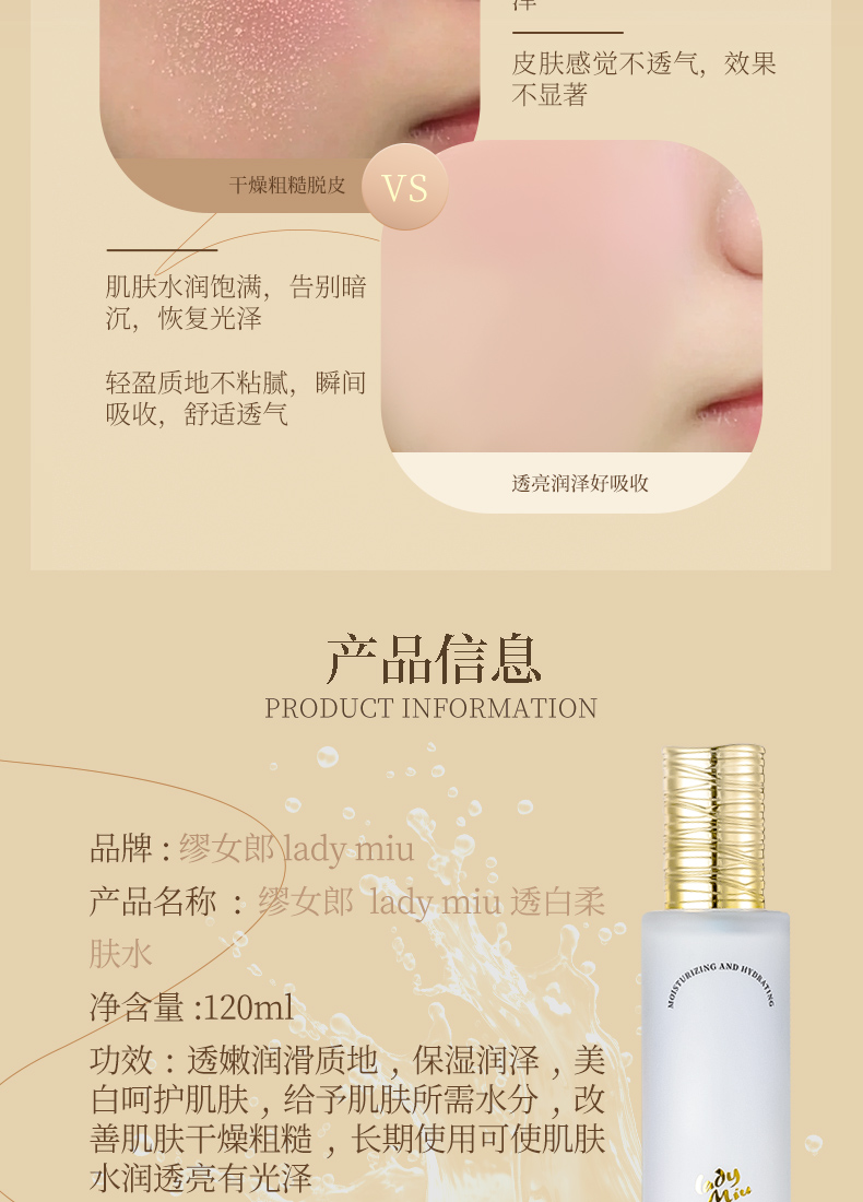 (新品限时优惠)广州药妆正品缪女郎lady miu适白柔肤水透亮润泽锁水保湿