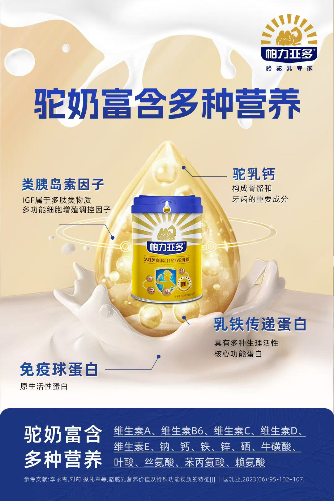 🎉🎉🎉🎉帕力亚多骆驼奶,采自优良骆驼品种双峰驼,每日产奶量只有3kg左右,蛋白质含量更高✌️