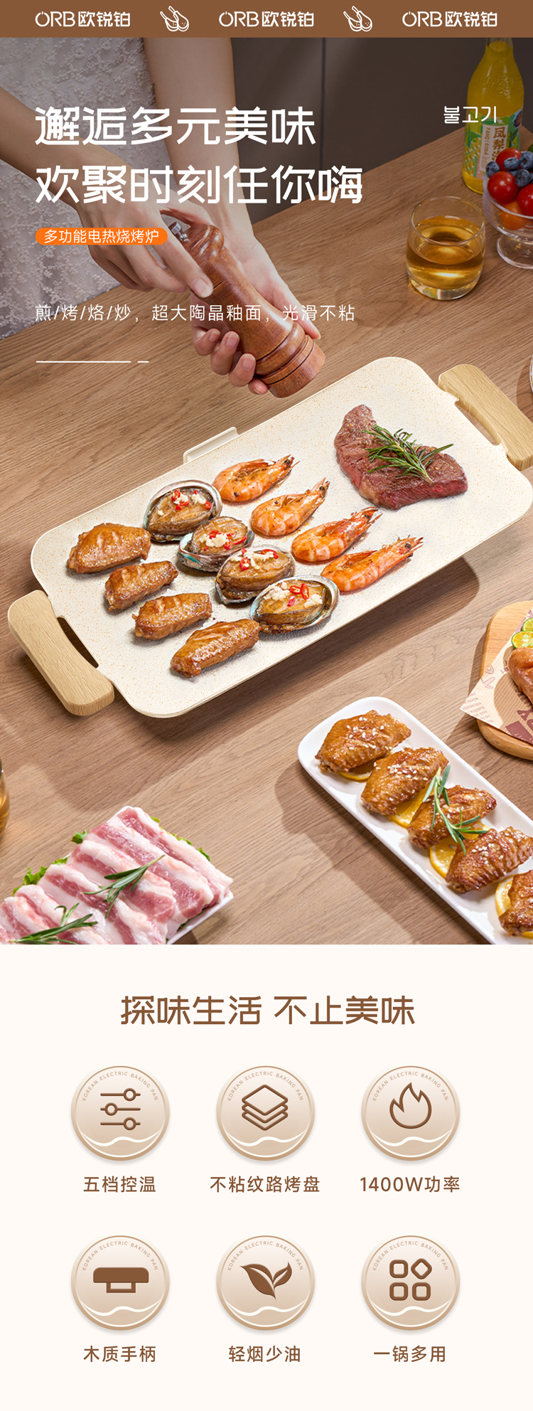 欧锐铂欢聚时光多功能电热烧烤炉ORB-441