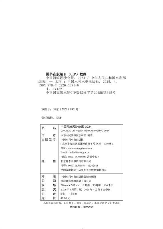 "《中国河流泥沙公报2024》的编报范围包括长江、黄河、淮河、海河、珠江、松花江、辽河、钱塘江、闽江、塔里木河、黑河和疏勒河等12条河流及青海湖区。内容包括河流主要水文控制站的年径流量、年输沙量及其年内分布和洪水泥沙特征,重点河段冲淤变化,重要水库及湖泊冲淤变化和重要泥沙事件。