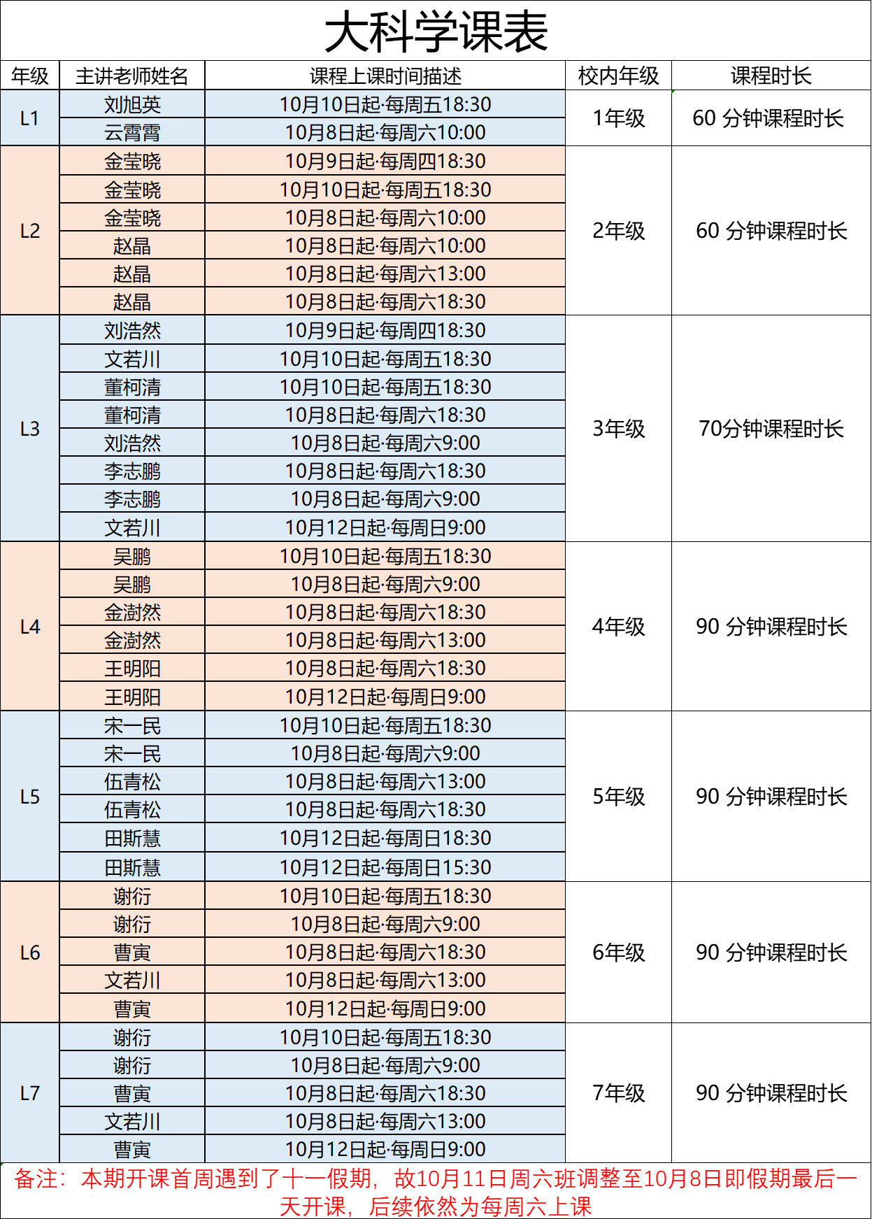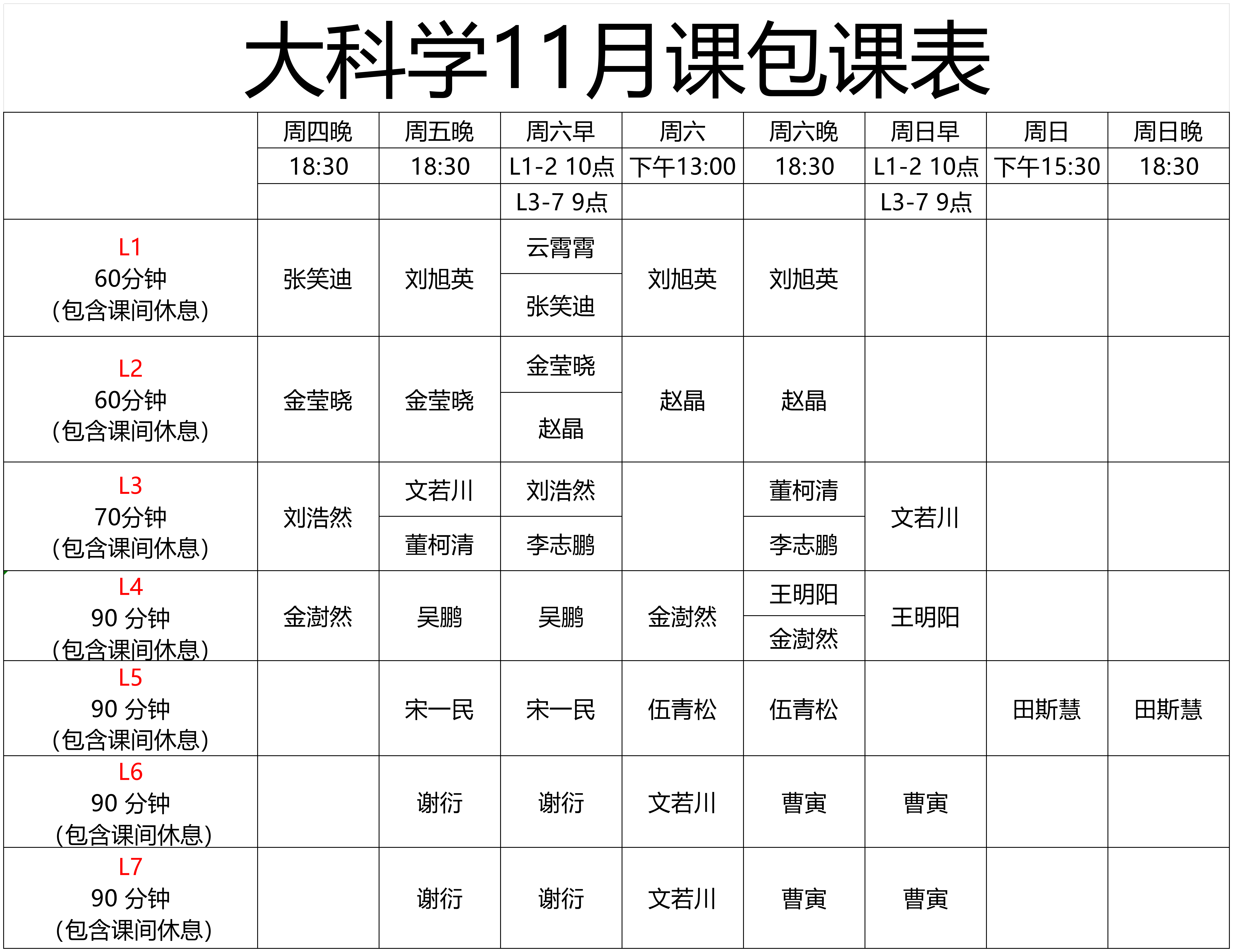 课程数量:· 6个月(半年包)共24次课程每个主题4节课,6大科学主题涵盖了48+核心科学知识,48+次思维表达,24+次动手实践▶️L1-L7